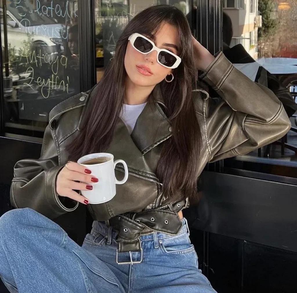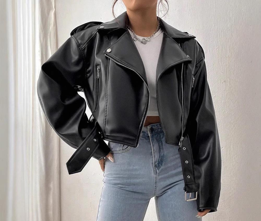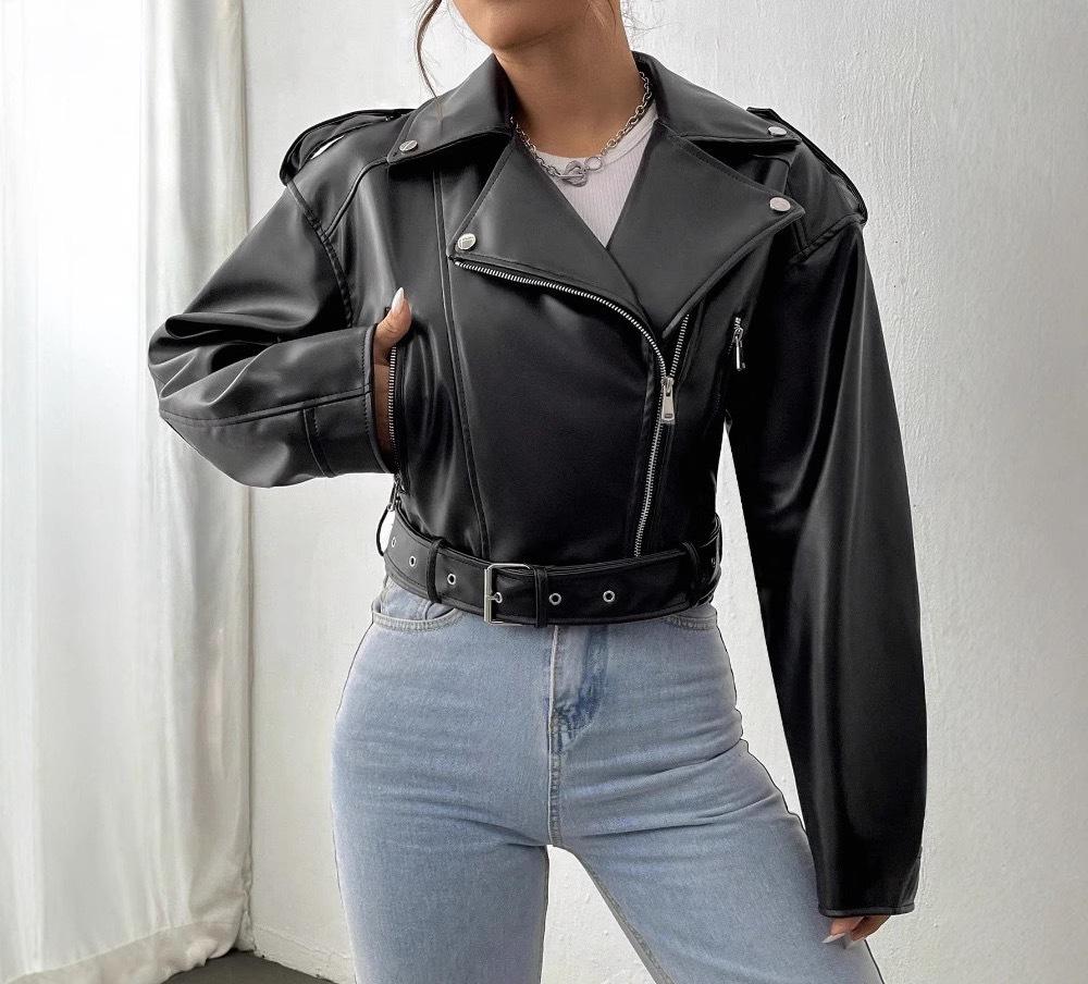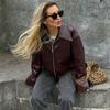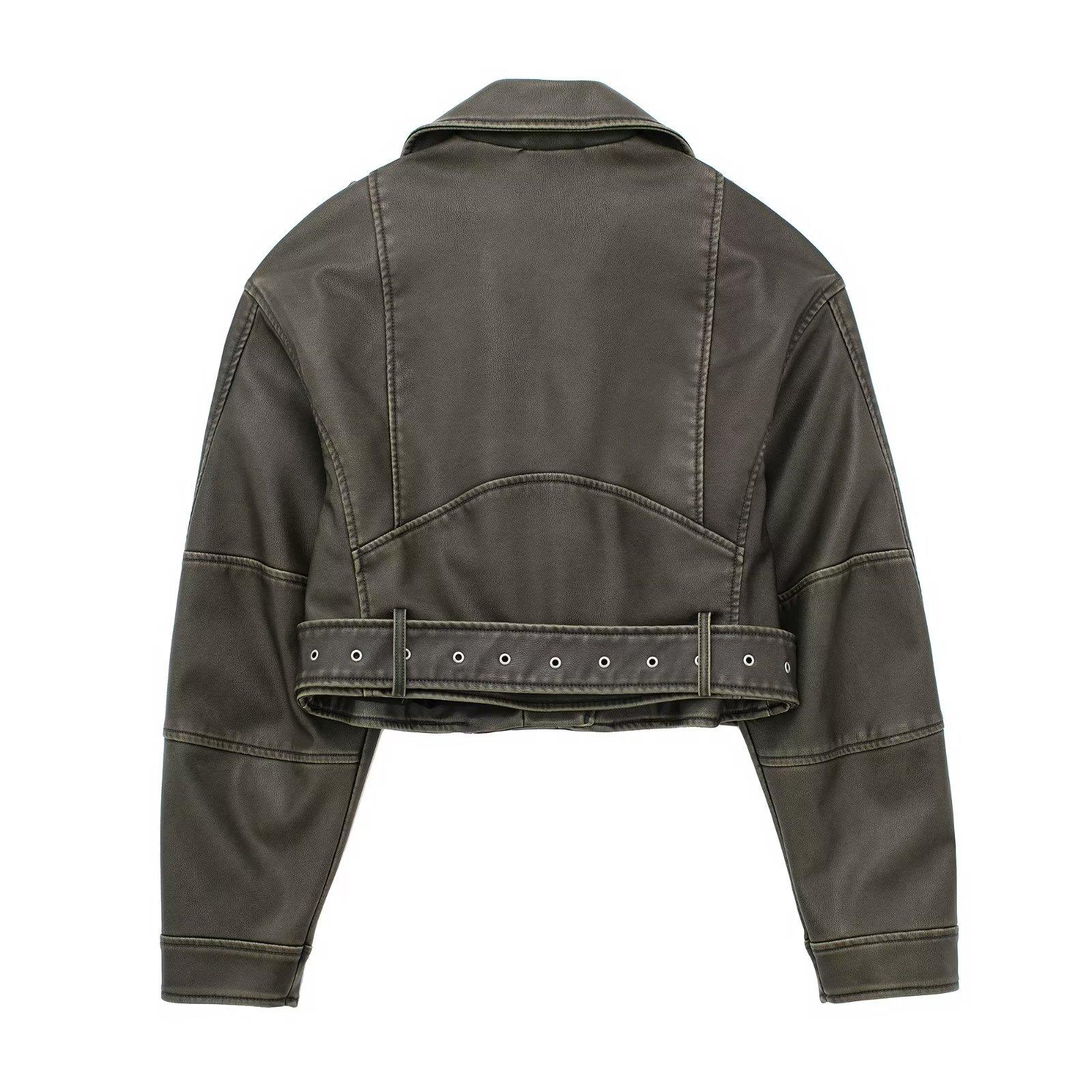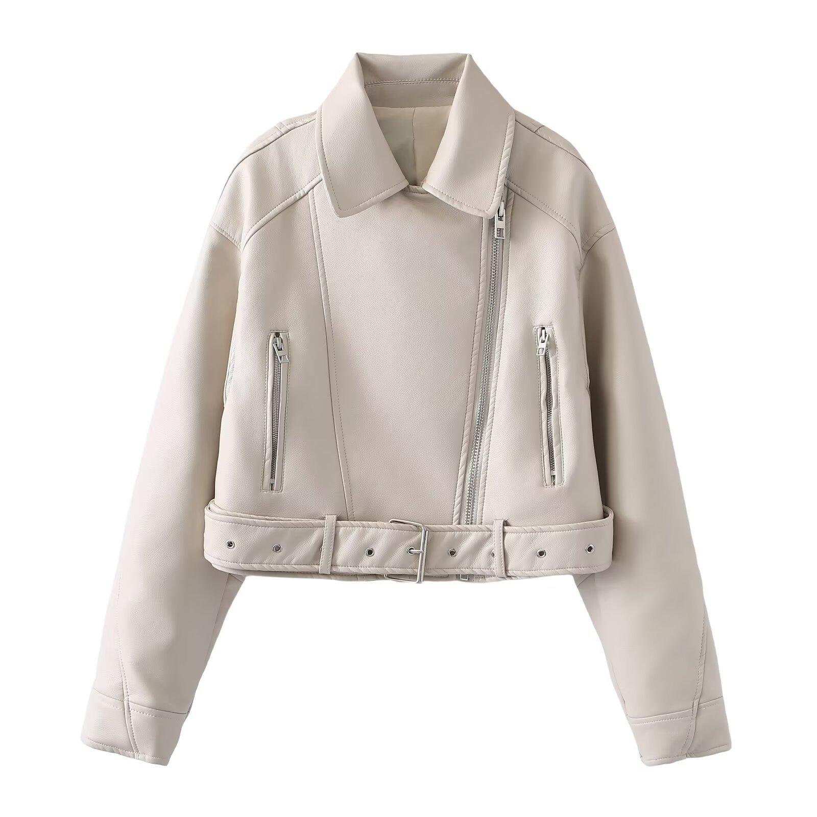 Aliexpress Exportación Transfronteriza Ropa Europea y Americana Za Otoño e Invierno Nuevo Cremallera Oblicua Cinturón Solapa Cuero Chaqueta de Pu