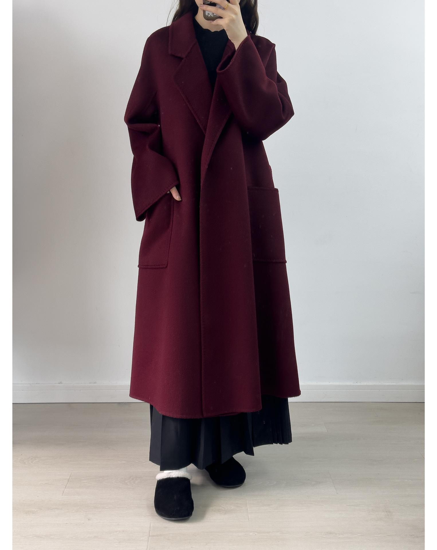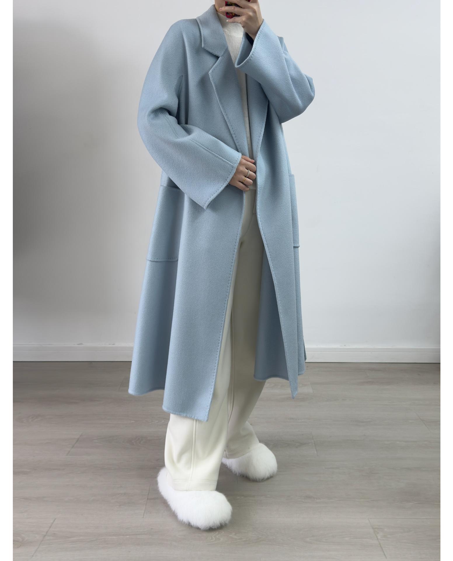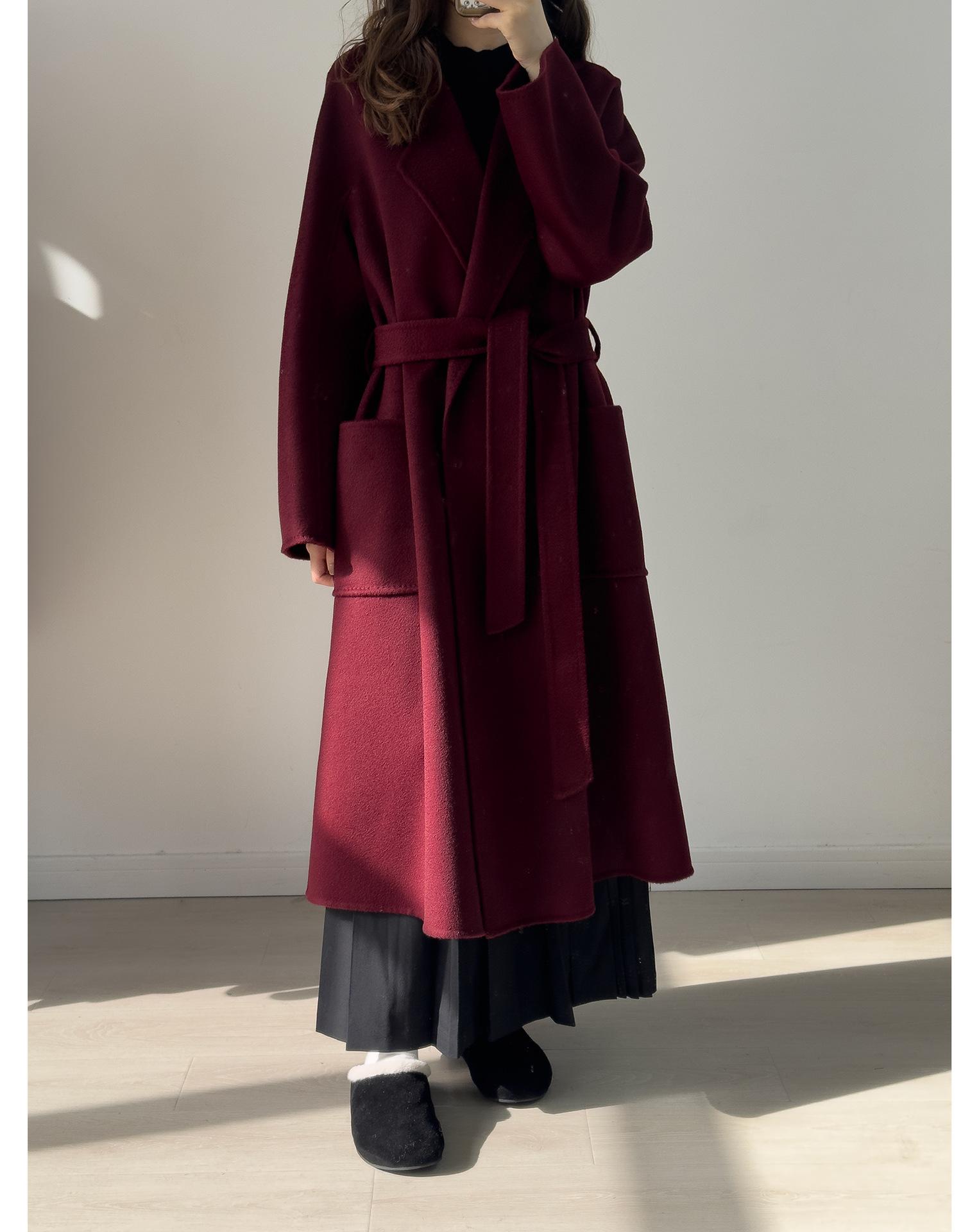 Hermoso ~ Bata de Casa Brillante de Lana Merino de Alto Conteo con Textura de Ondas de Agua m Ropa Exterior de Lana de Doble Cara para Mujer