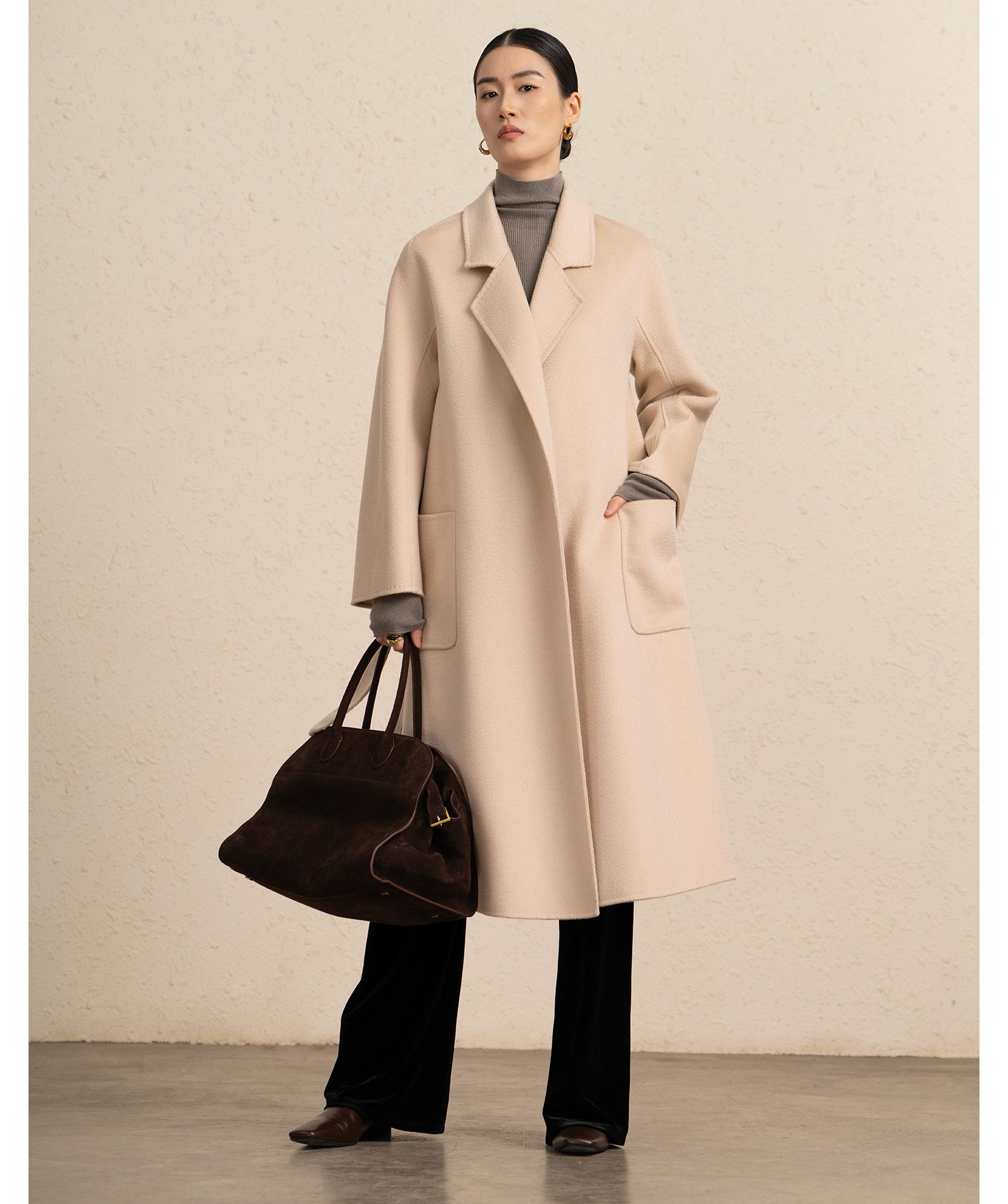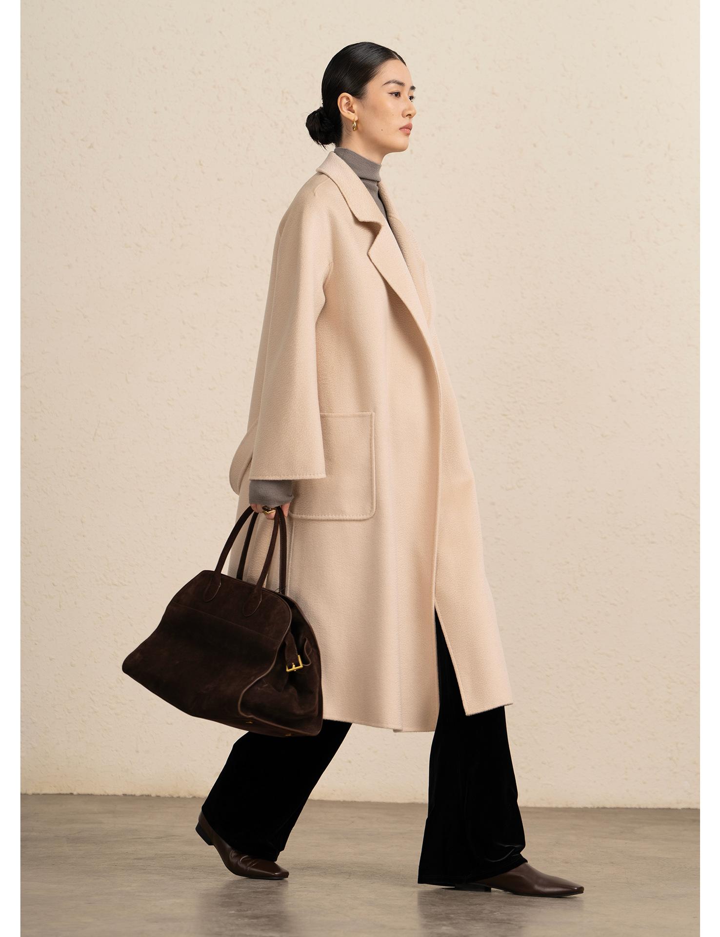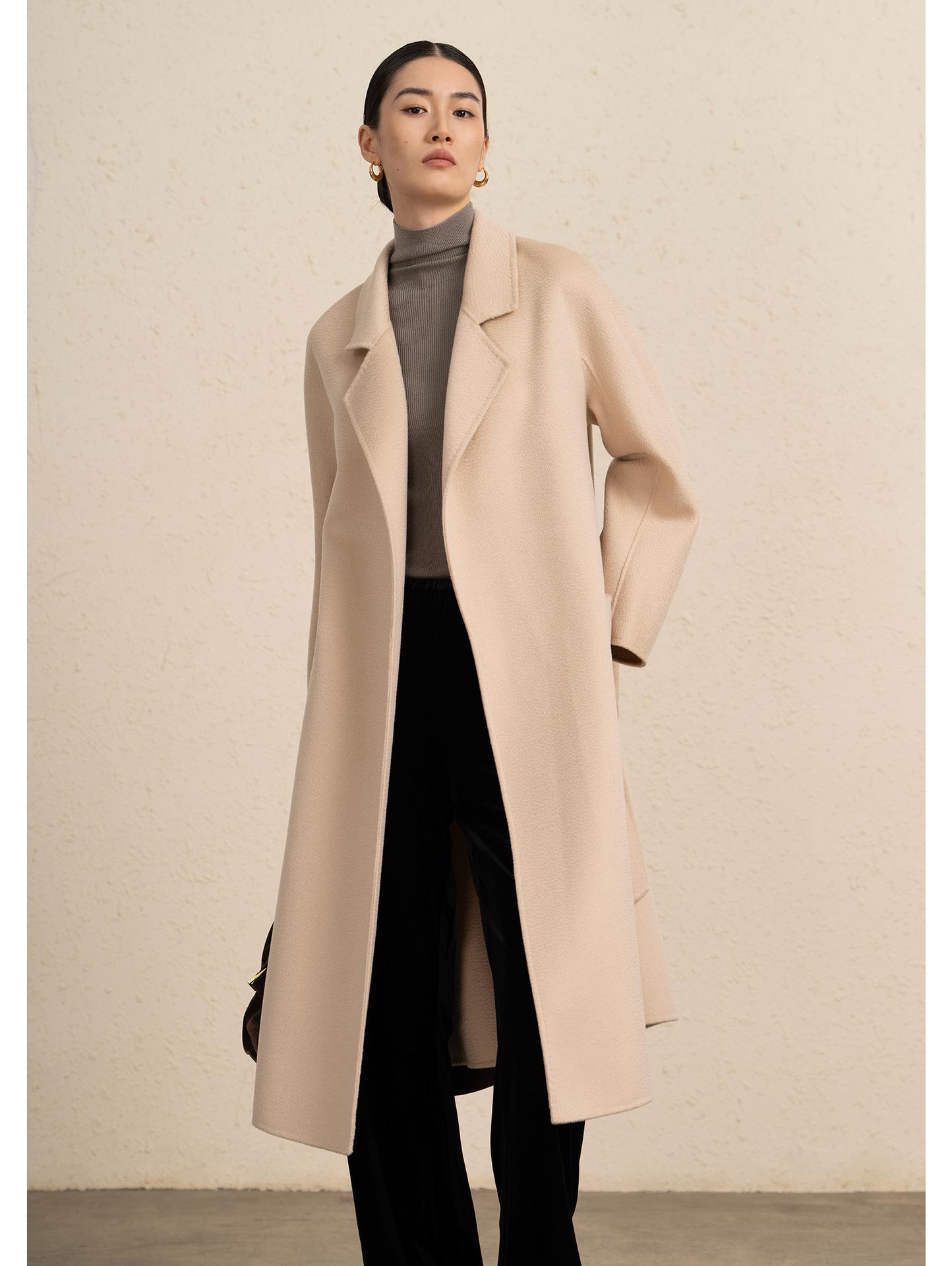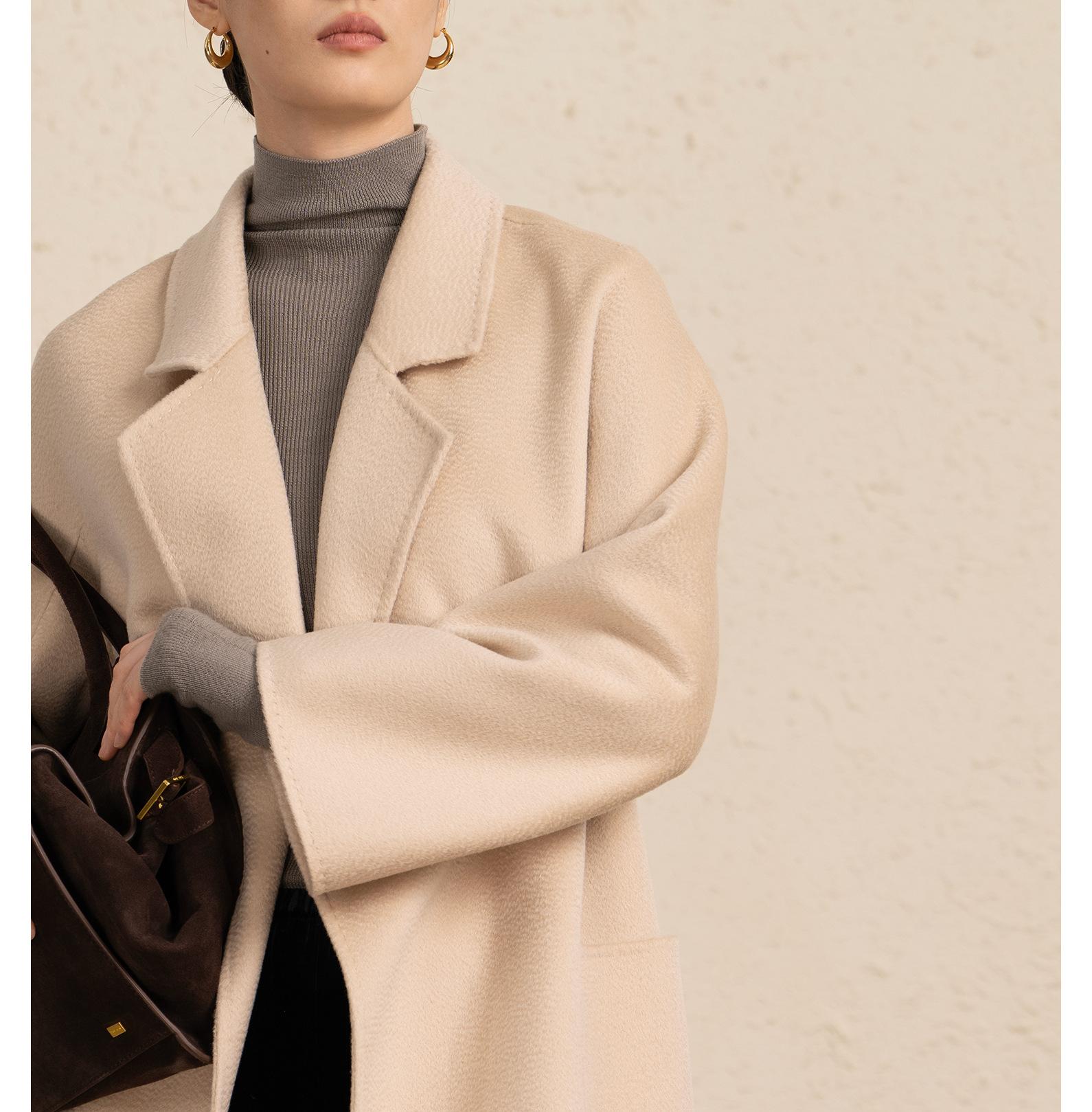 Hermoso ~ Bata de Casa Brillante de Lana Merino de Alto Conteo con Textura de Ondas de Agua m Ropa Exterior de Lana de Doble Cara para Mujer