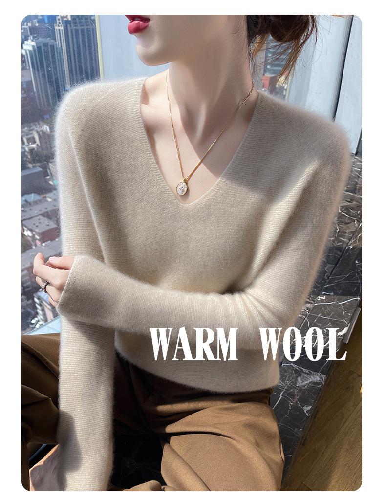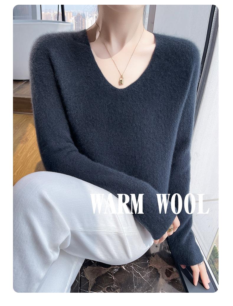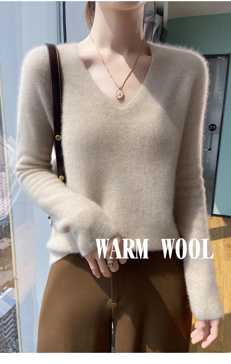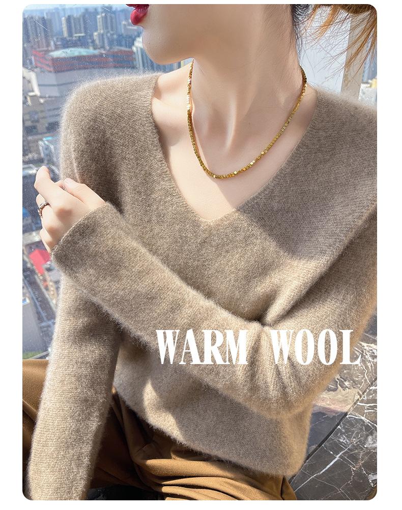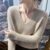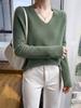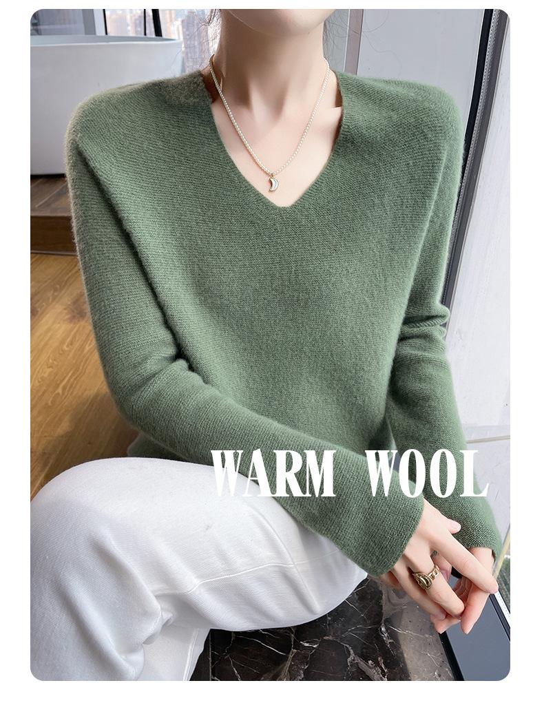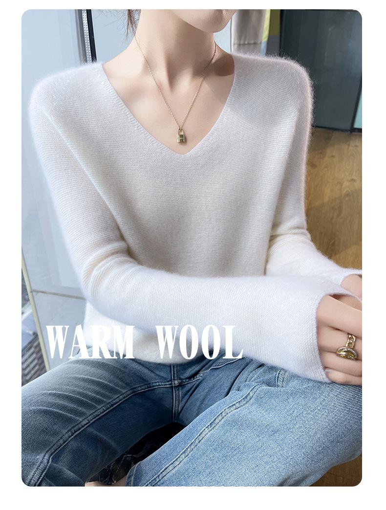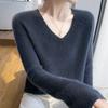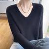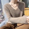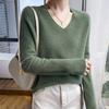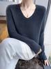 Otoño e Invierno Nuevo Camiseta Base 100% Lana para Mujer, Cuello en V Manga Larga Ajustado Suéter Grueso Versátil al por Mayor