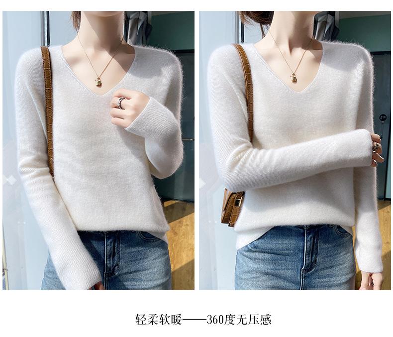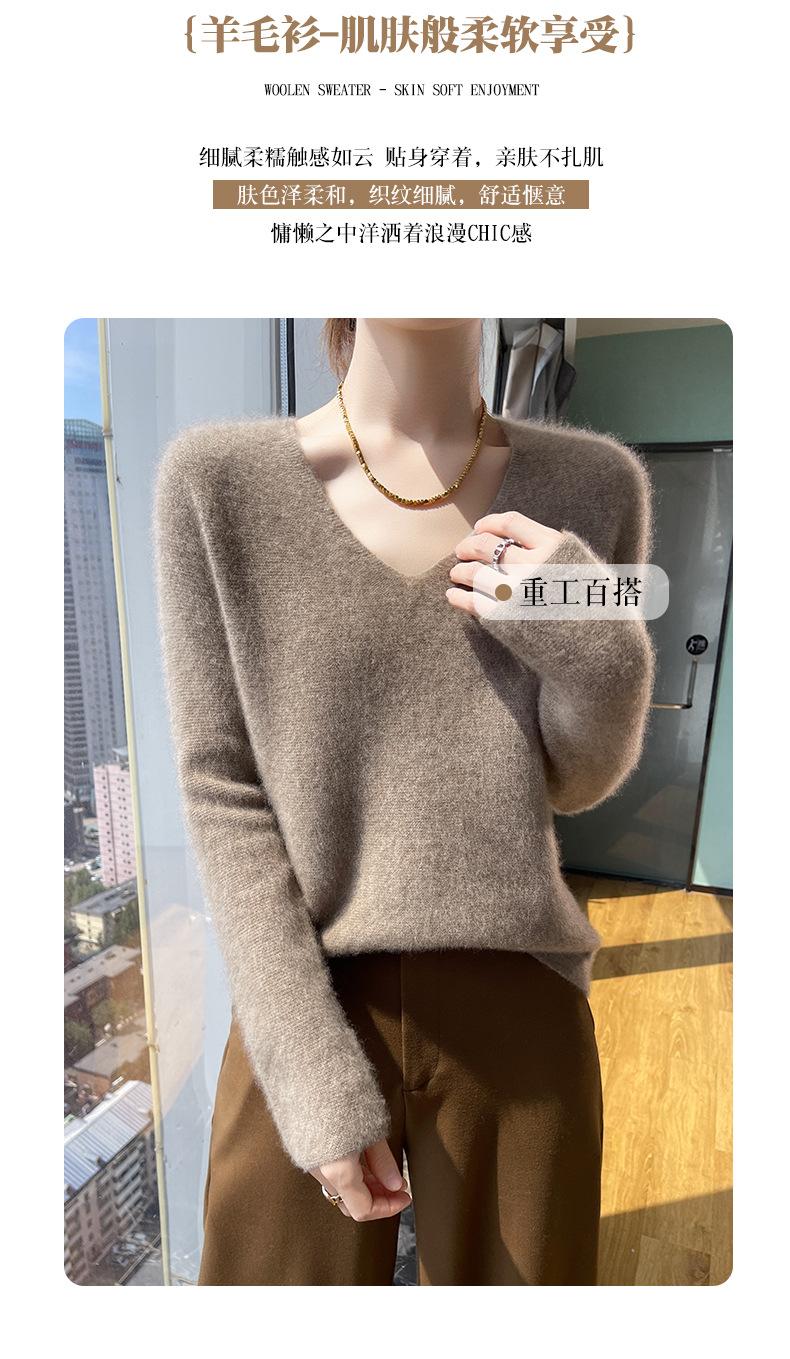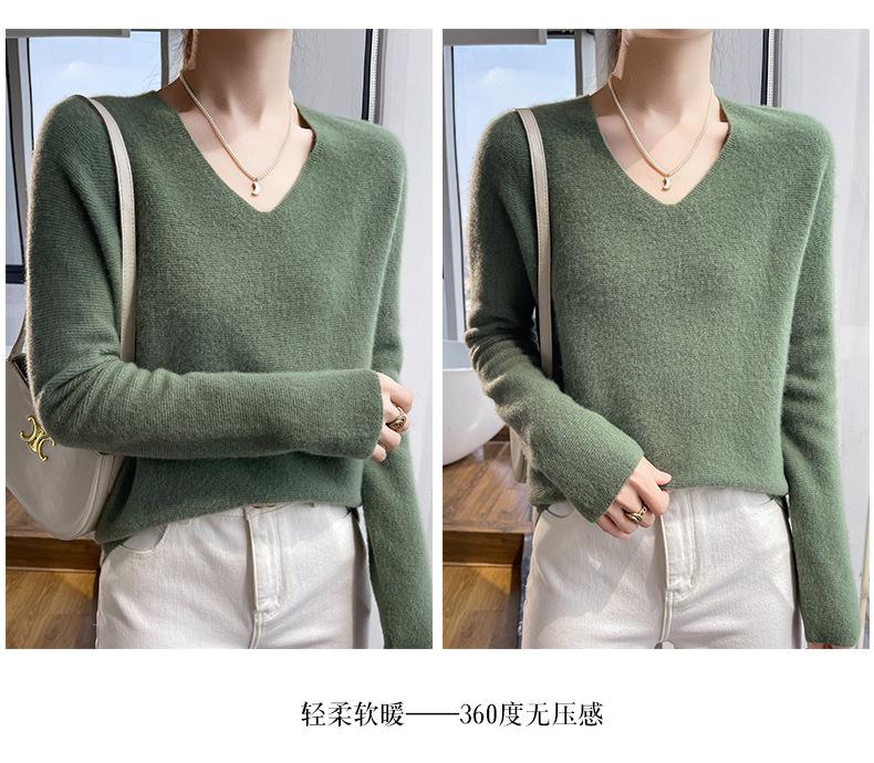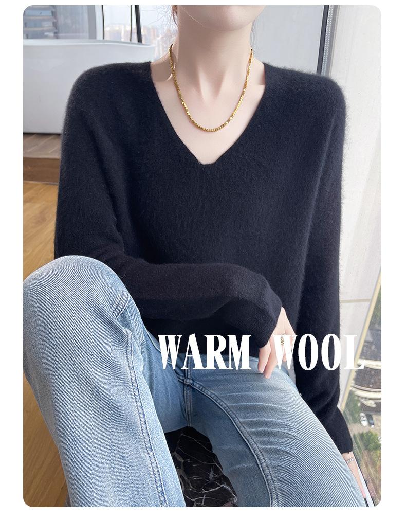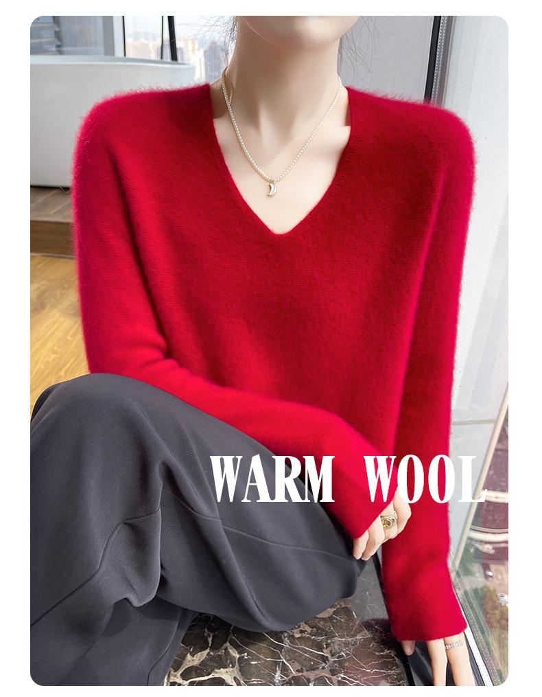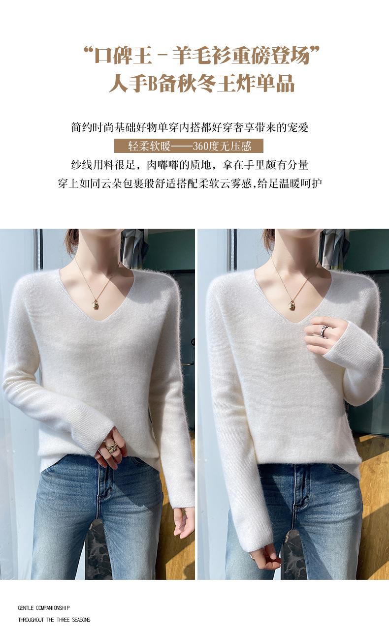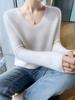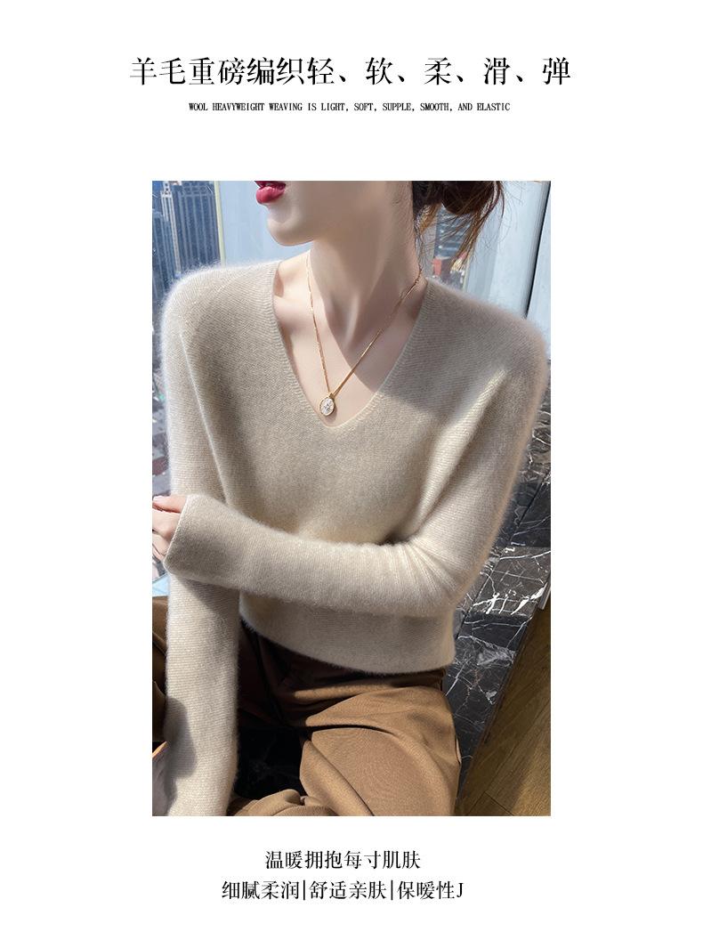 Otoño e Invierno Nuevo Camiseta Base 100% Lana para Mujer, Cuello en V Manga Larga Ajustado Suéter Grueso Versátil al por Mayor