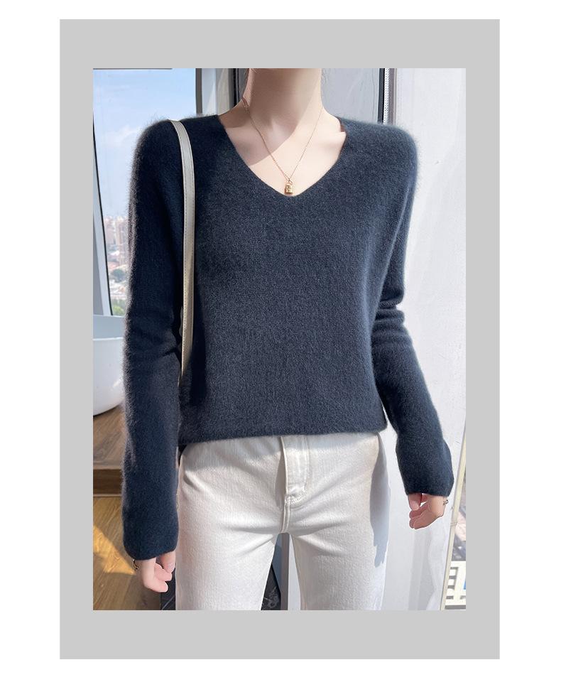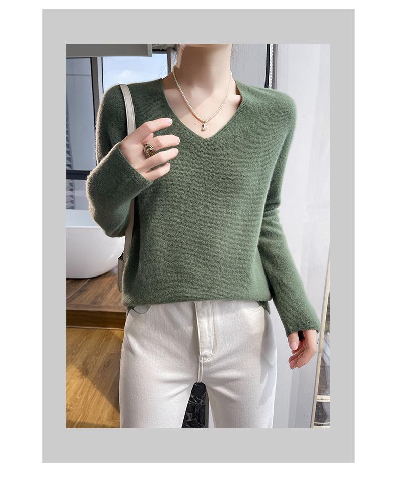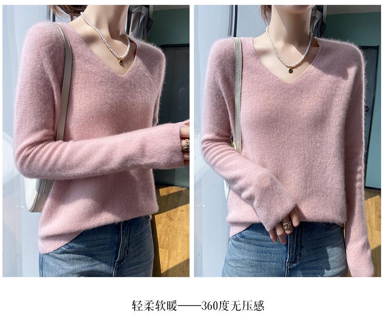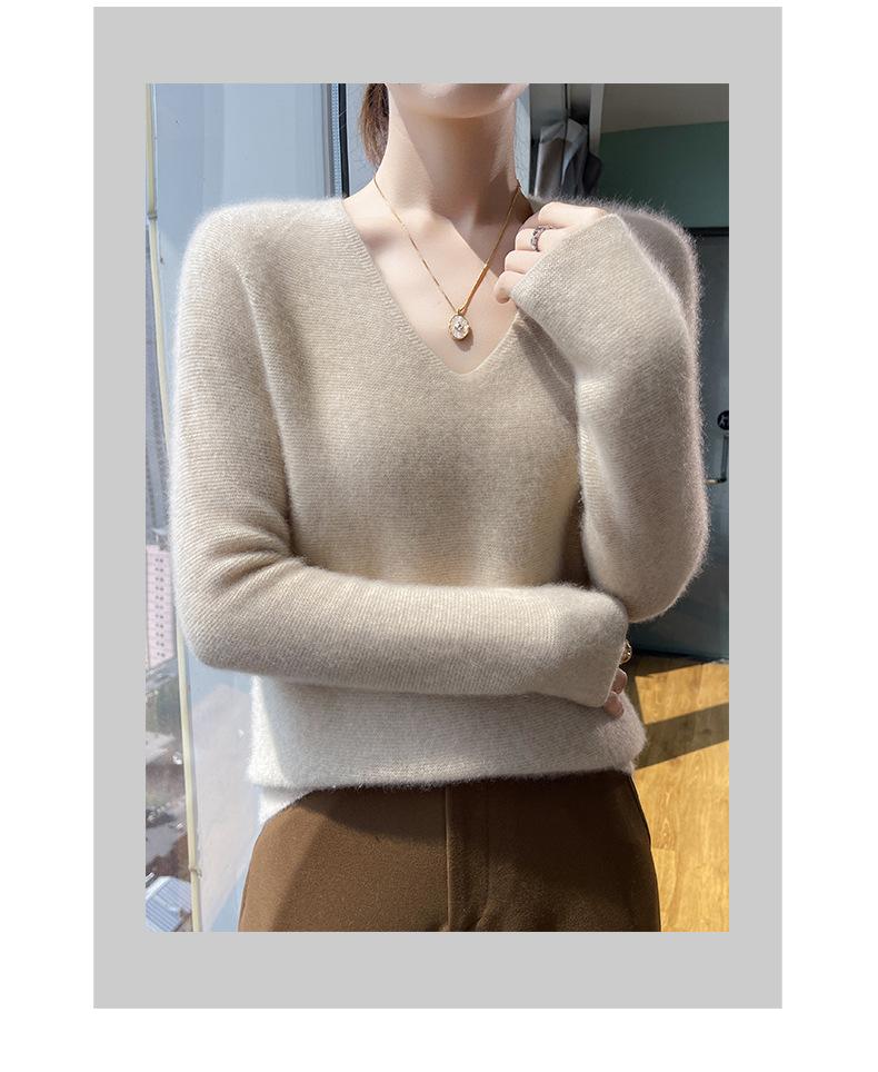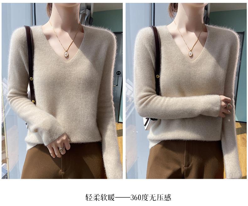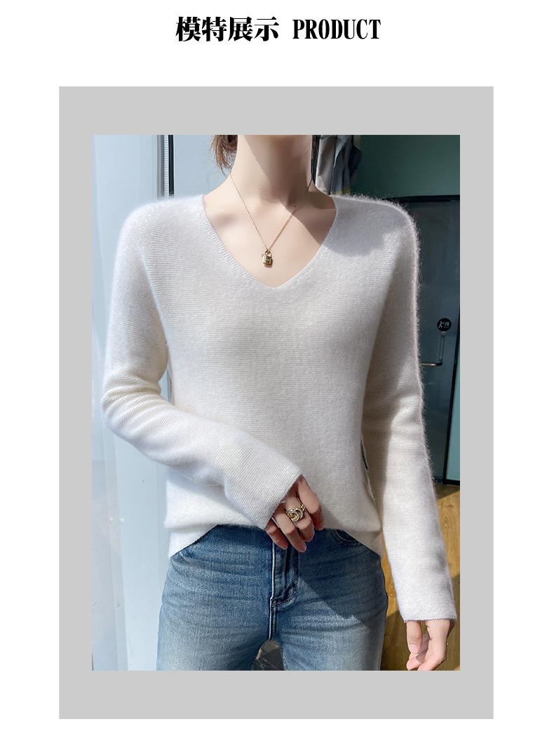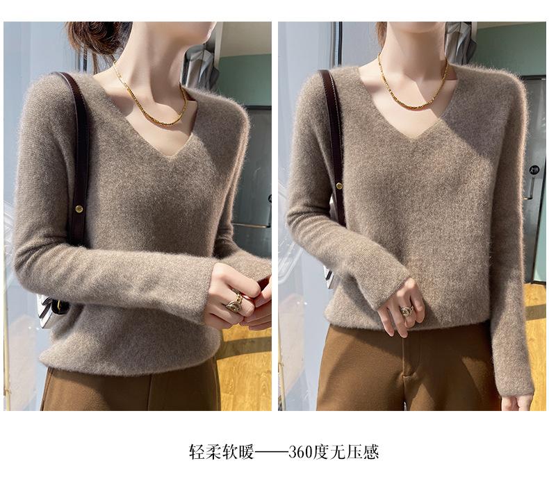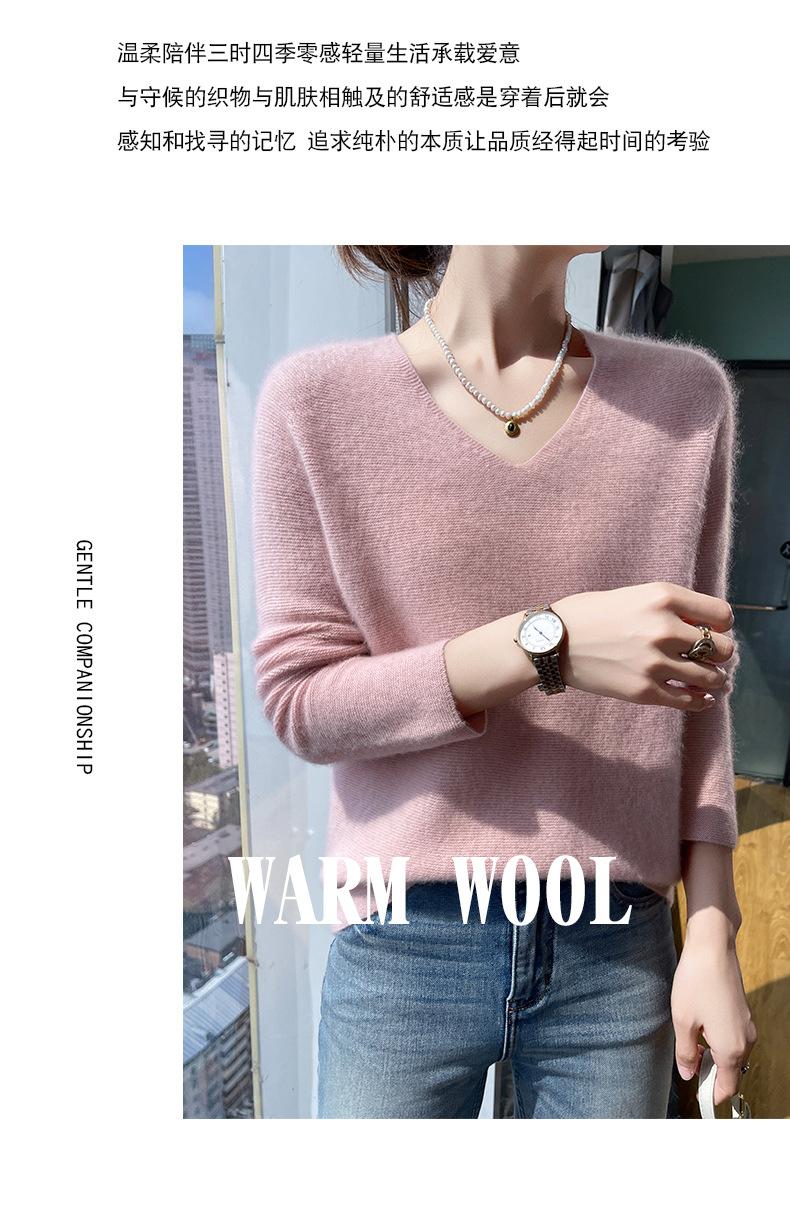 Otoño e Invierno Nuevo Camiseta Base 100% Lana para Mujer, Cuello en V Manga Larga Ajustado Suéter Grueso Versátil al por Mayor