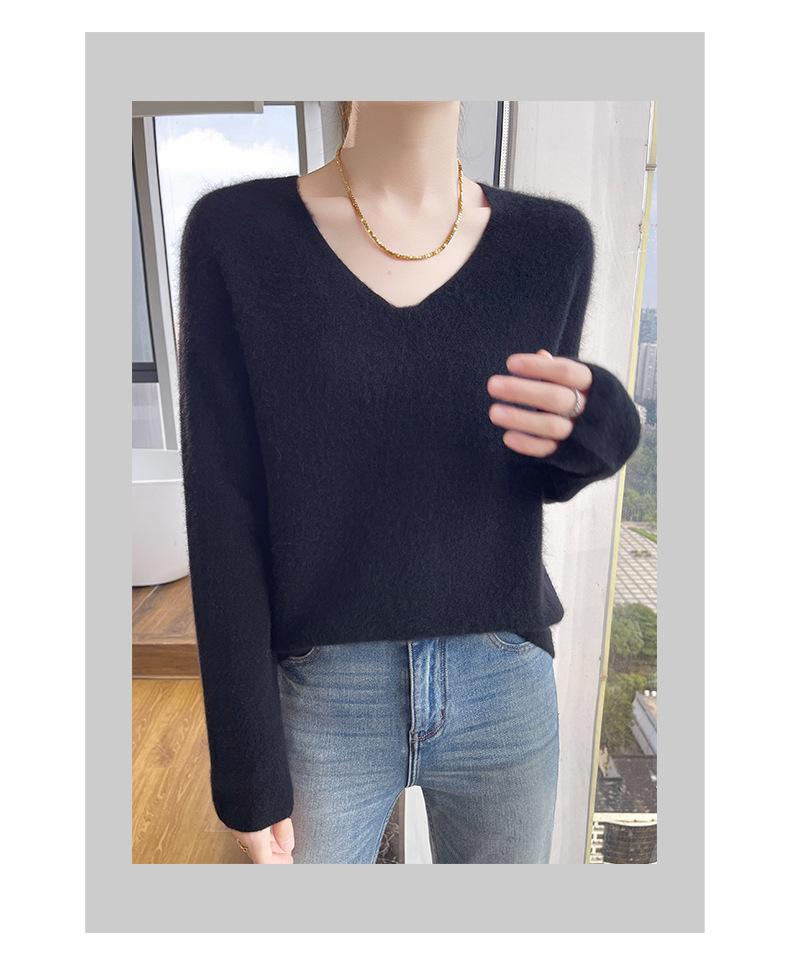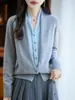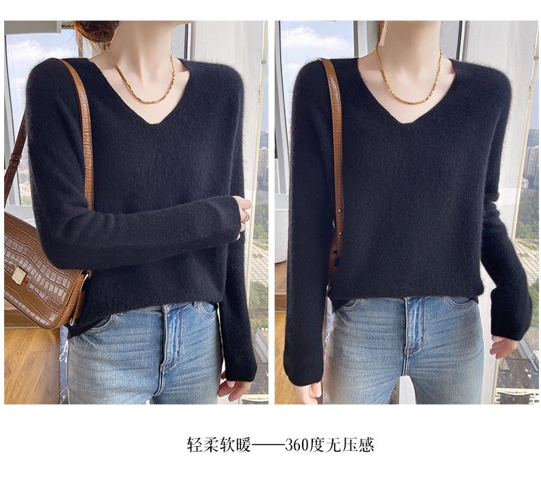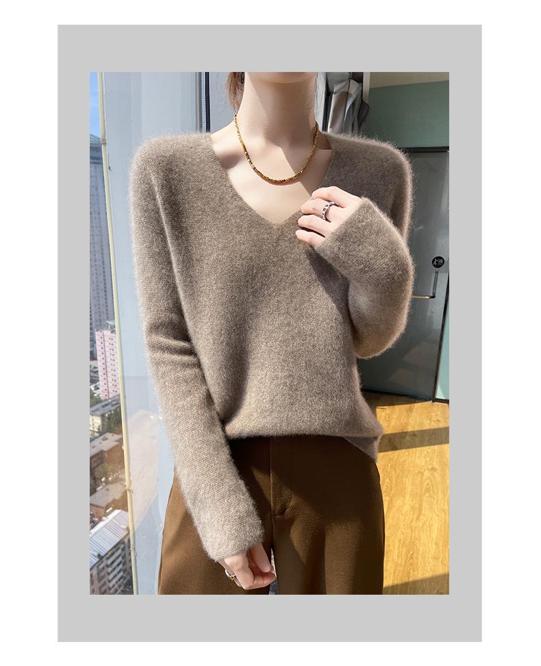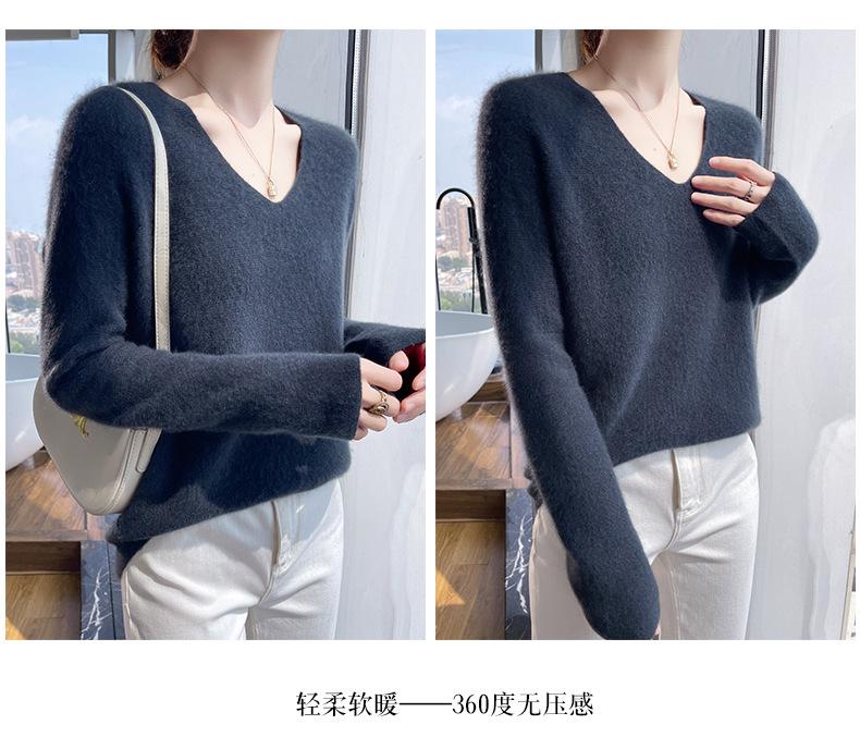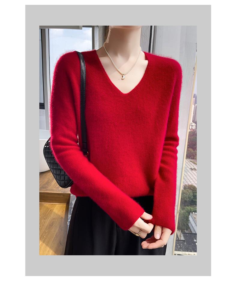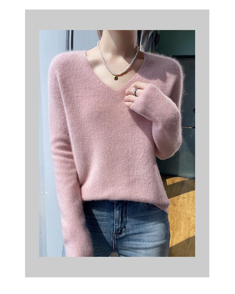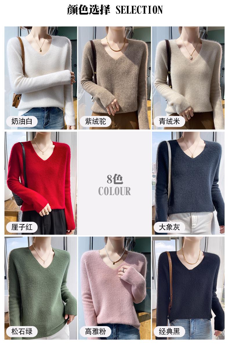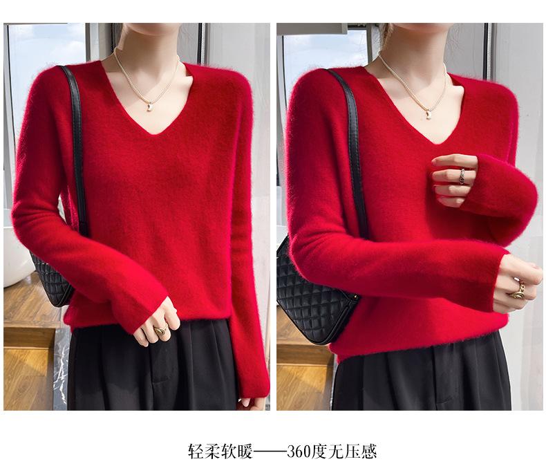 Otoño e Invierno Nuevo Camiseta Base 100% Lana para Mujer, Cuello en V Manga Larga Ajustado Suéter Grueso Versátil al por Mayor