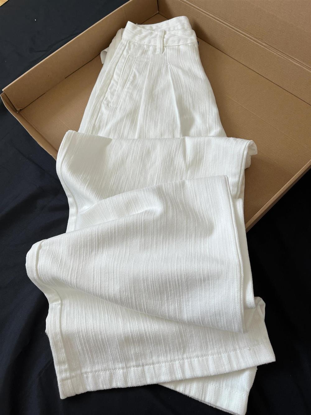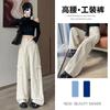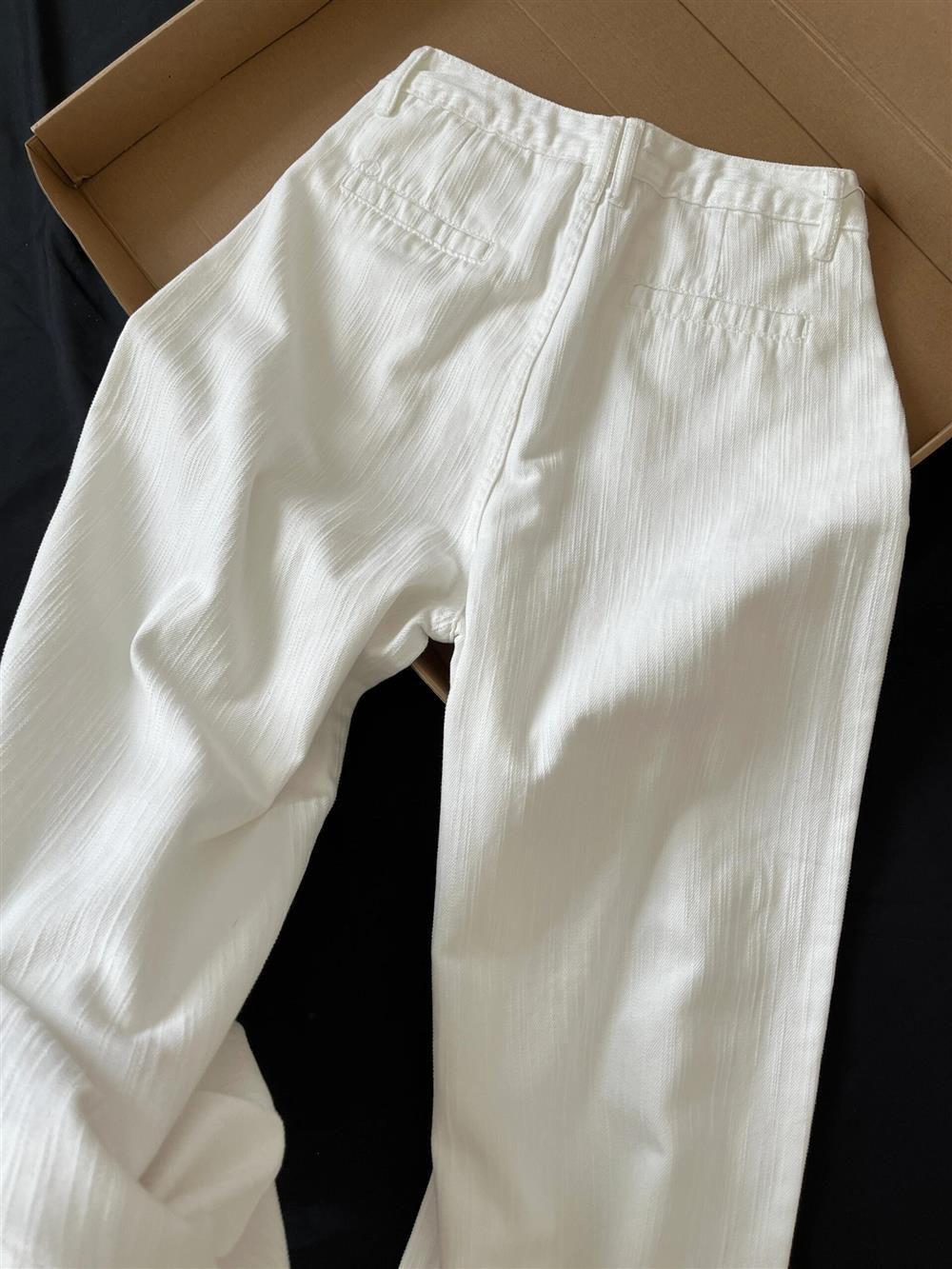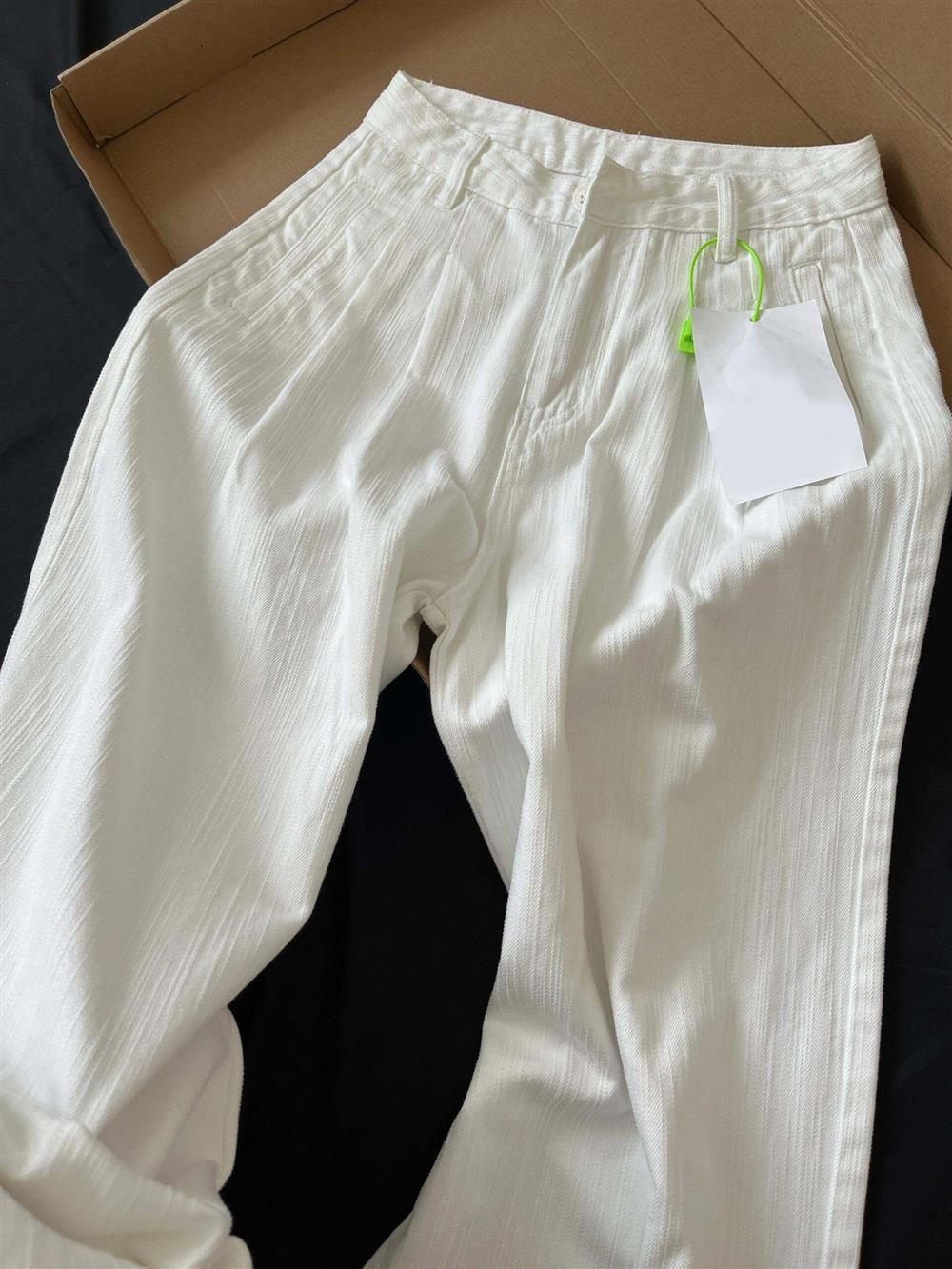 Pantalones vaqueros holgados y rectos con textura Design Sense para mujer, otoño, nuevos, blancos, de cintura alta, ajustados, con pierna ancha y combinables.