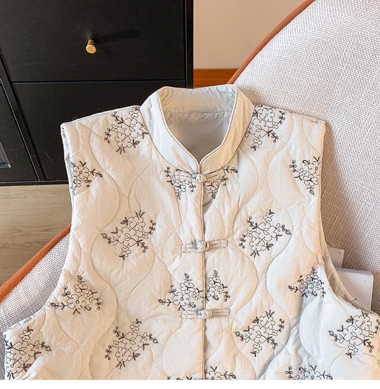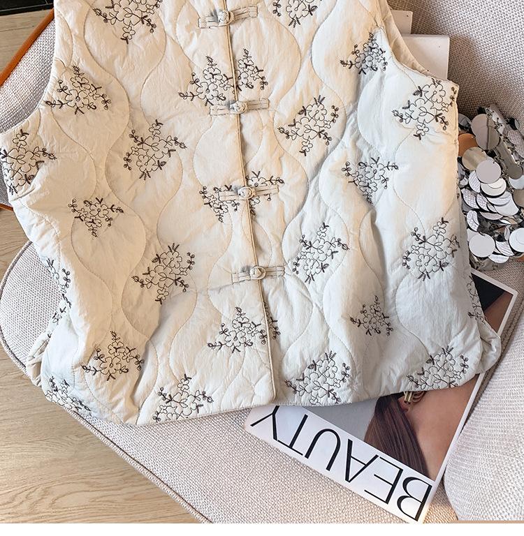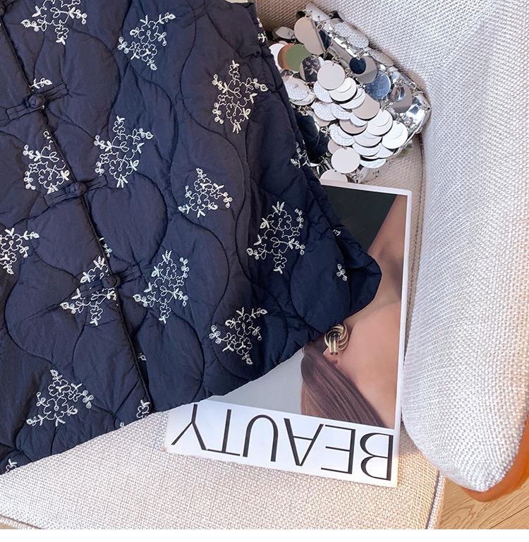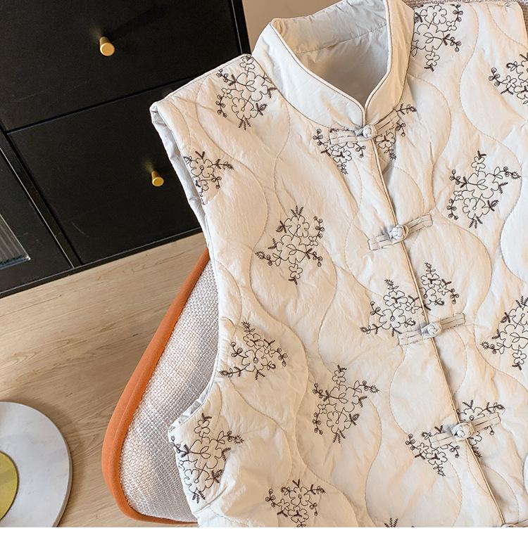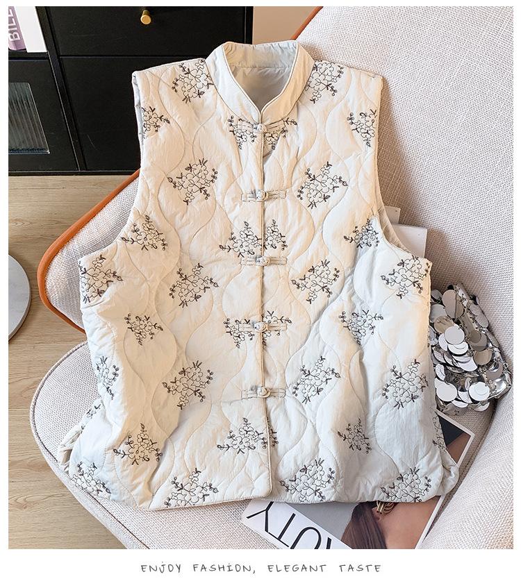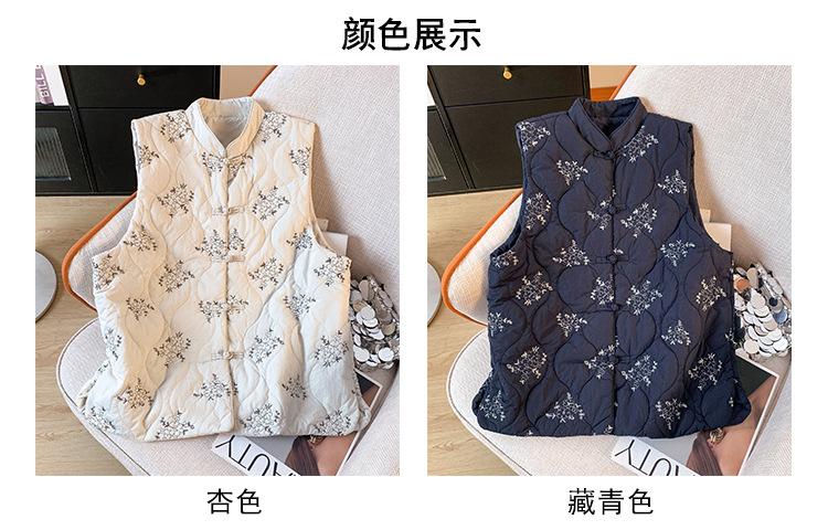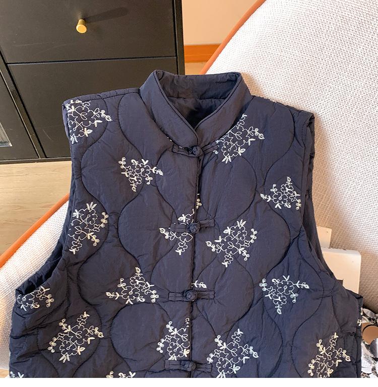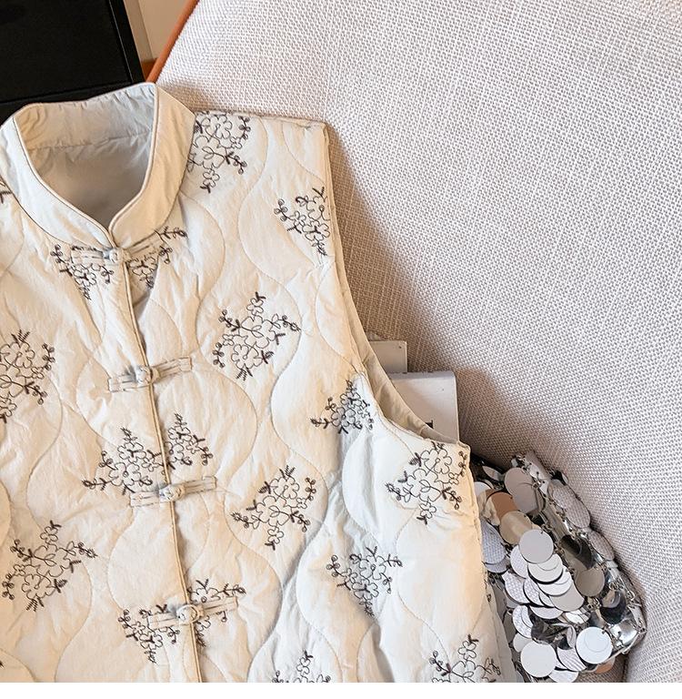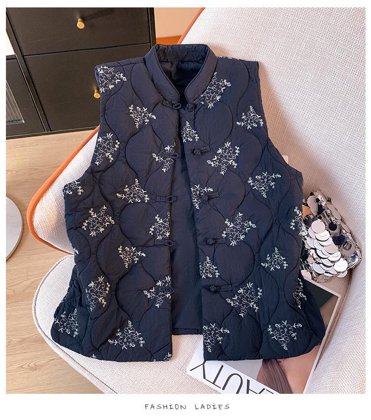 Toma Real Chaqueta Chaleco Acolchado de Algodón con Bordado Pesado para Mujer Invierno Retro Nuevo Estilo Chino Chaleco de Invierno Chaqueta Cálida