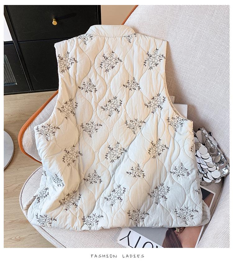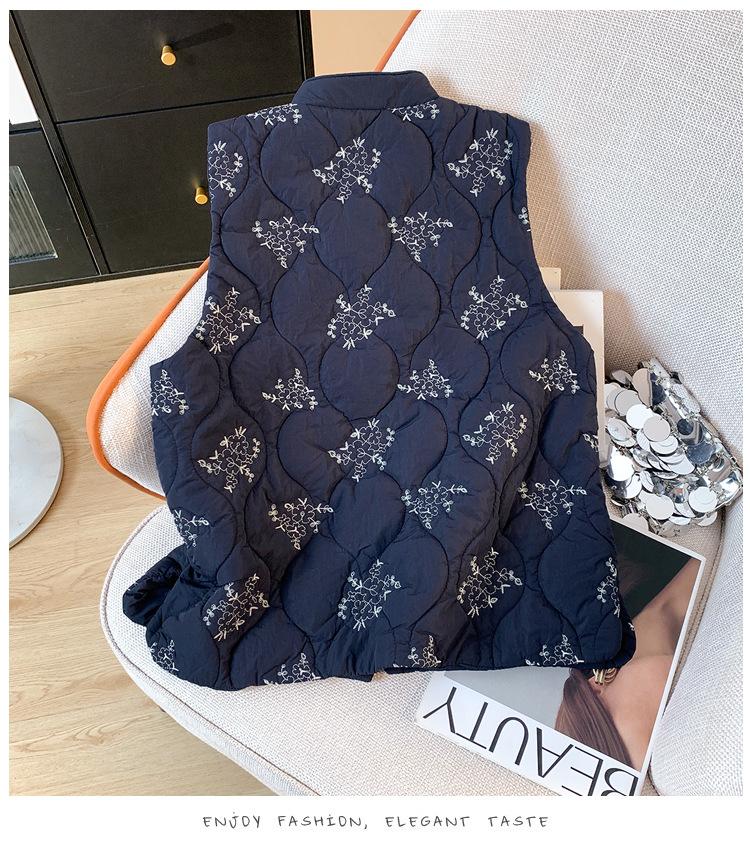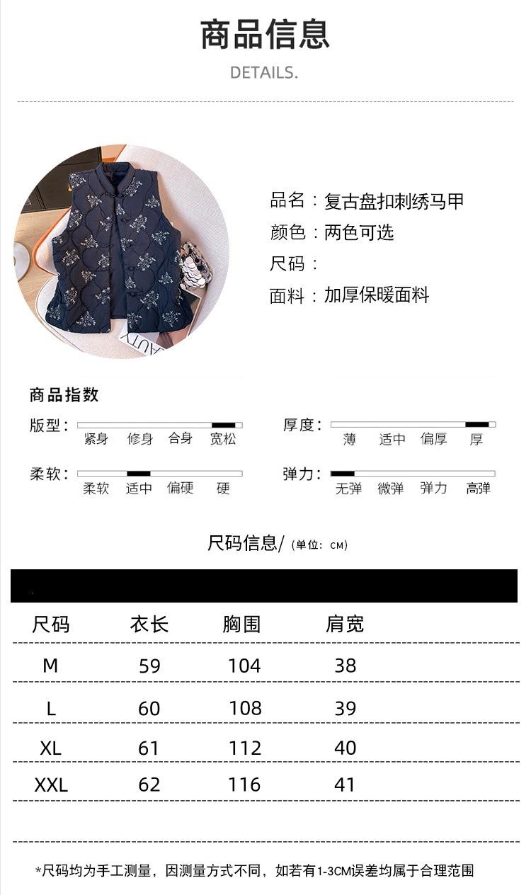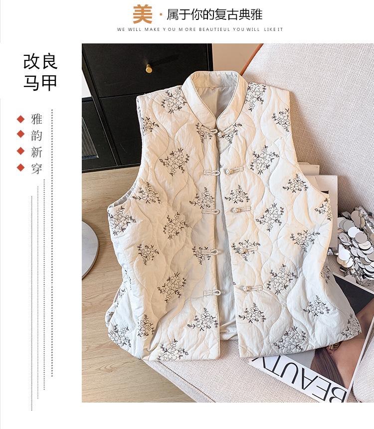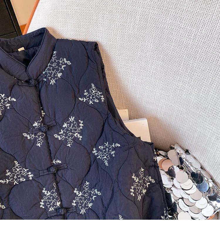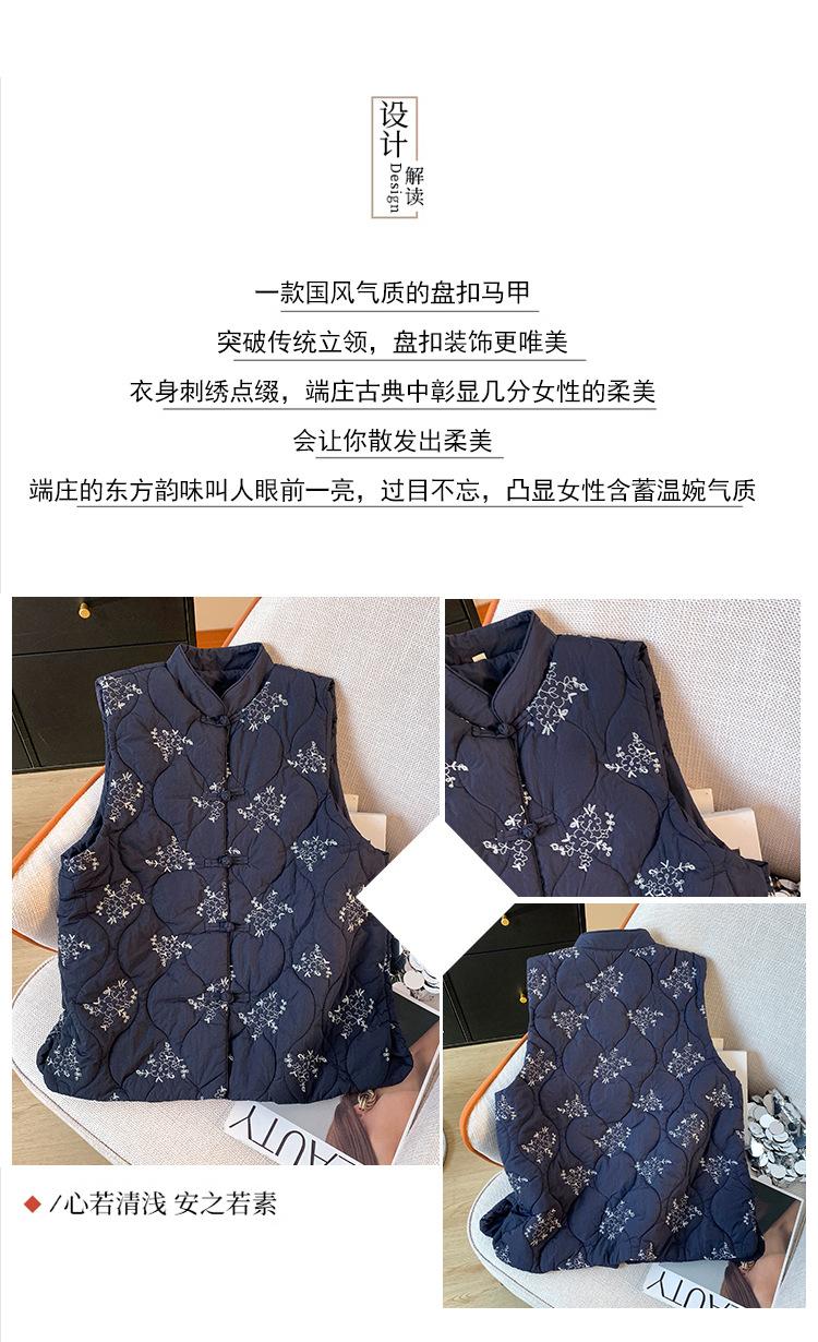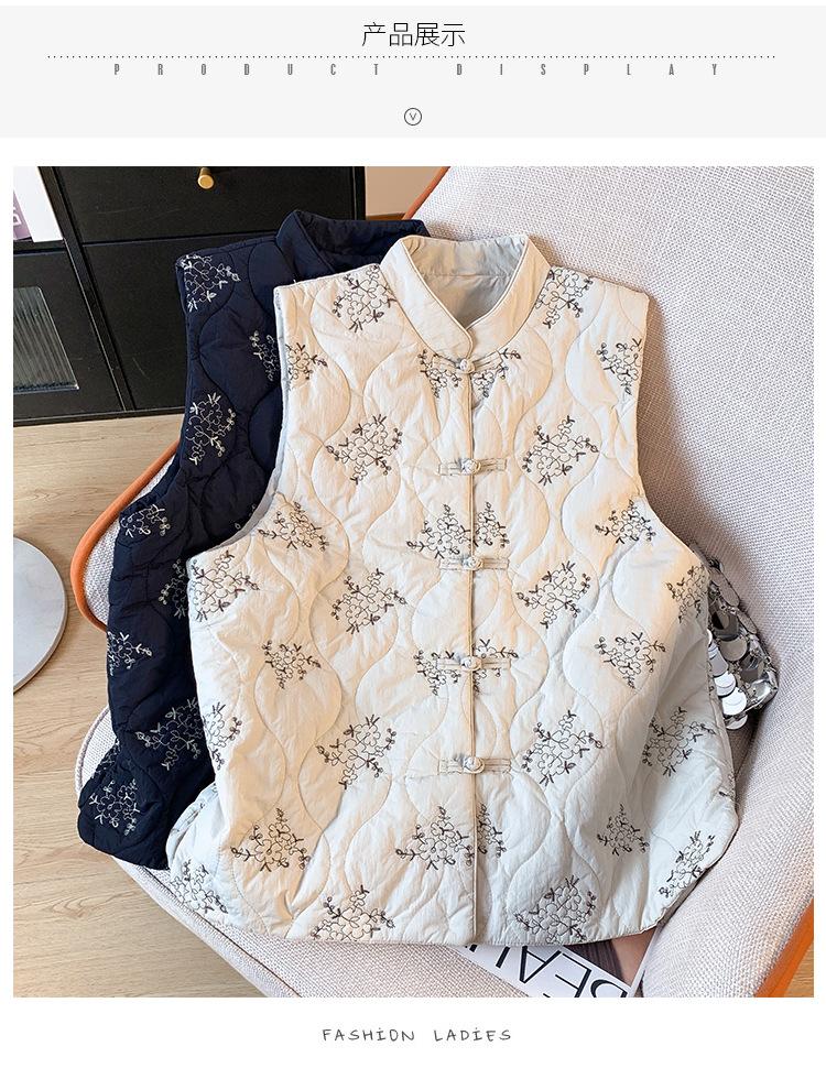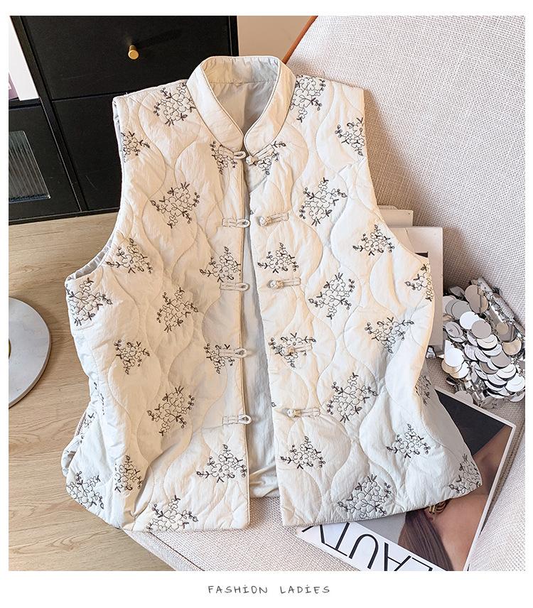 Toma Real Chaqueta Chaleco Acolchado de Algodón con Bordado Pesado para Mujer Invierno Retro Nuevo Estilo Chino Chaleco de Invierno Chaqueta Cálida