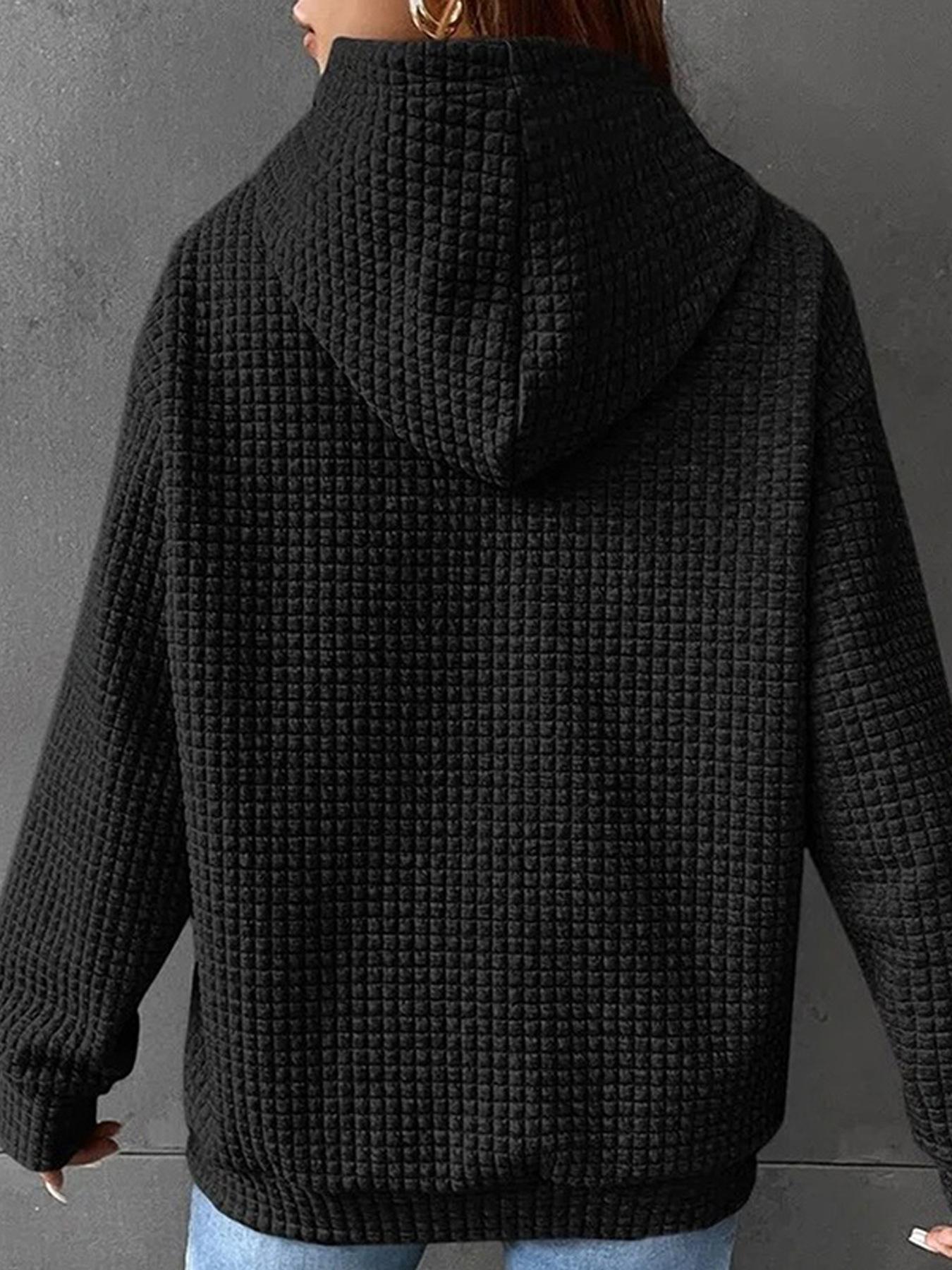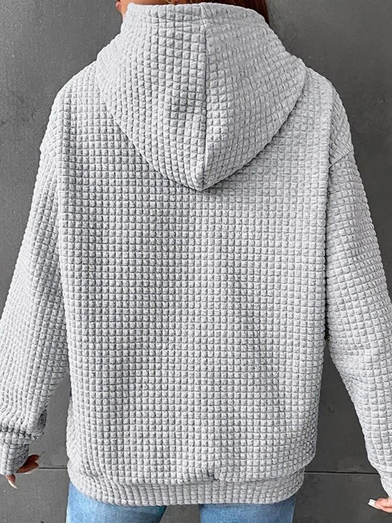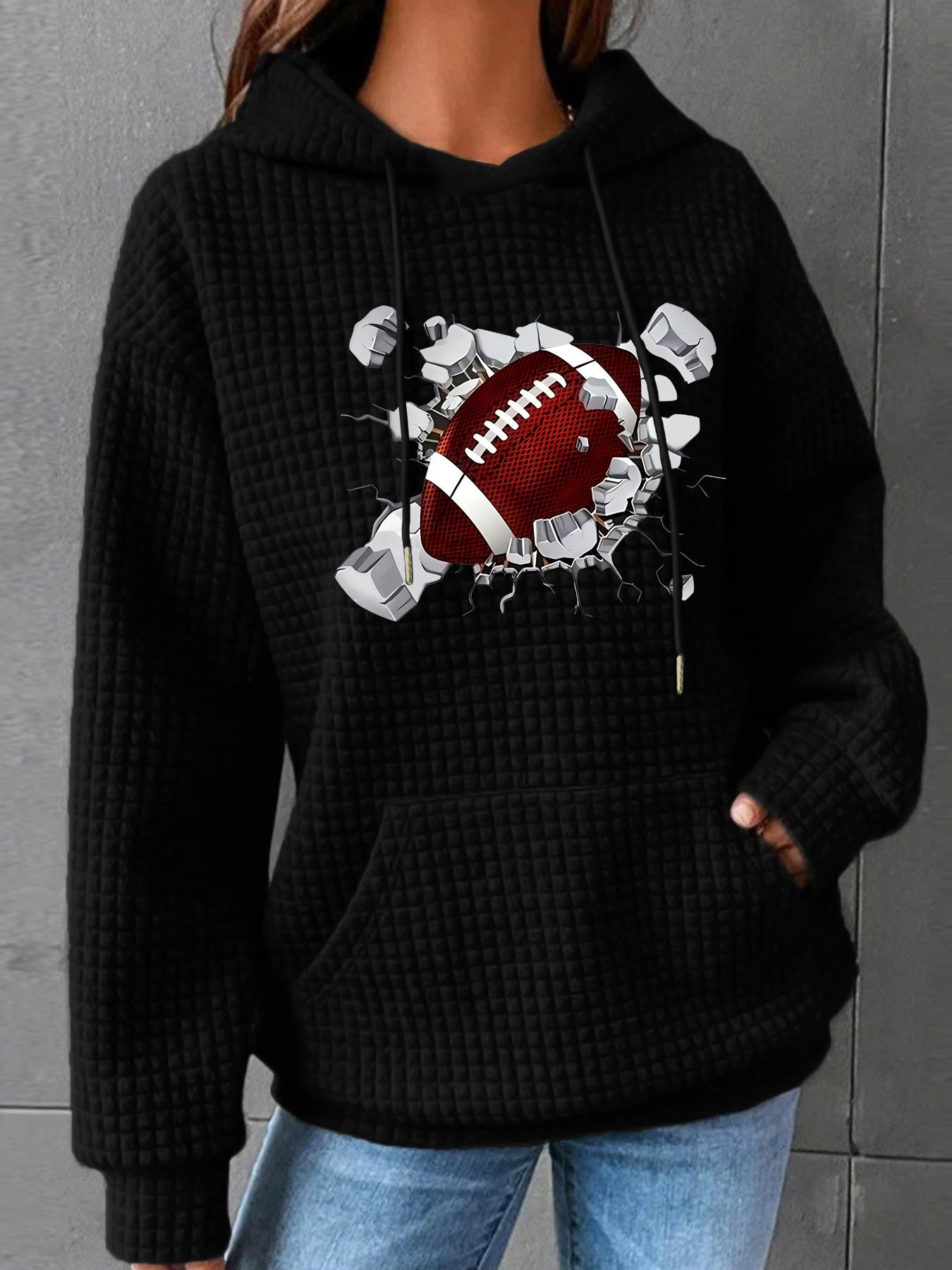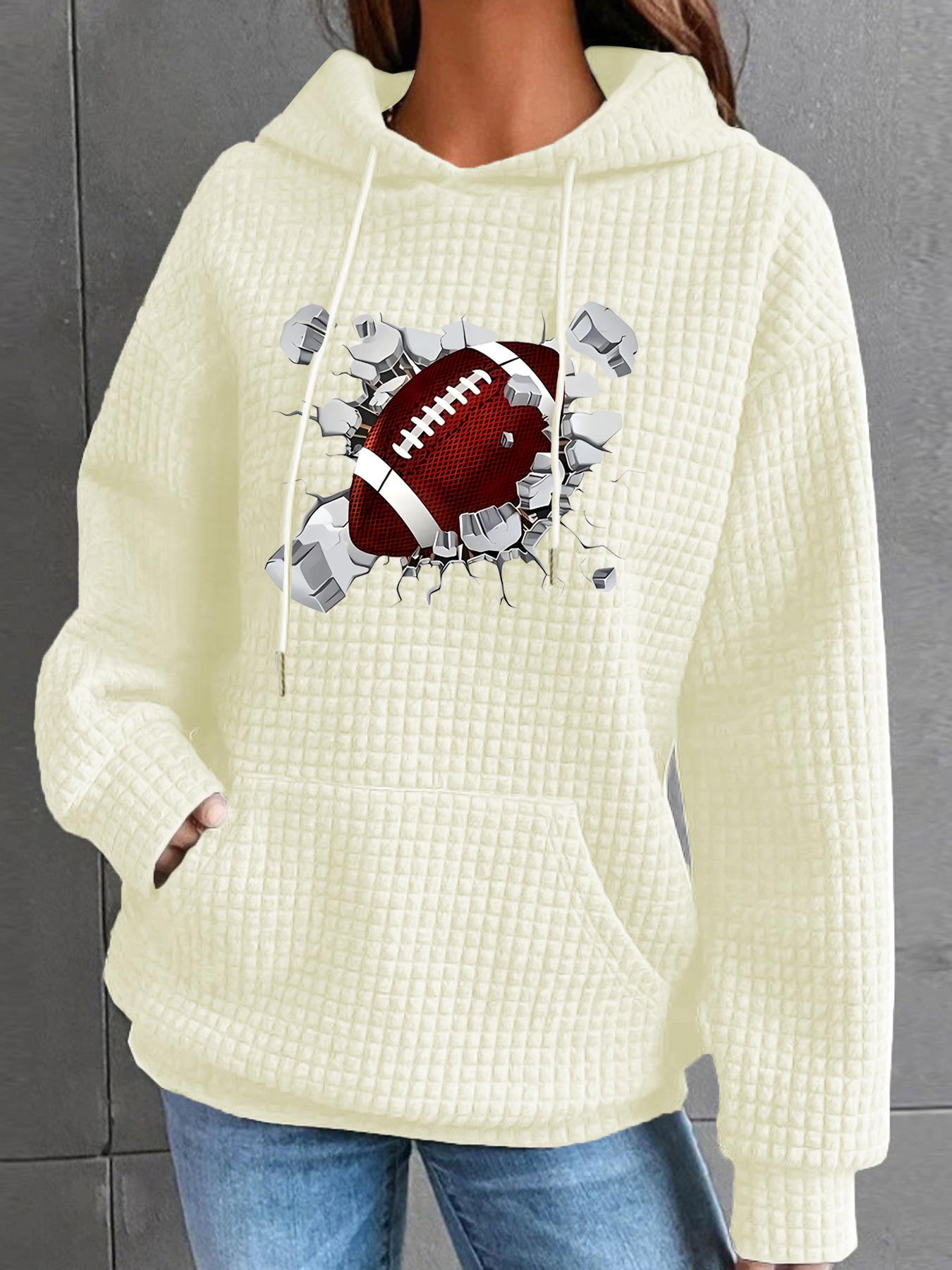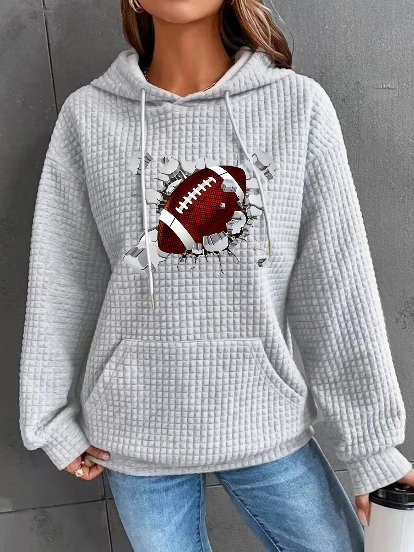 Otoño e Invierno Nuevo Sudadera de Mujer con Capucha de Manga Larga con Bolsillo Canguro tipo Waffle con Estampado de Béisbol Código Europeo Transfronterizo Europeo