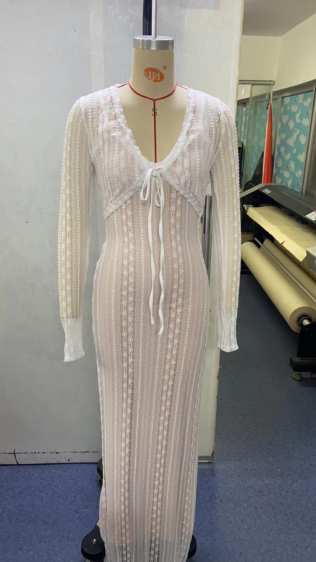 Cárdigan Europeo y Americano Transfronterizo para Mujer Verano Nuevo Manga Larga Protector Solar Sexy Cuello en V Vestido con Abertura Fiesta Elegante
