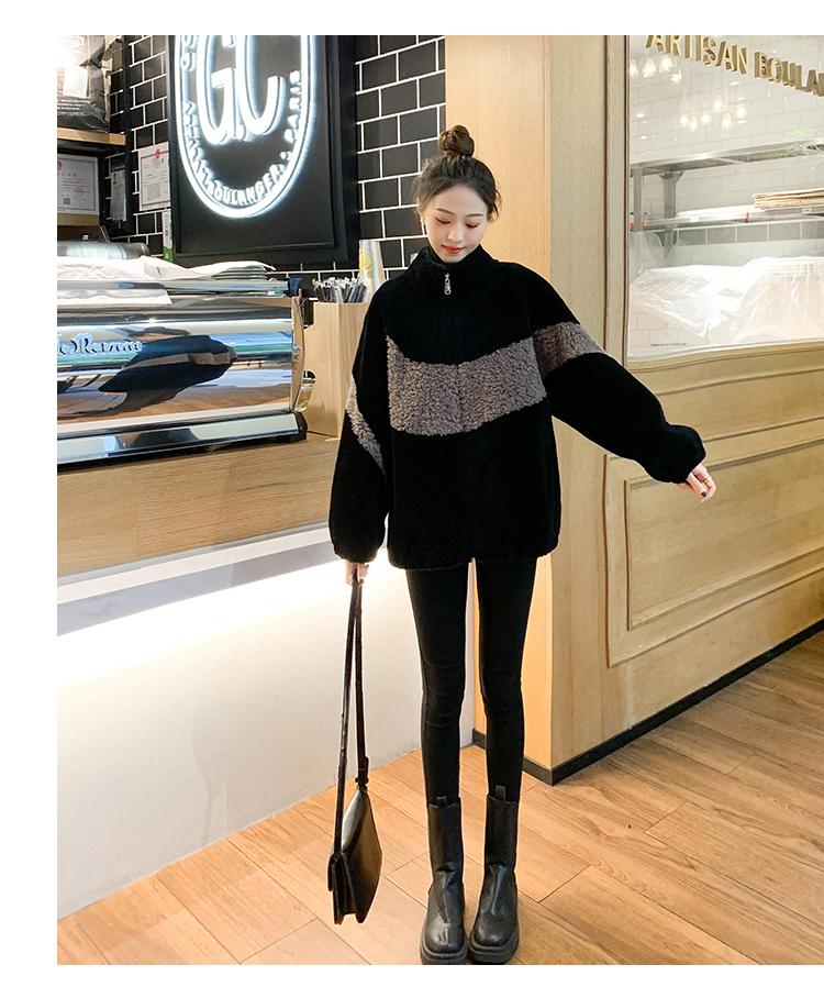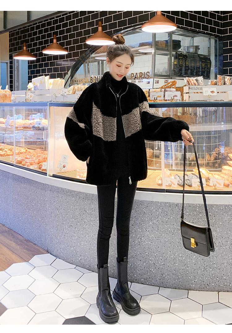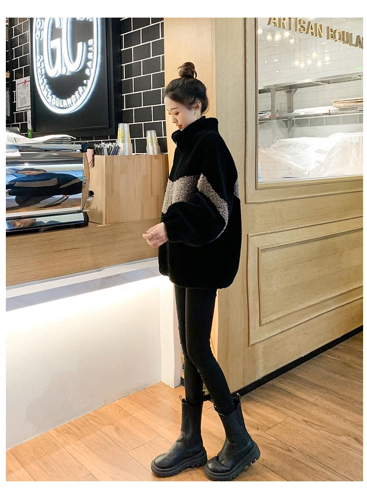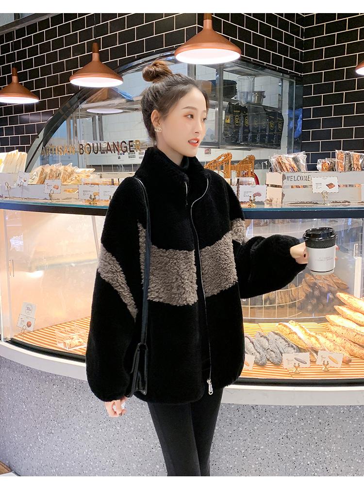 Abrigo de piel de cordero con combinación de colores, abrigo de cachemira corto, abrigo de piel suelto para mujer, otoño e invierno, 2023