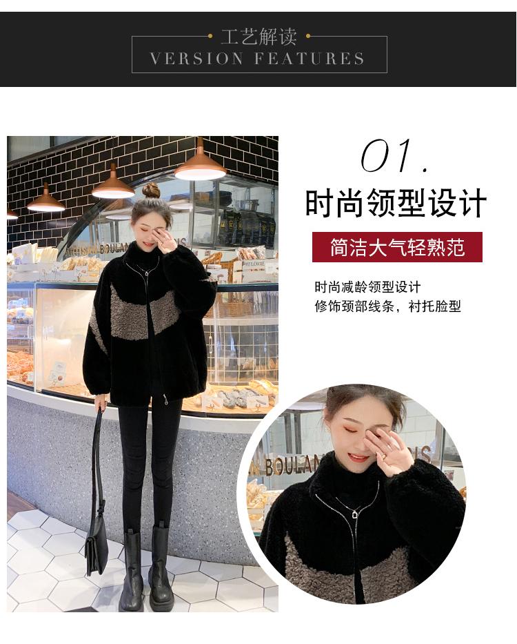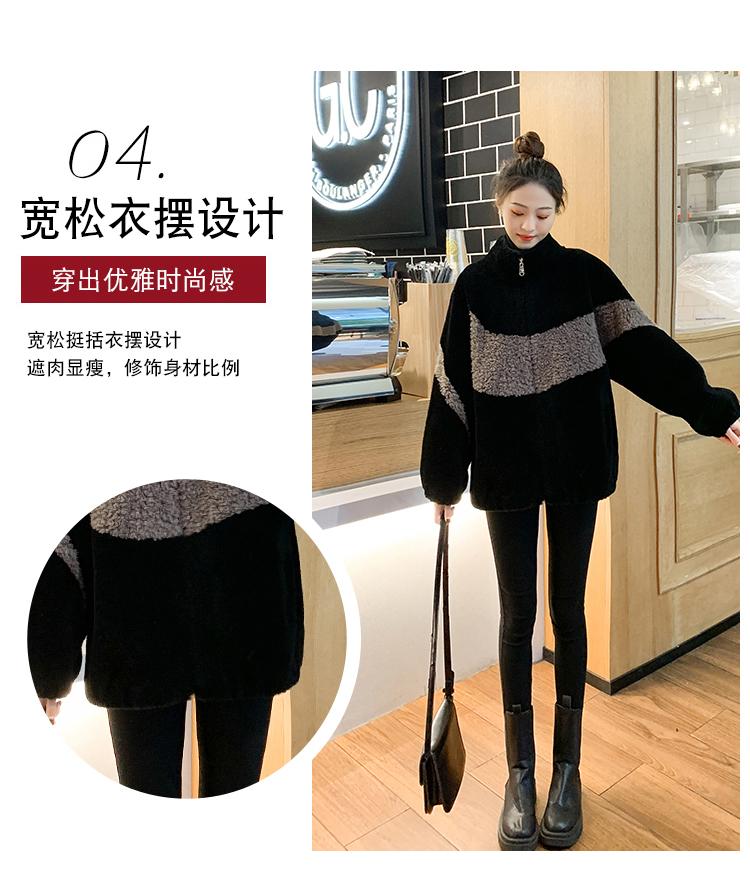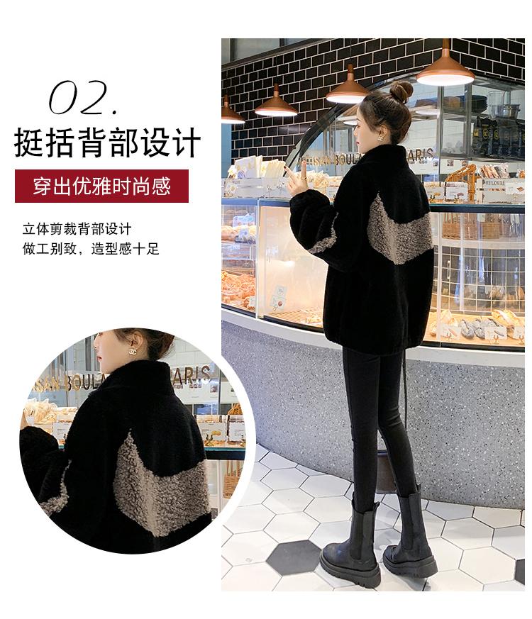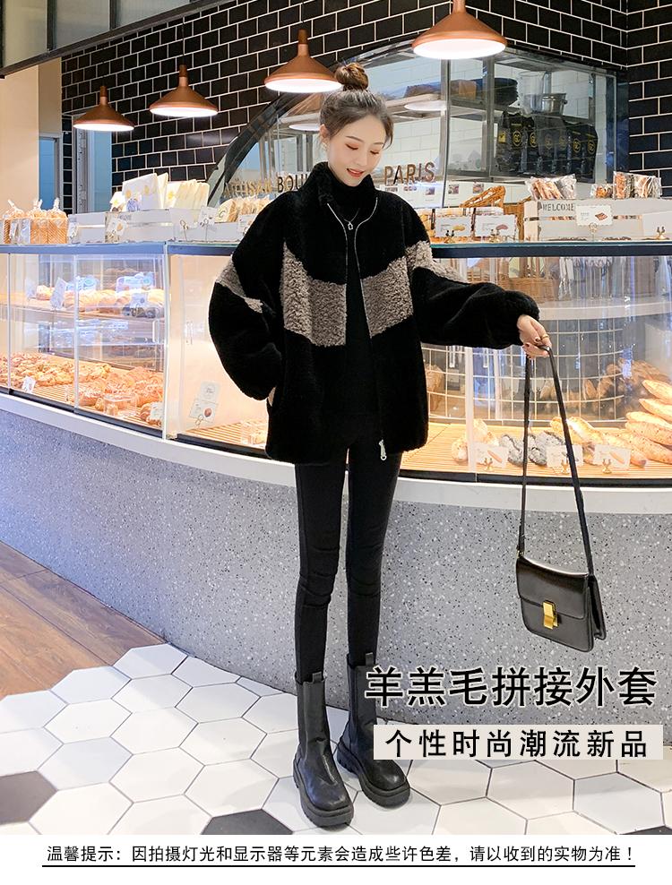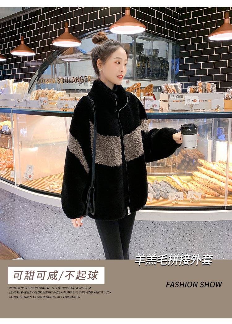 Abrigo de piel de cordero con combinación de colores, abrigo de cachemira corto, abrigo de piel suelto para mujer, otoño e invierno, 2023