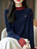 Ropa de Punto de Color en Contraste para Mujer 2024 Otoño Nuevo Estación Europea Top de Manga Larga Suéter a Juego de Colores Camiseta Básica Ajustada