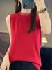 Primavera y Verano Nuevo Top sin Mangas Tirantes Cuello Redondo Diamante Base Interior Suéter de Punto Delgado Lana Peinada Chaleco para Mujer