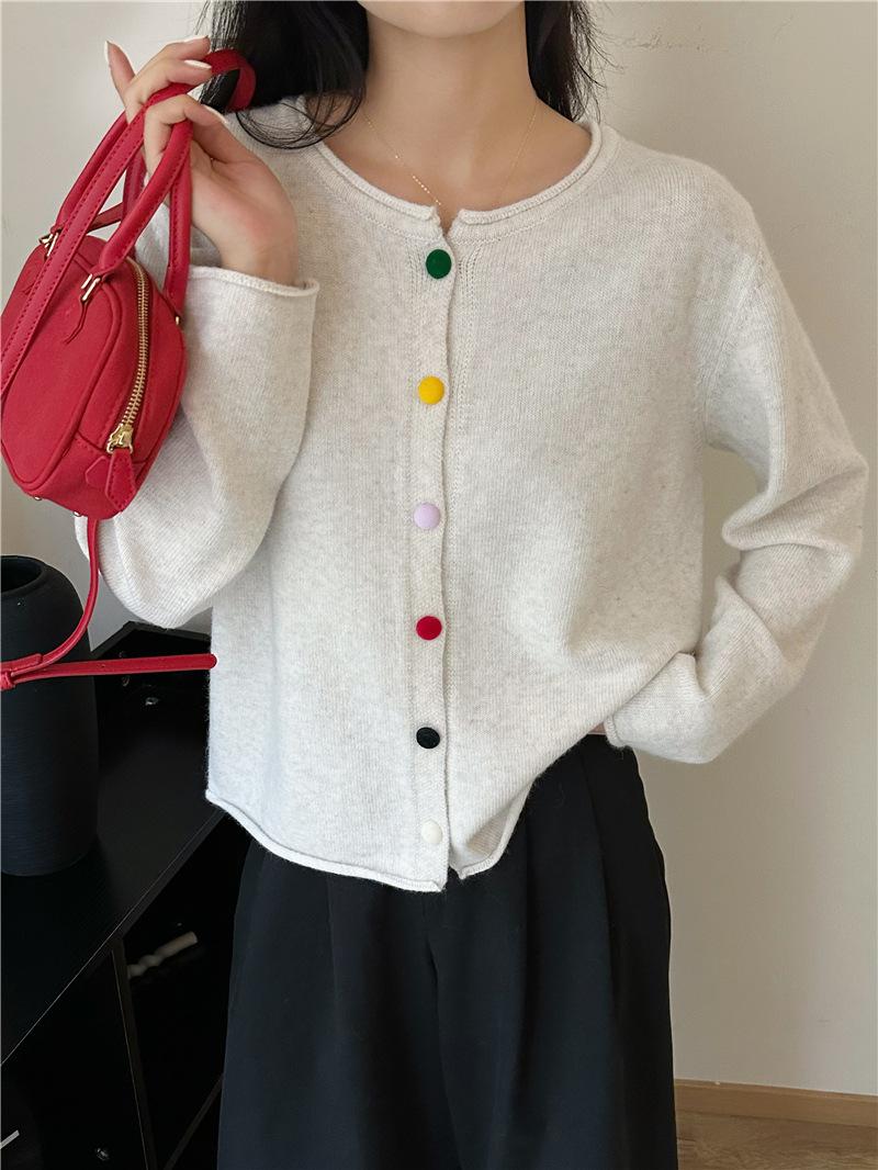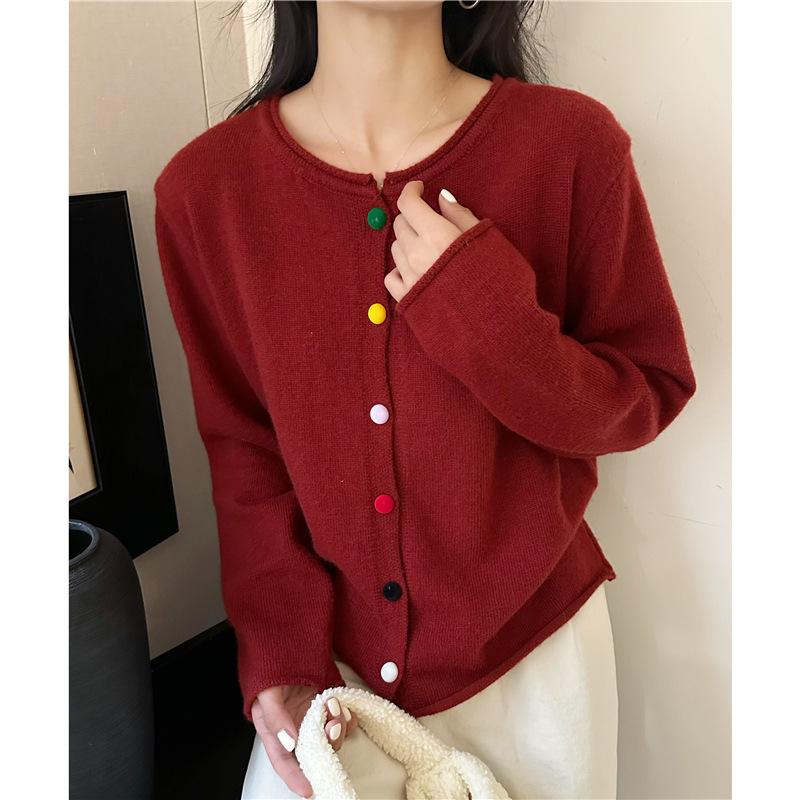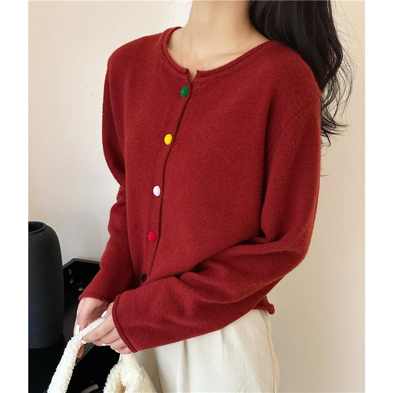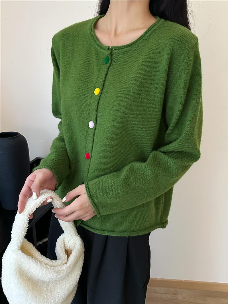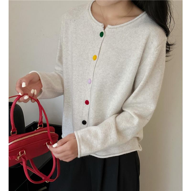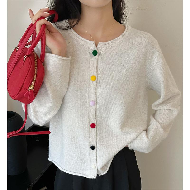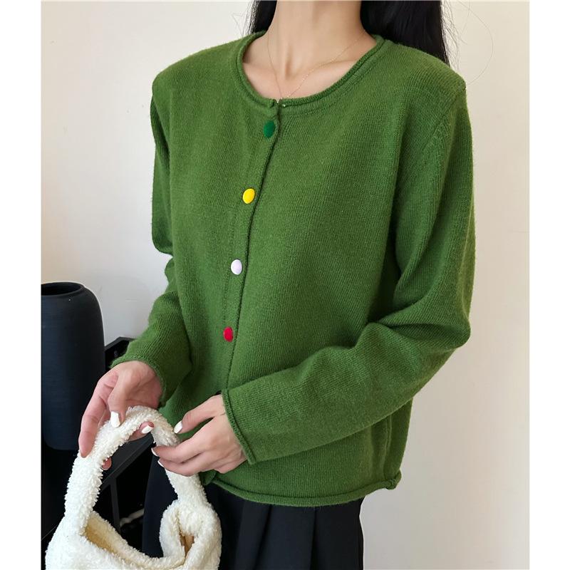 Cárdigan de punto de lana con cuello redondo y botonadura simple estilo coreano que reduce la edad, estilo nuevo de principios de otoño, chaqueta suéter de nicho relajada