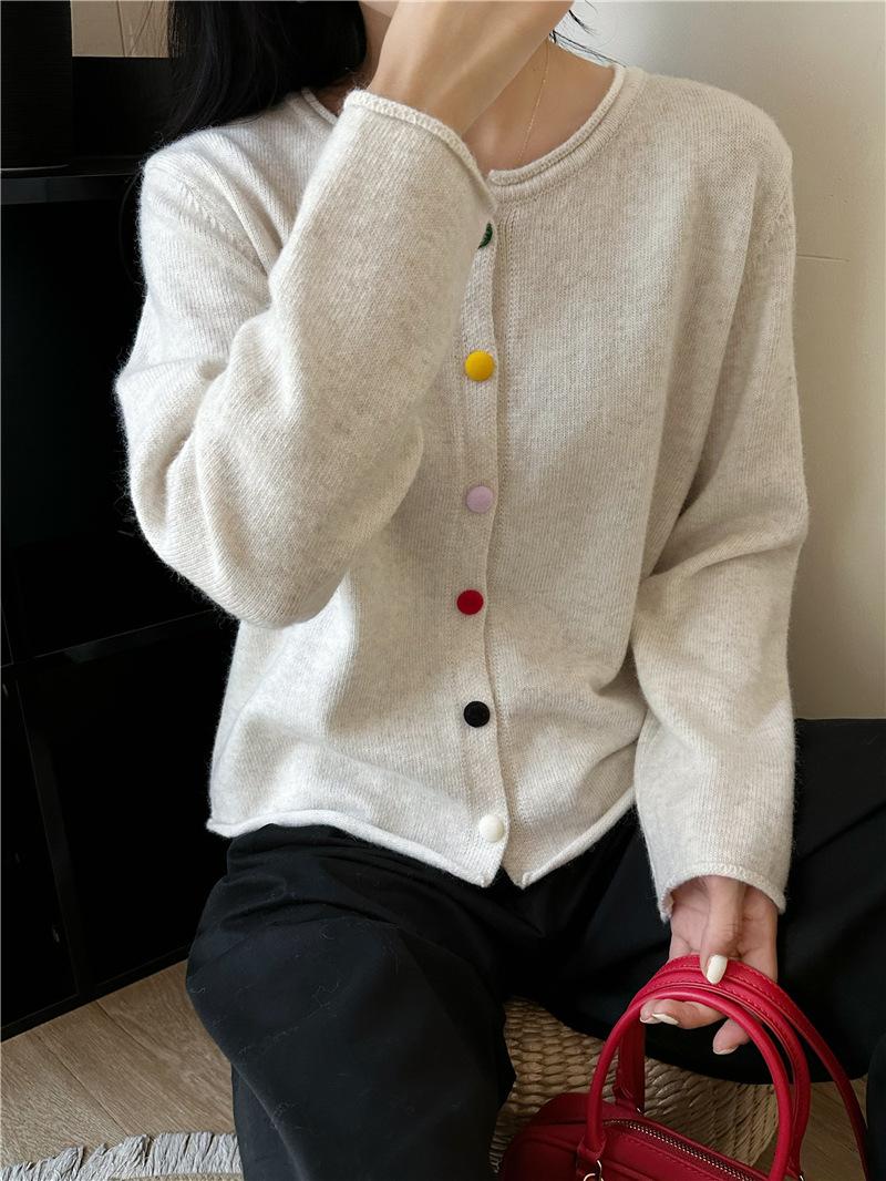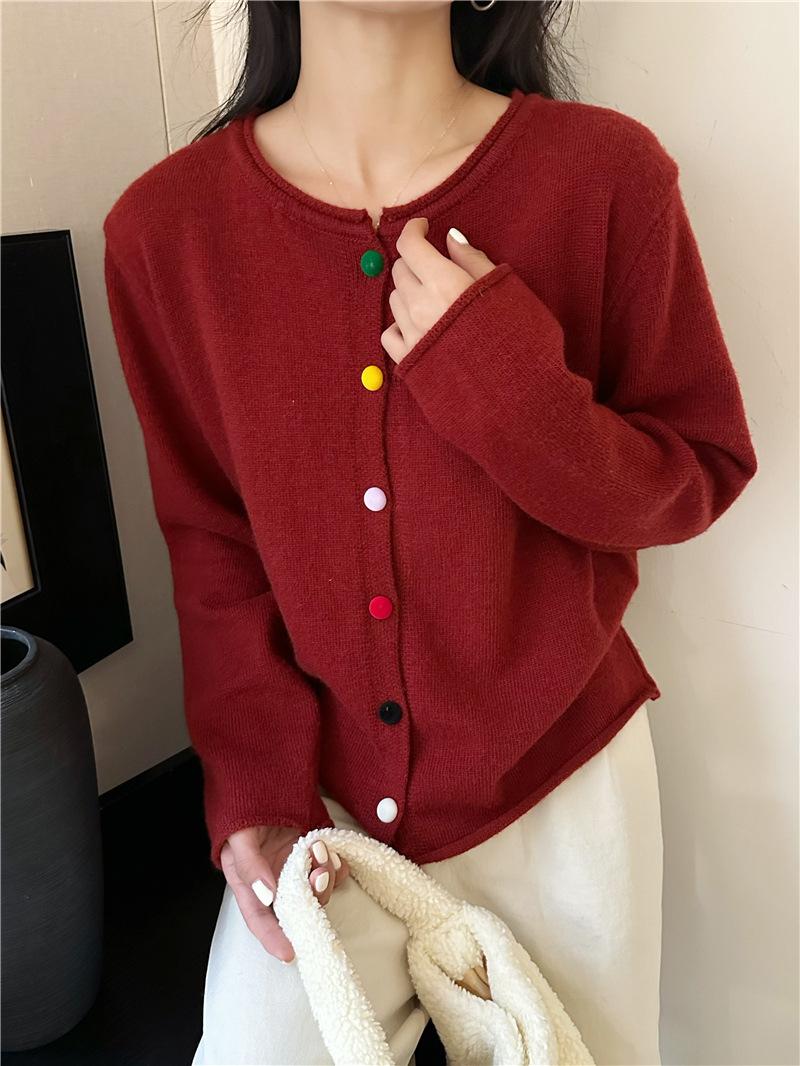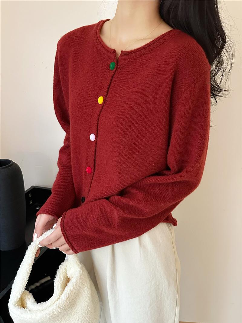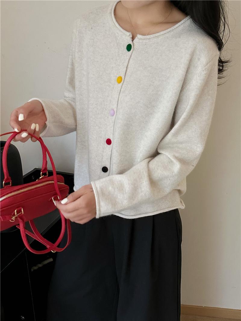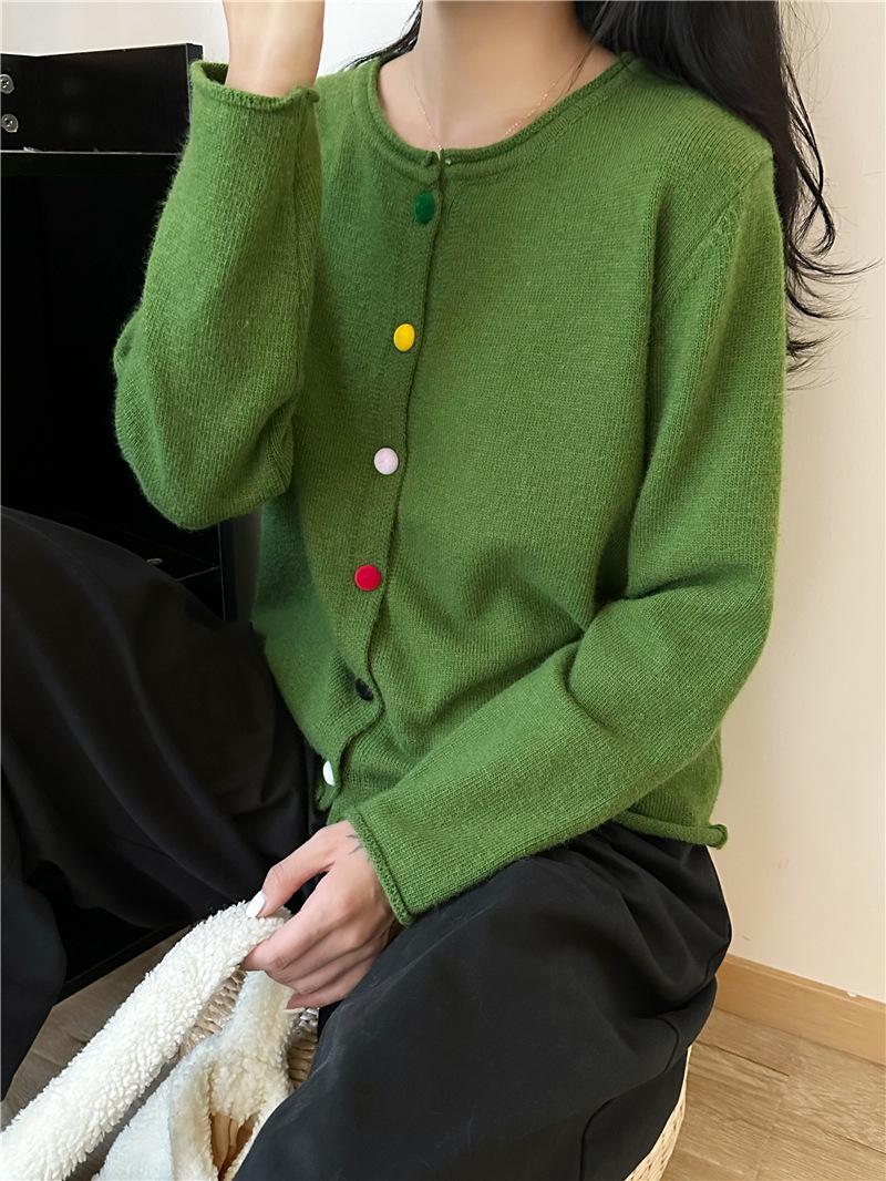 Cárdigan de punto de lana con cuello redondo y botonadura simple estilo coreano que reduce la edad, estilo nuevo de principios de otoño, chaqueta suéter de nicho relajada