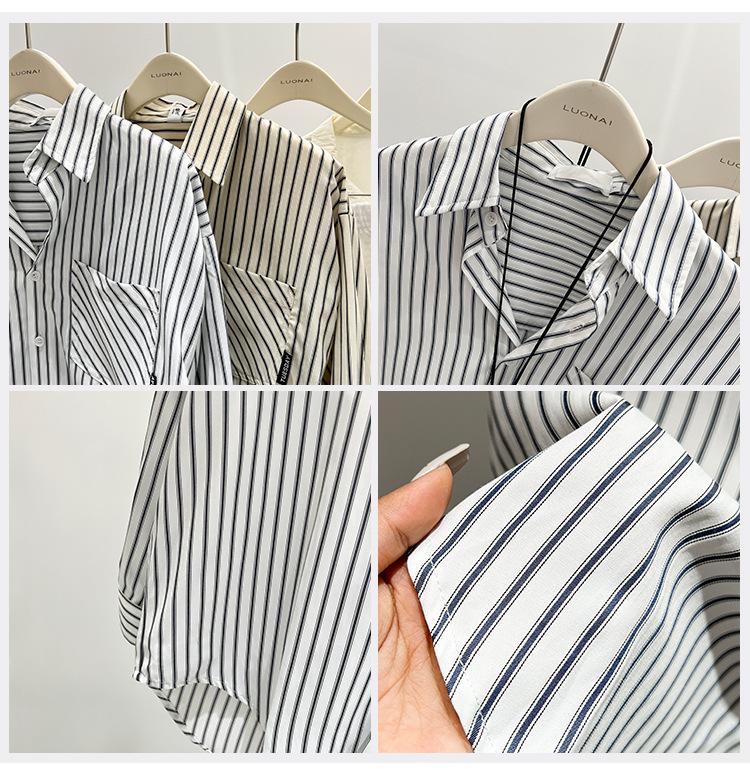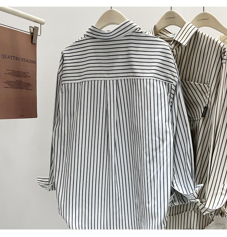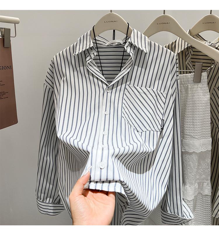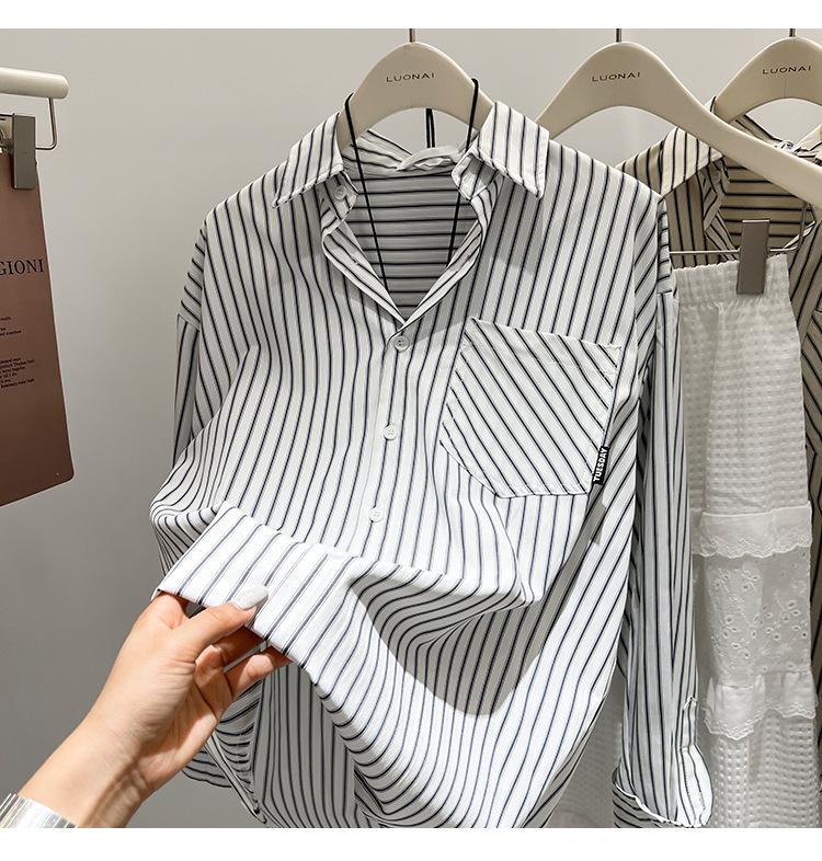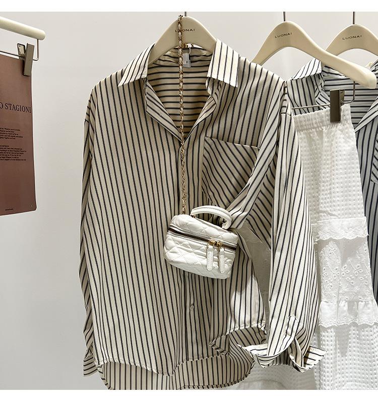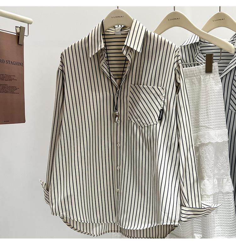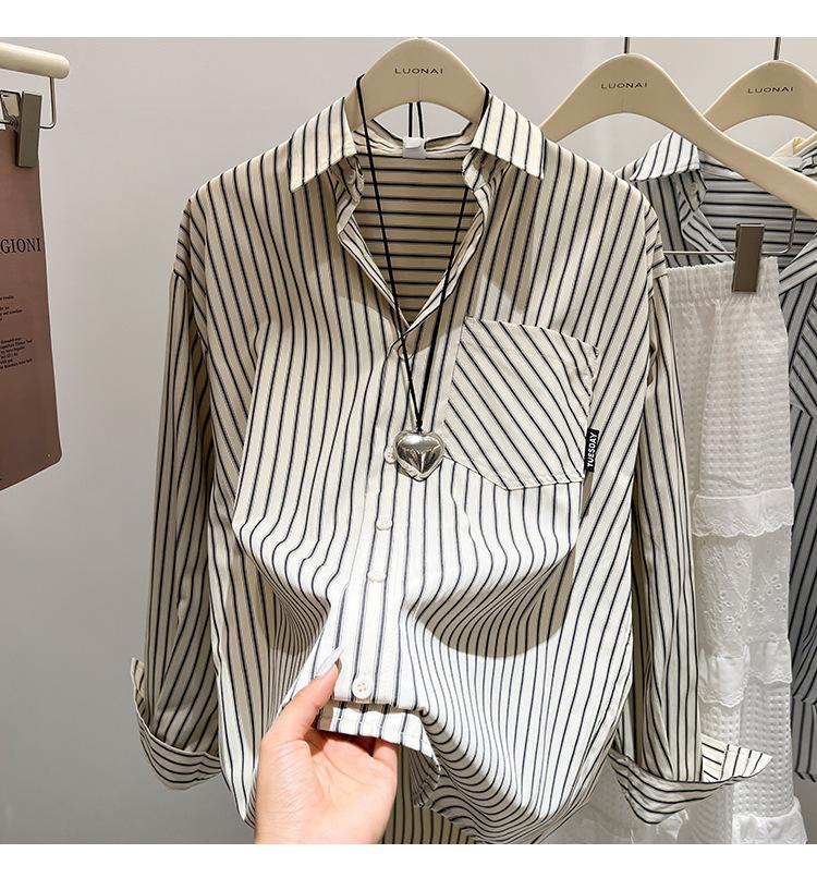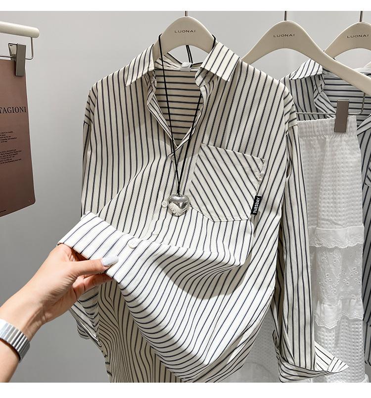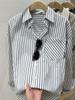 Camisa a rayas para mujer, primavera y otoño 2024, nuevo diseño, camisa de nicho, informal, holgada, de manga larga
