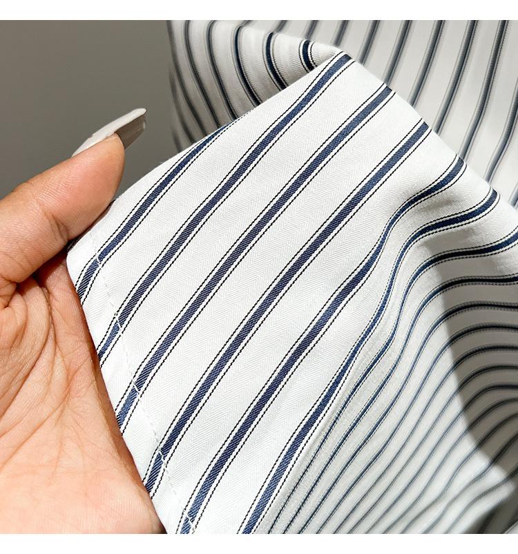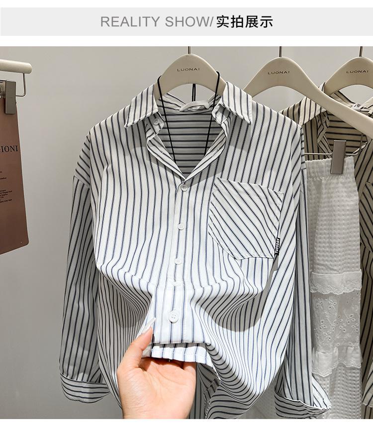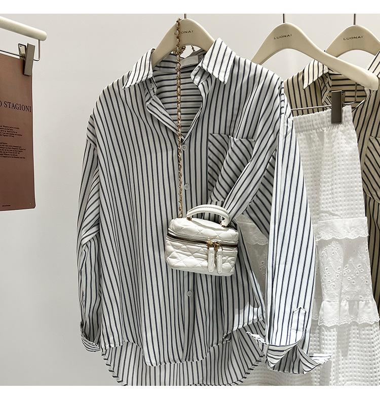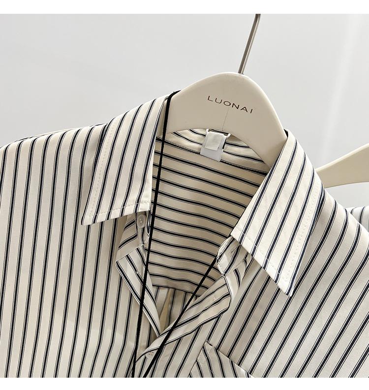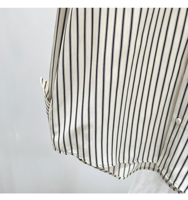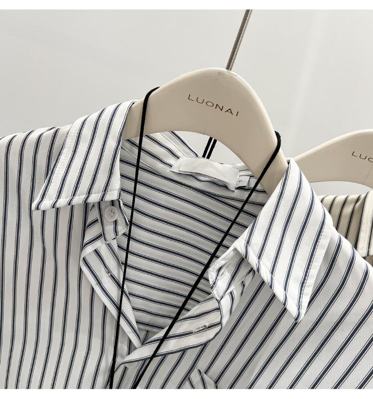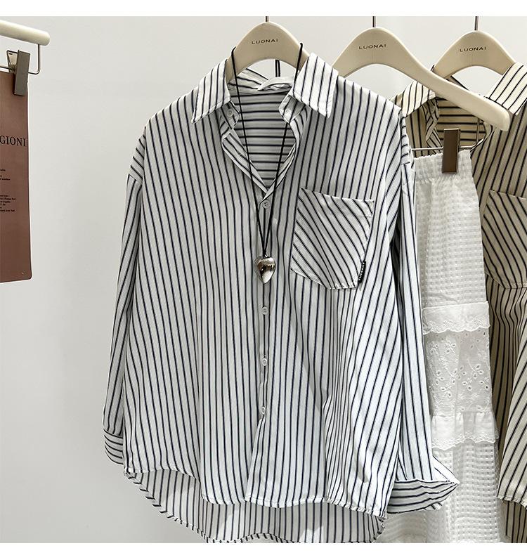 Camisa a rayas para mujer, primavera y otoño 2024, nuevo diseño, camisa de nicho, informal, holgada, de manga larga