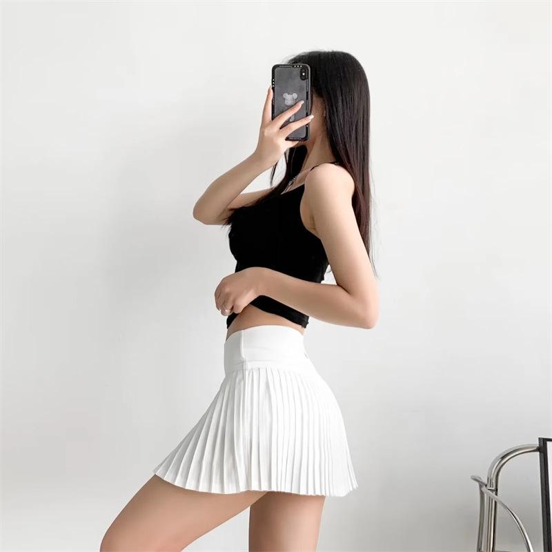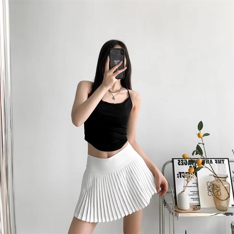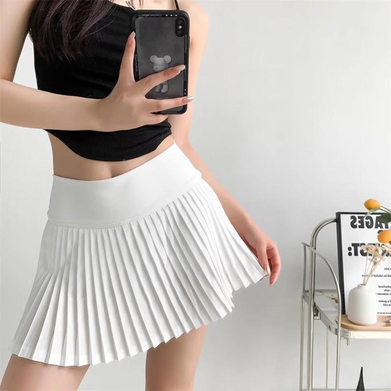 Falda plisada de cintura alta con costuras en forma de A para mujer, pantalones de verano versátiles e informales para deportes, yoga y fitness, antiexposición