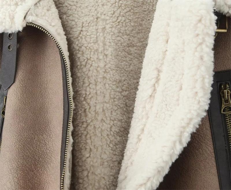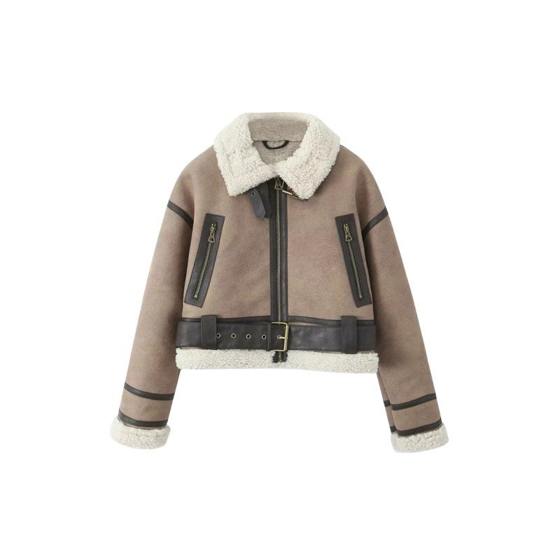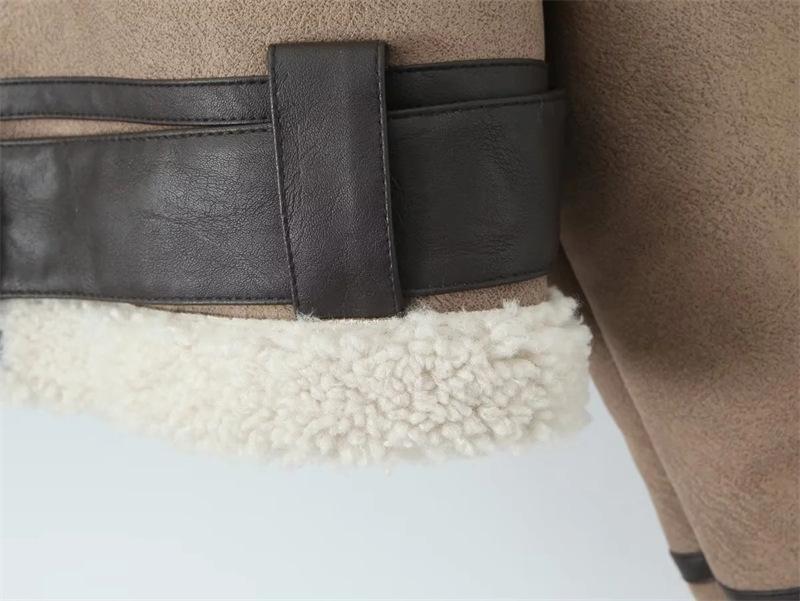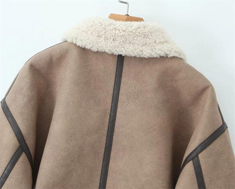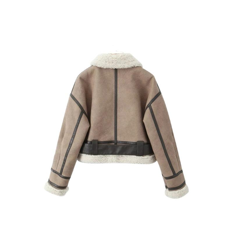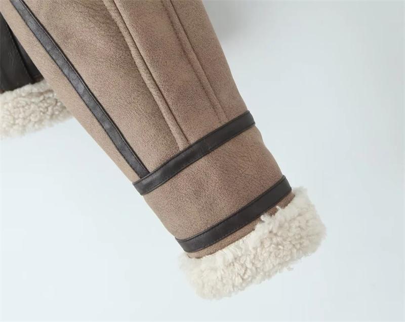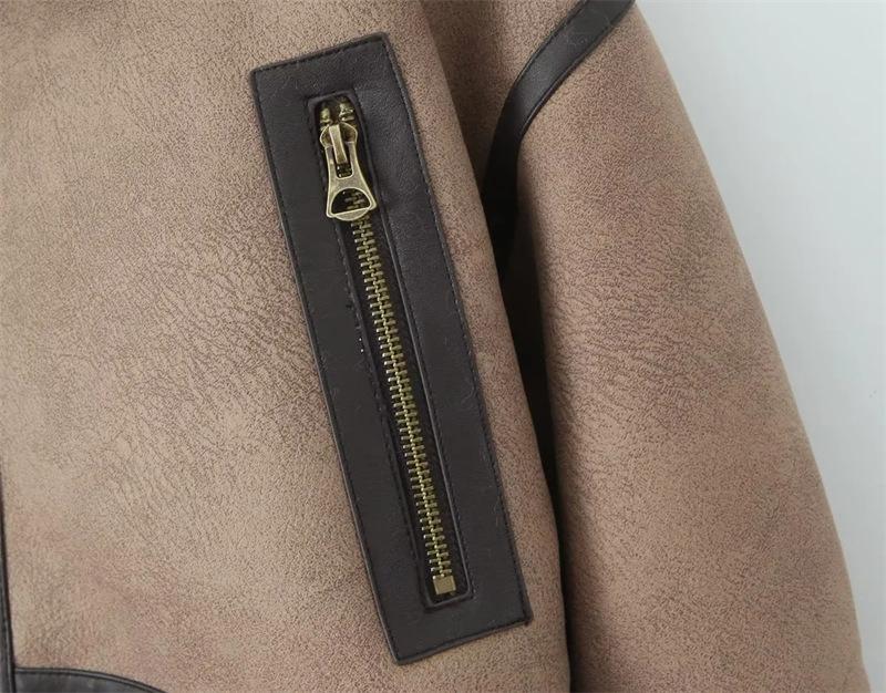 Chaqueta de piel sintética de otoño e invierno para mujer, estilo retro, estilo motero, corta, gruesa y cálida.