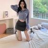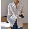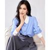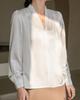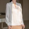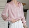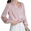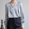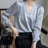 Camisa de manga larga ajustada de satén con cuello en V y costuras plisadas de estilo coreano para mujer, primavera y otoño de 2024