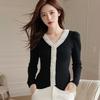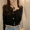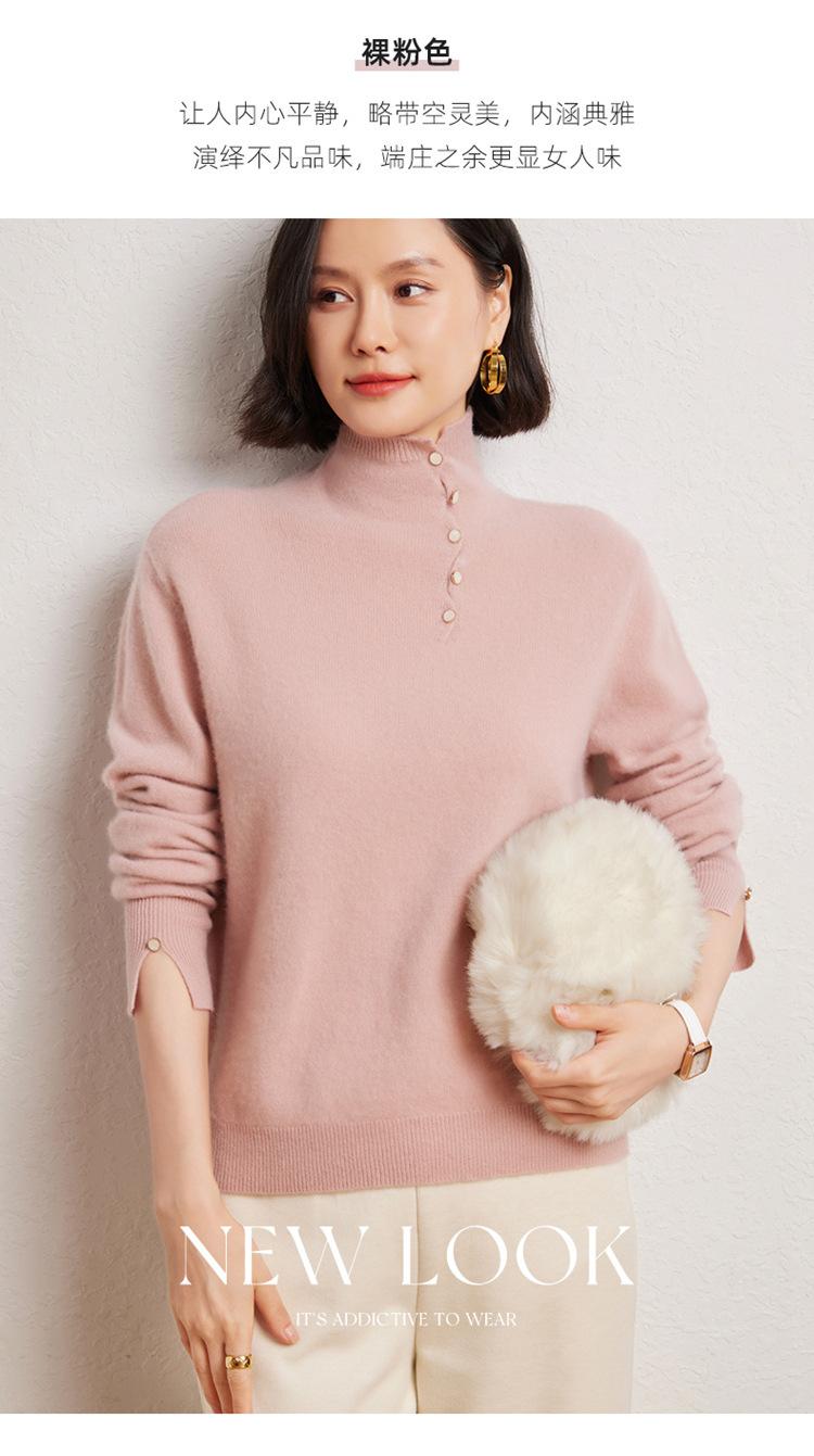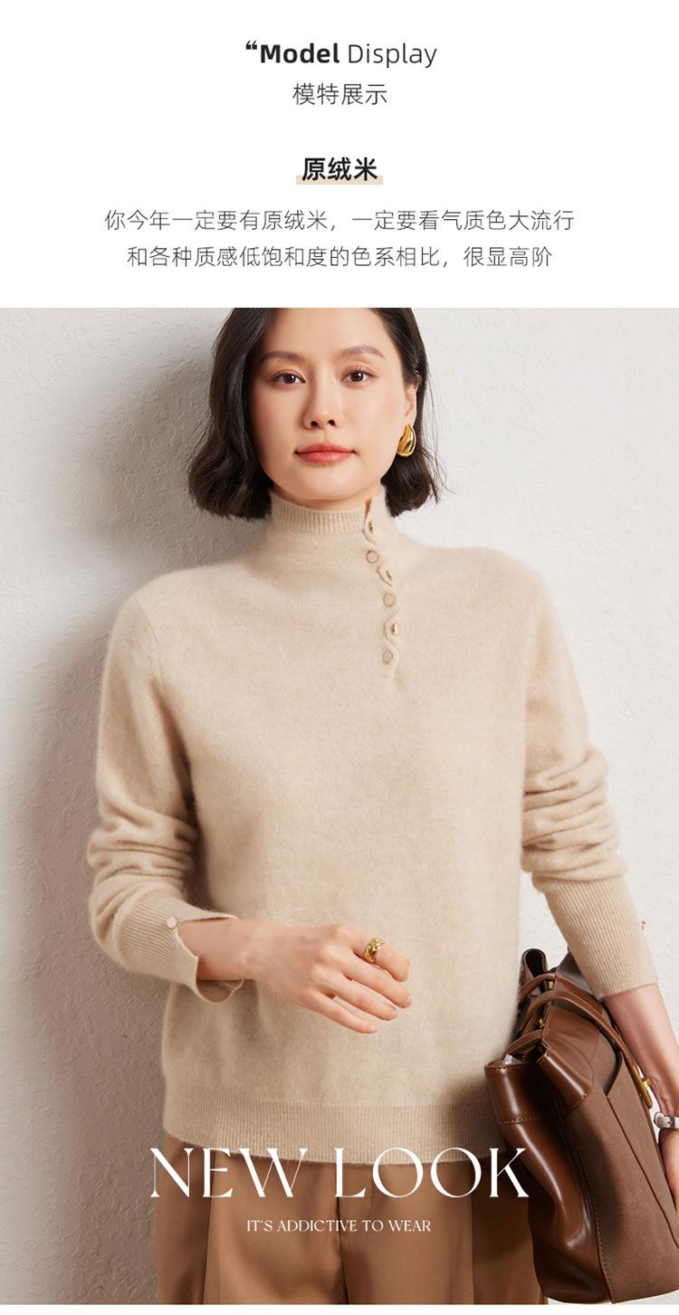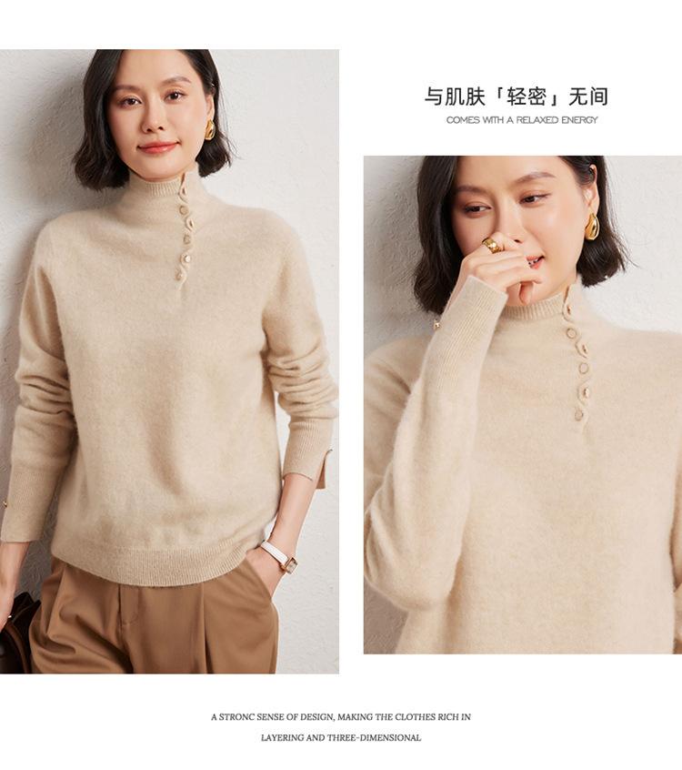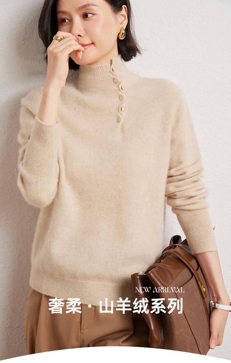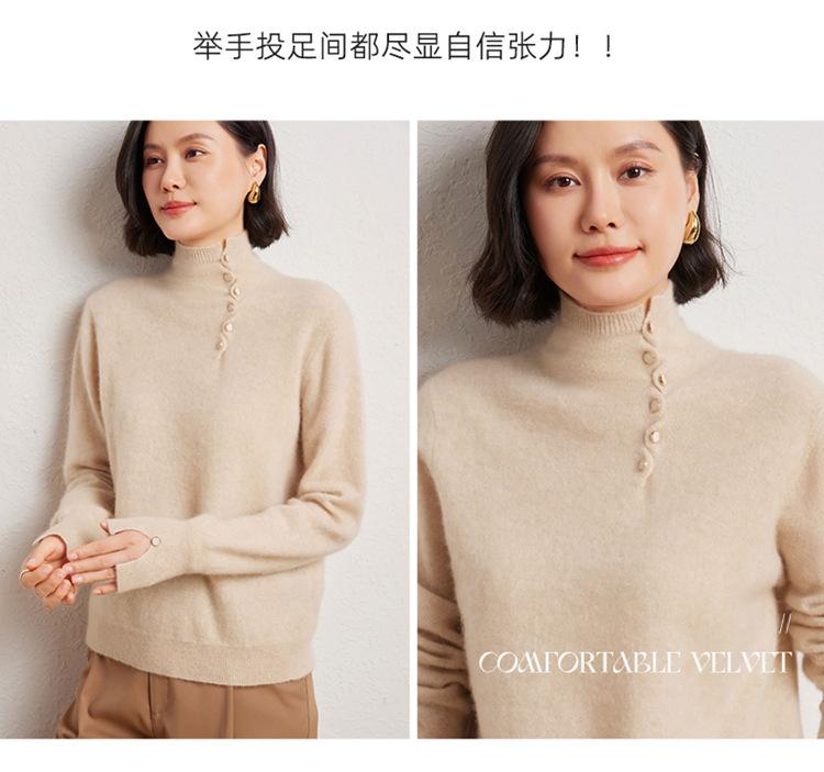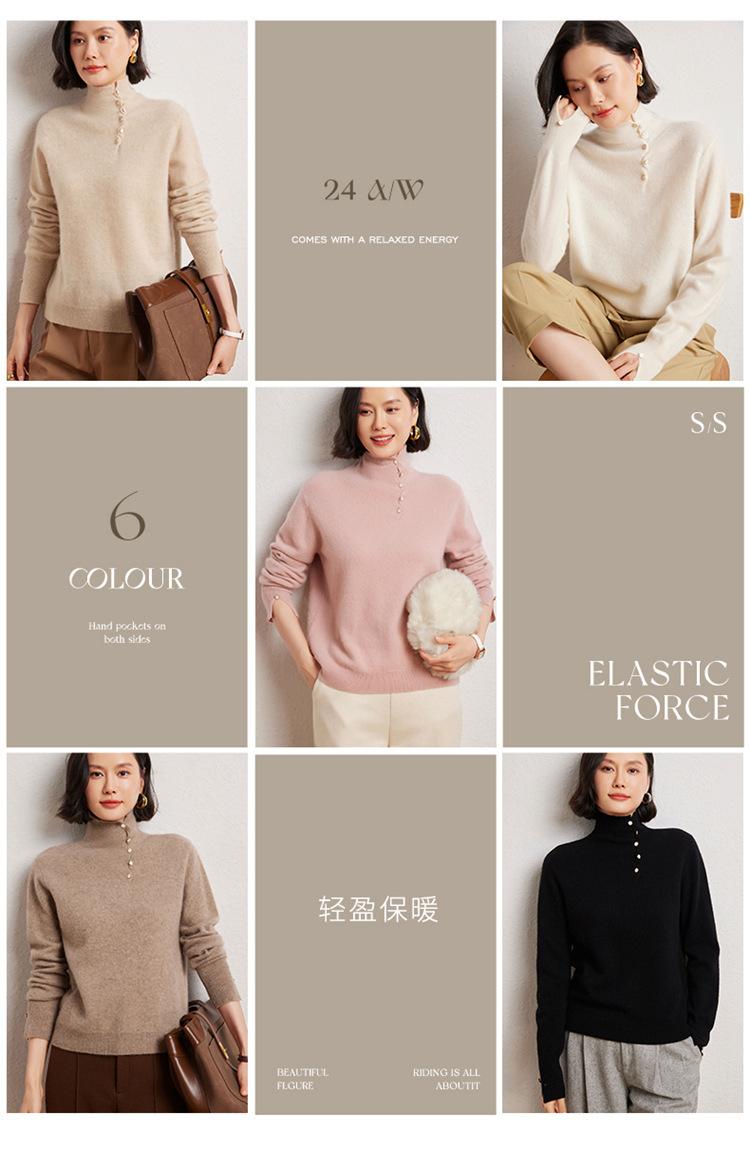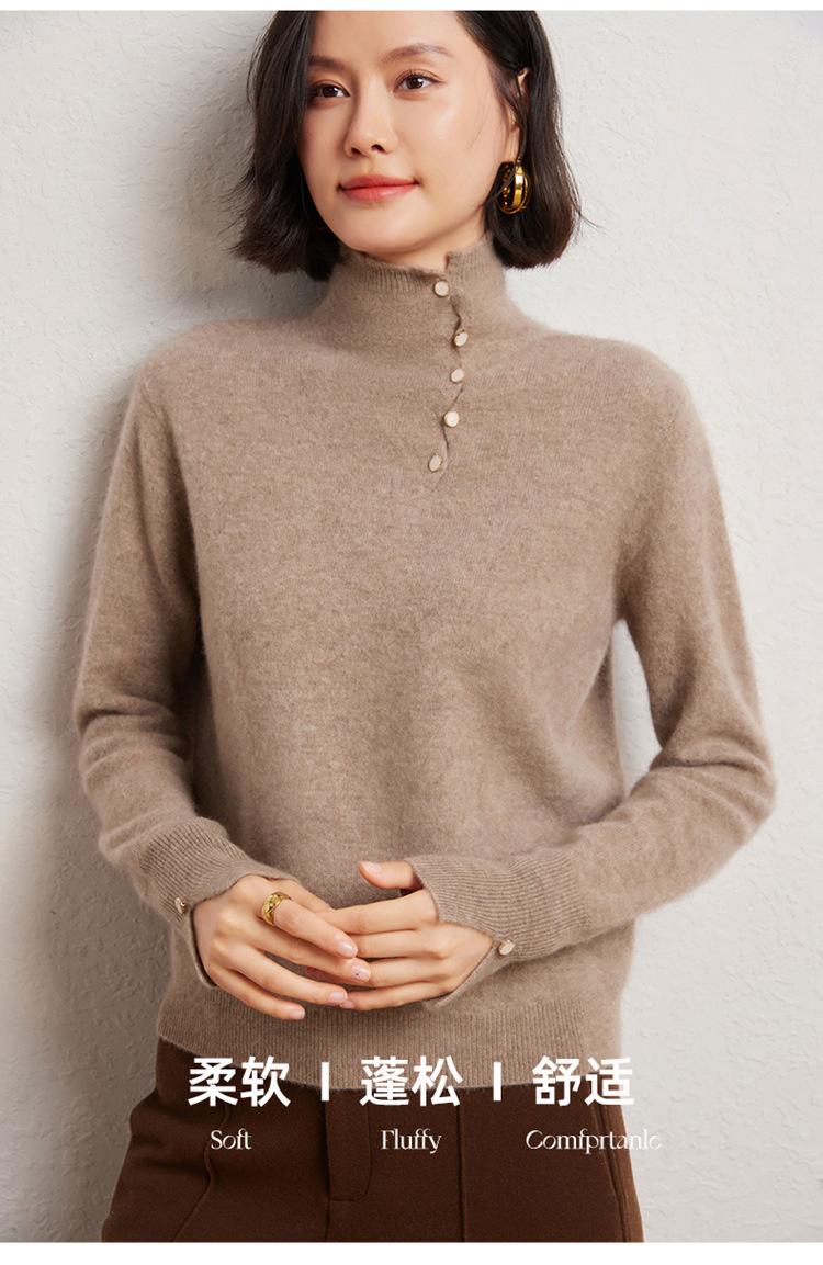 Suéter de cachemira de alta gama para mujer, suéter de manga larga suave y encerado, con botones y cuello alto, para otoño