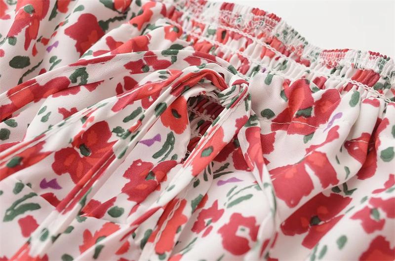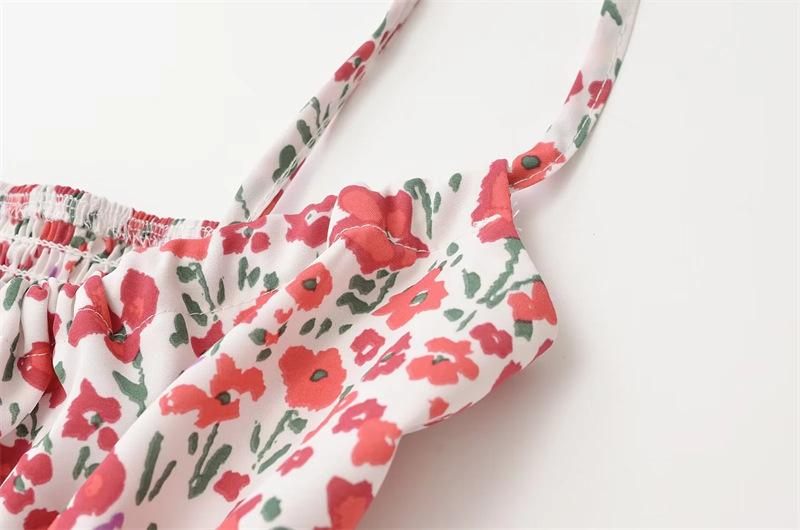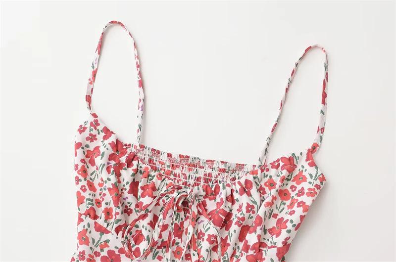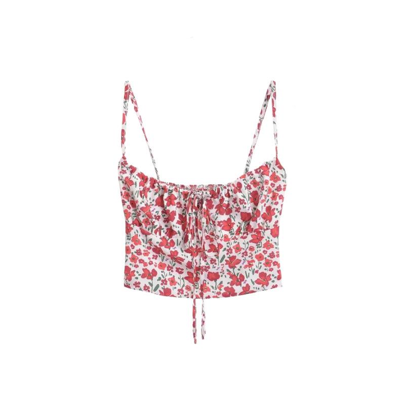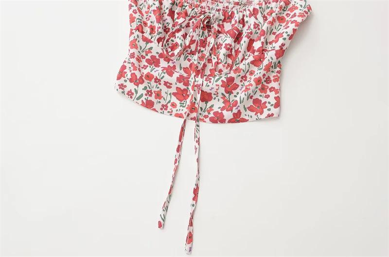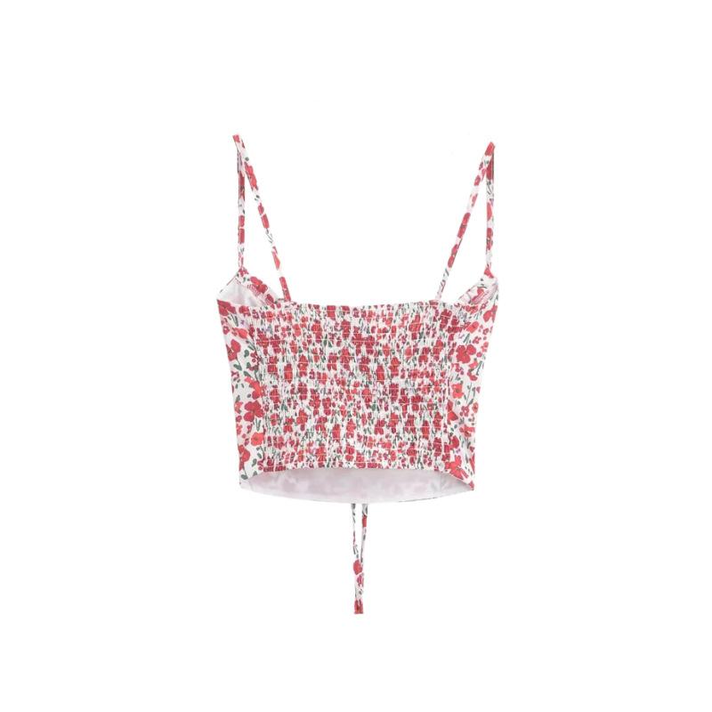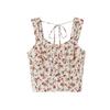 Camisola floral dulce para niña, con cordón ajustable en el pecho y espalda con cordones, semielástica, corte entallado, corta, para vacaciones
