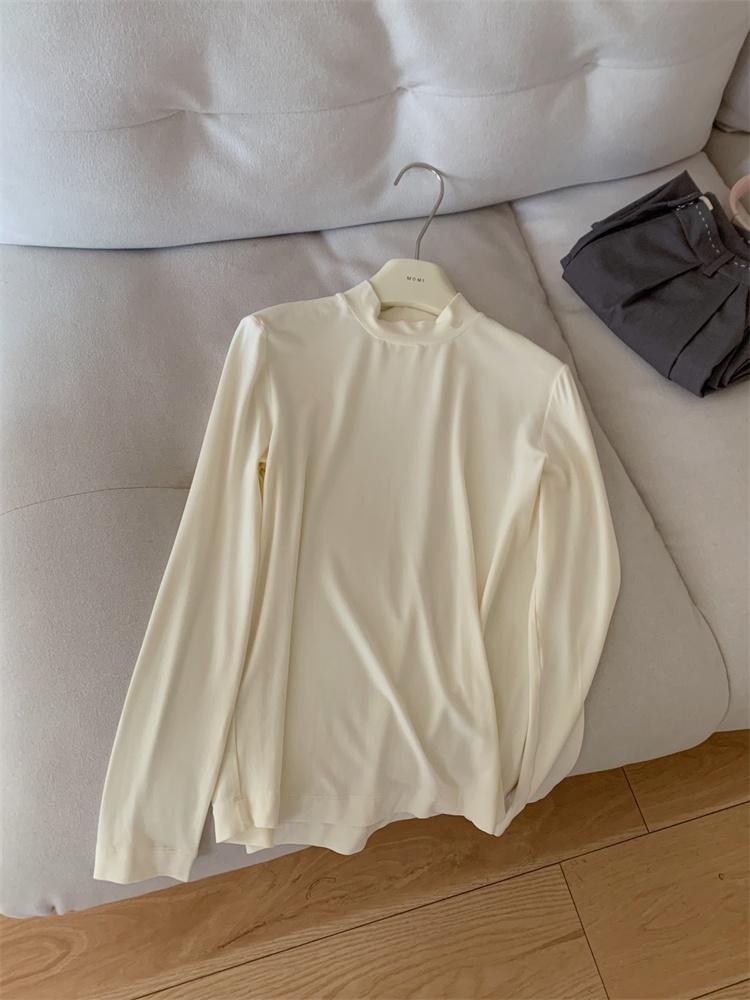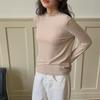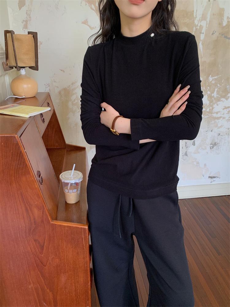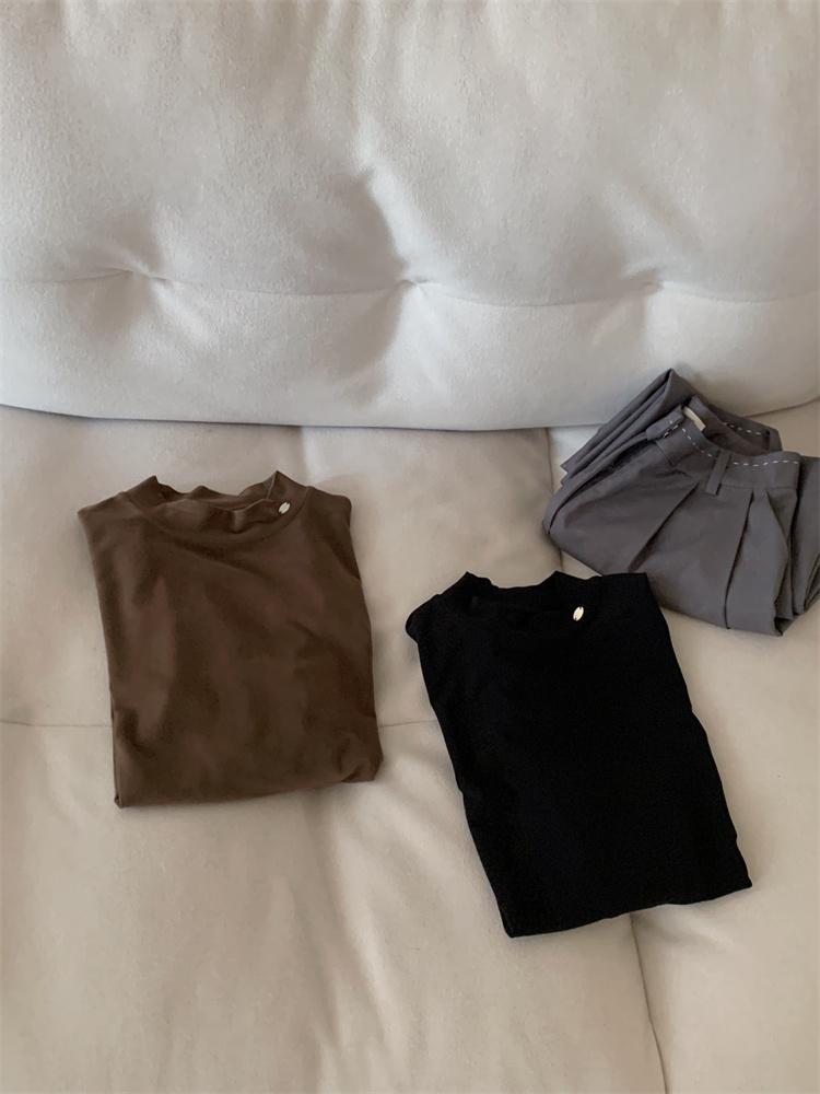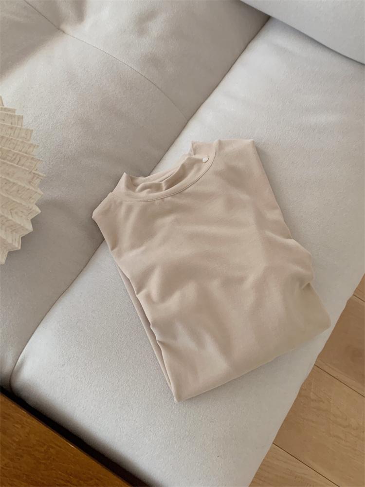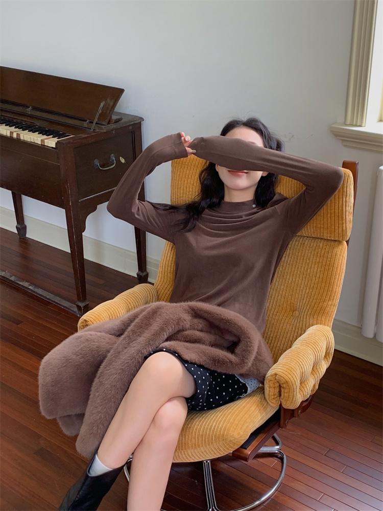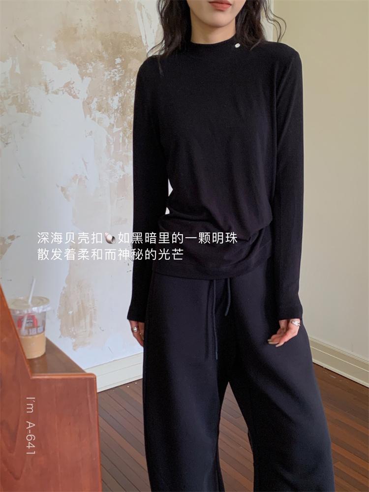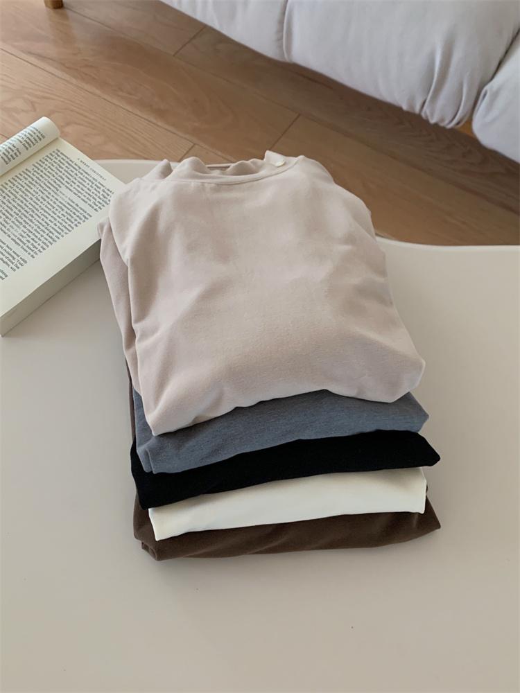 Du Xiaozhai Sencilla y Moderna Camiseta de Manga Larga de Terciopelo Micro de Cuello Medio Alto con Hebilla de Concha para Mujer Otoño/Invierno Capa Base Interior Apilada