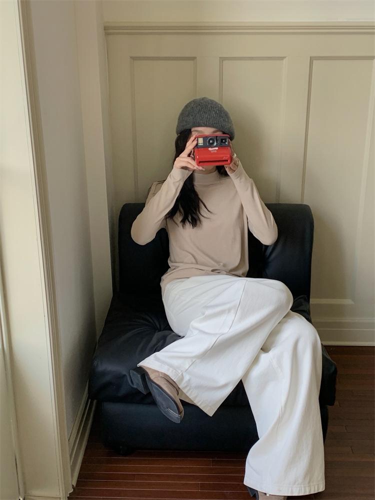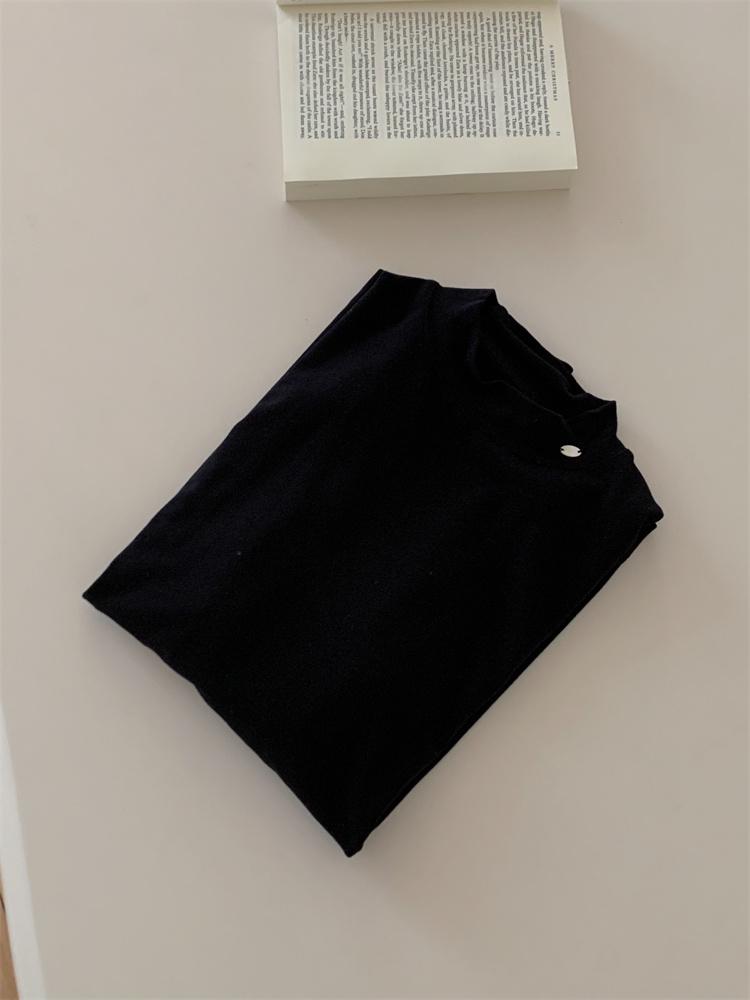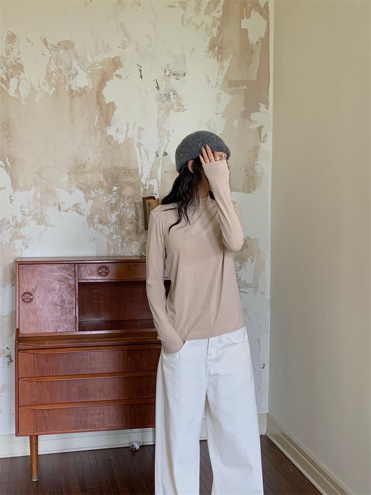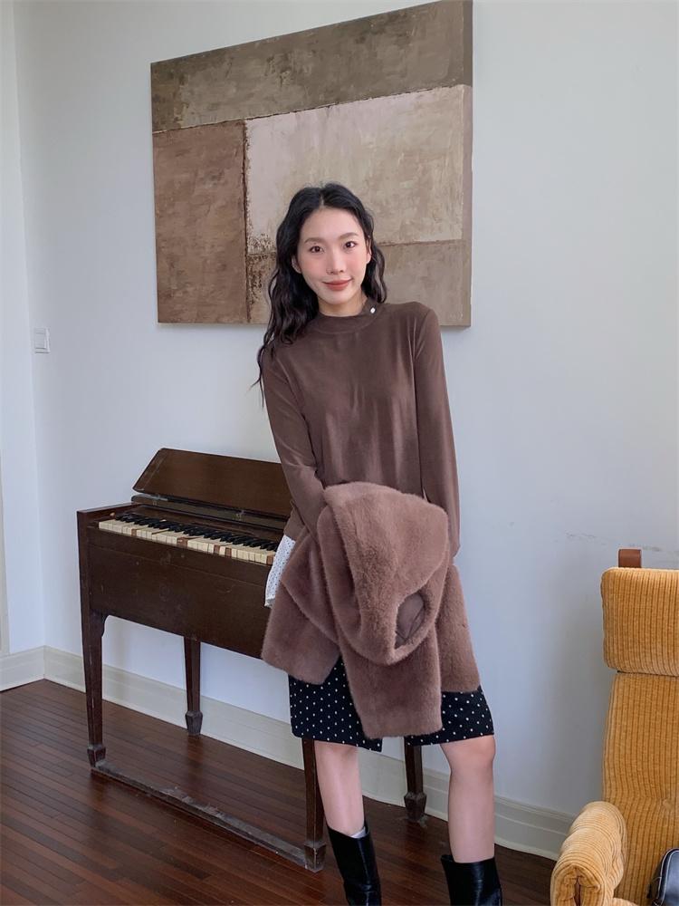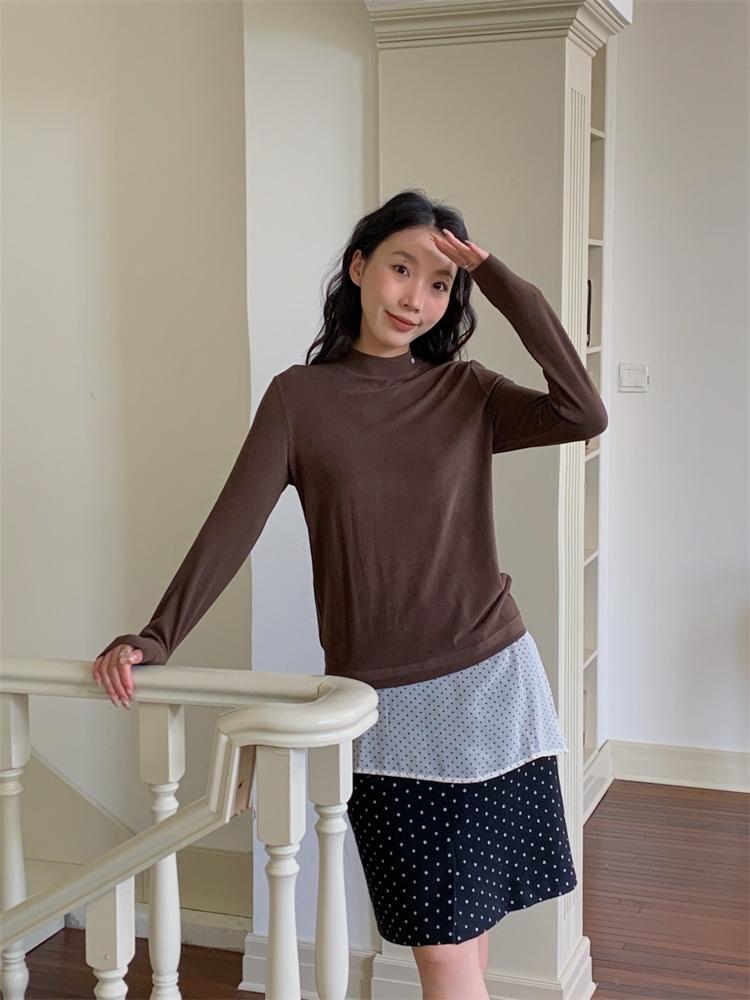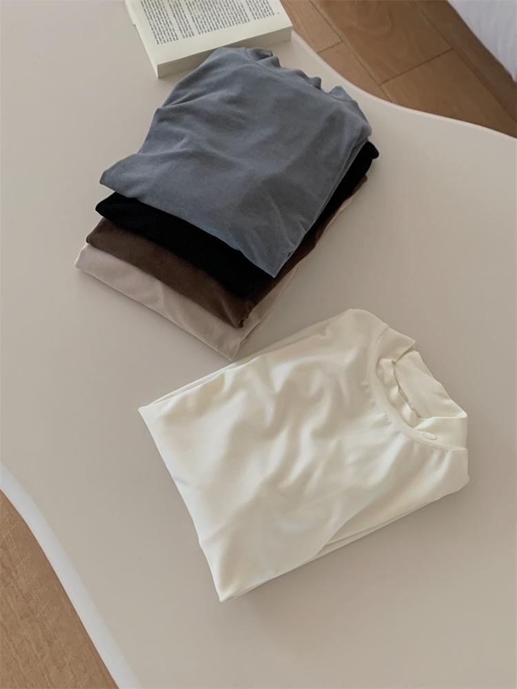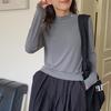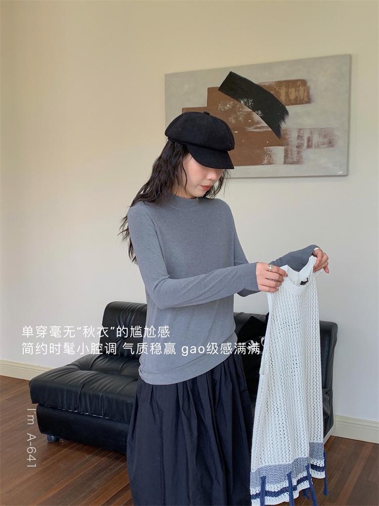 Du Xiaozhai Sencilla y Moderna Camiseta de Manga Larga de Terciopelo Micro de Cuello Medio Alto con Hebilla de Concha para Mujer Otoño/Invierno Capa Base Interior Apilada