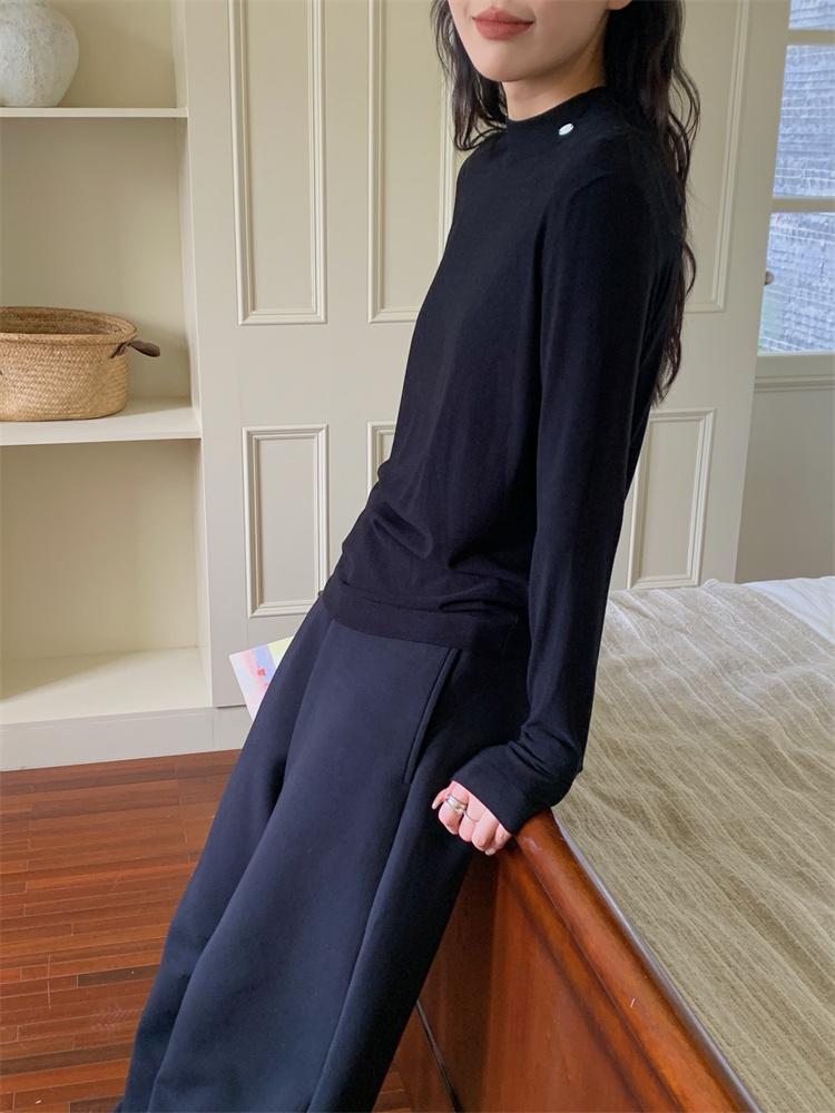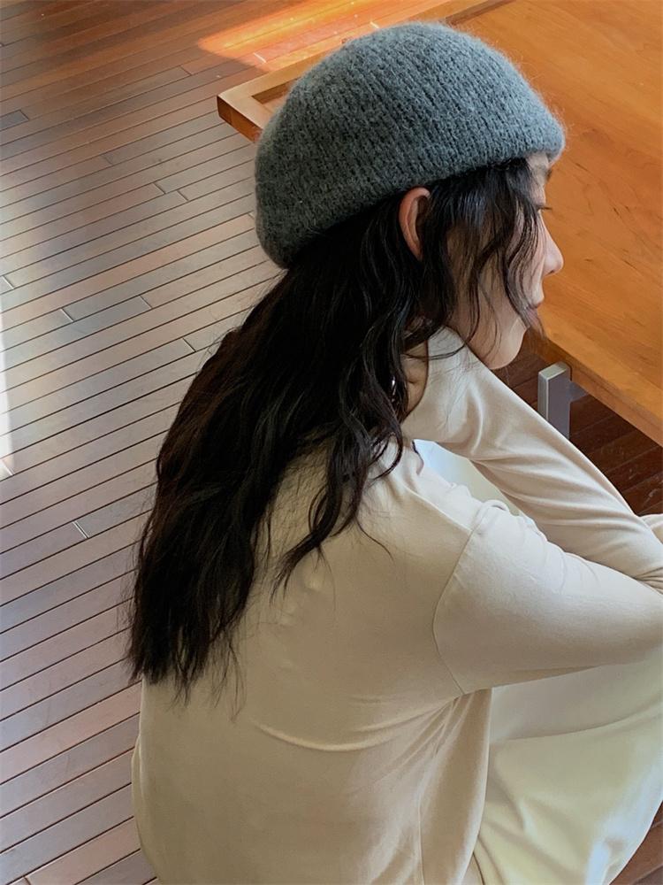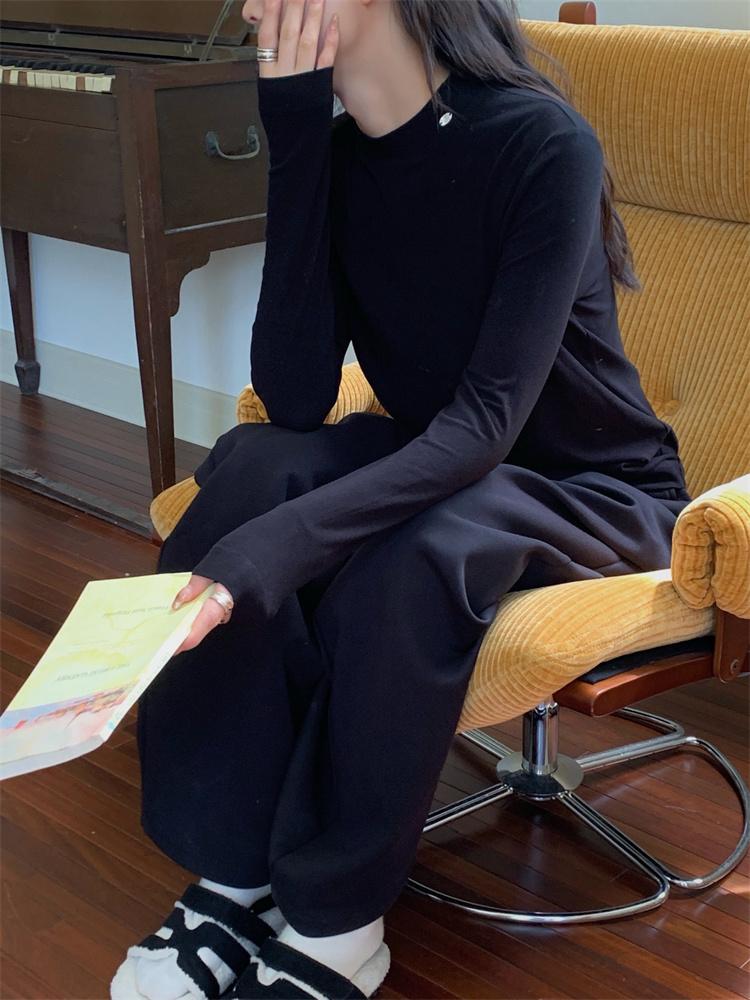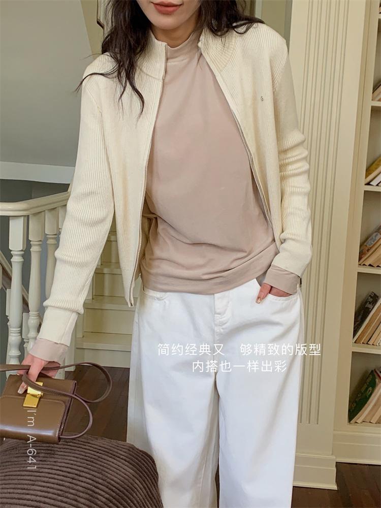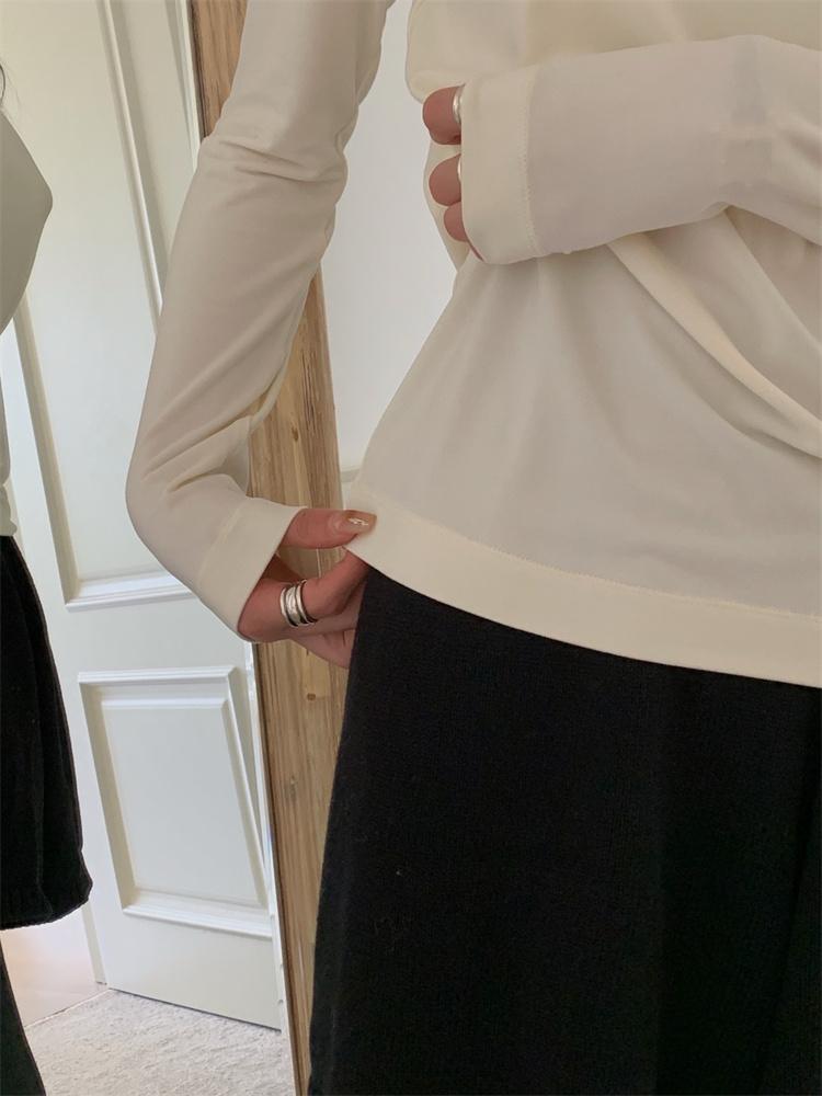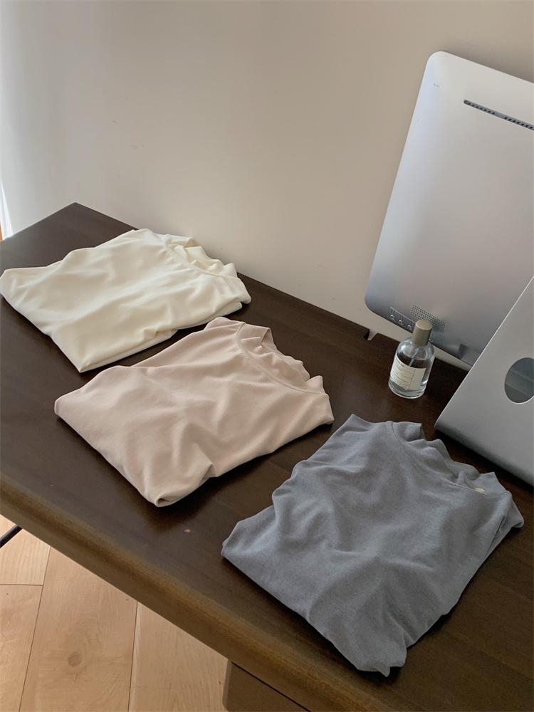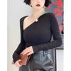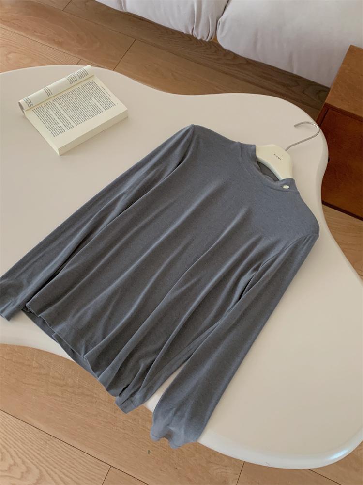 Du Xiaozhai Sencilla y Moderna Camiseta de Manga Larga de Terciopelo Micro de Cuello Medio Alto con Hebilla de Concha para Mujer Otoño/Invierno Capa Base Interior Apilada