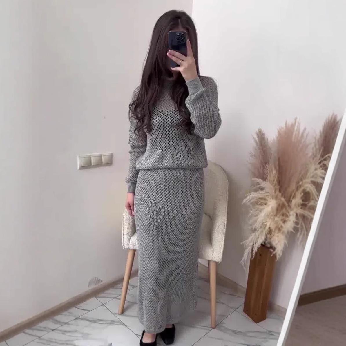 Otoño 2024 Nuevo Europeo y Americano Transfronterizo Amazon Transfronterizo Diseño Hueco de Deseo Puro Vestido Ajustado Conjunto de Dos Piezas