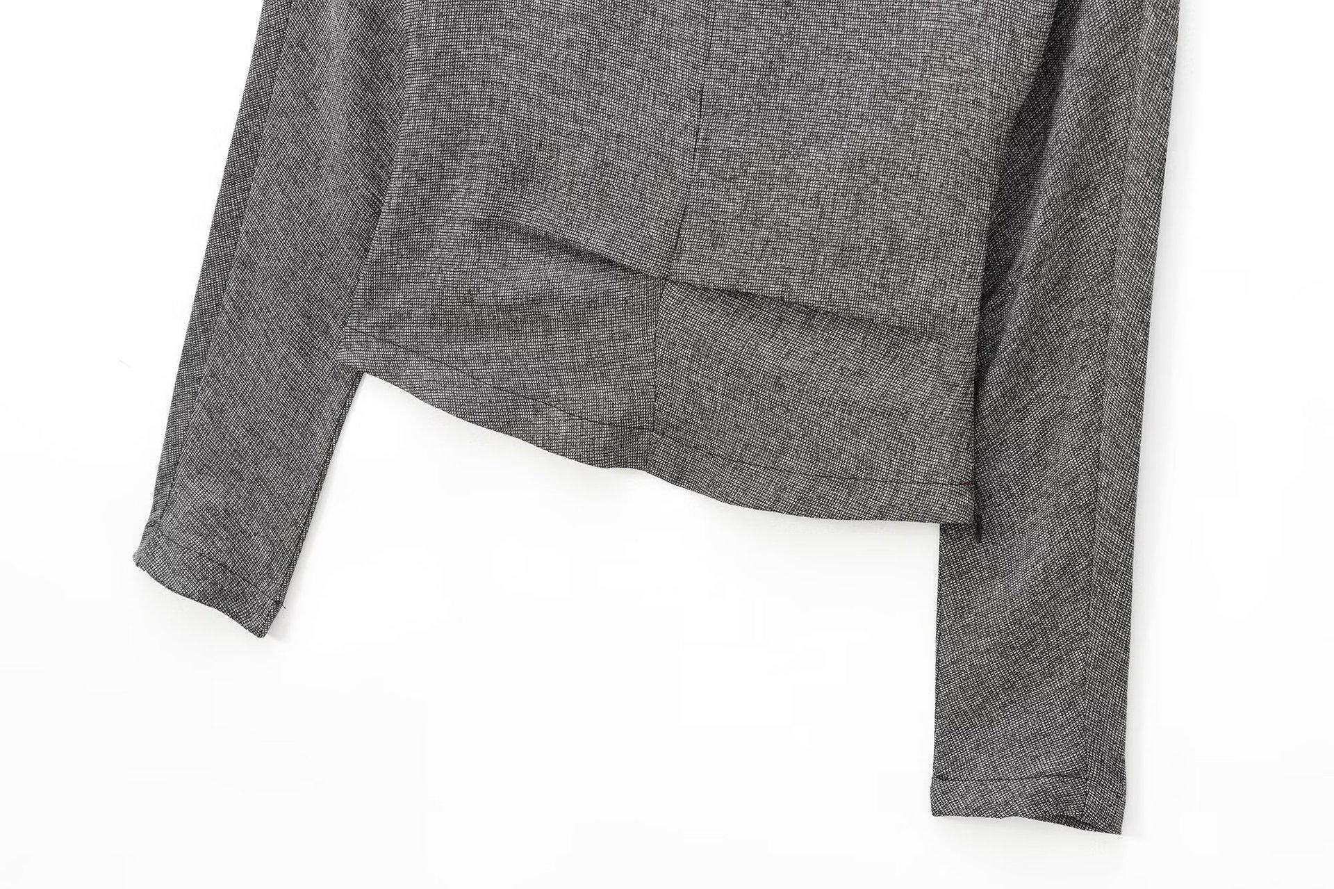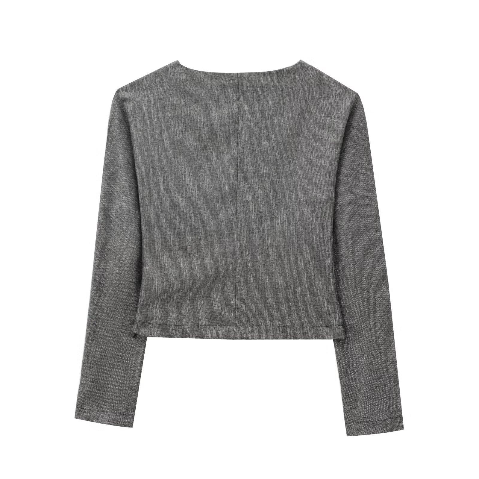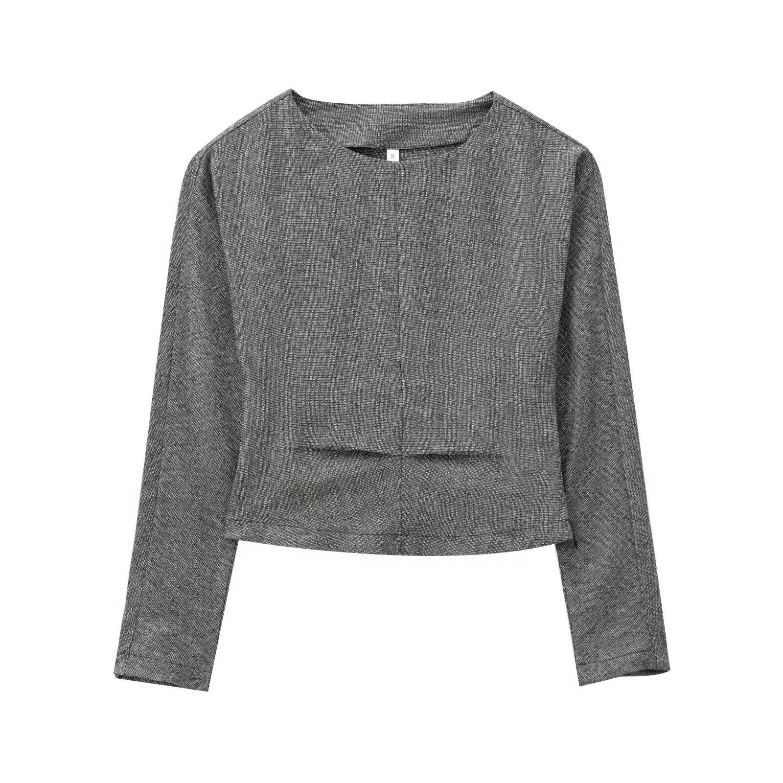 Moda Otoño 2024 Nuevo Joker Sencillo Gris Plisado Decorativo Top Transfronterizo Amazon Ropa de Mujer M56944