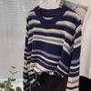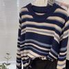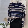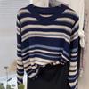 Suéter de punto de manga larga a rayas con contraste de color de alta gama y cuello redondo vintage europeo para mujer, otoño e invierno 2024, nuevo top suelto