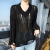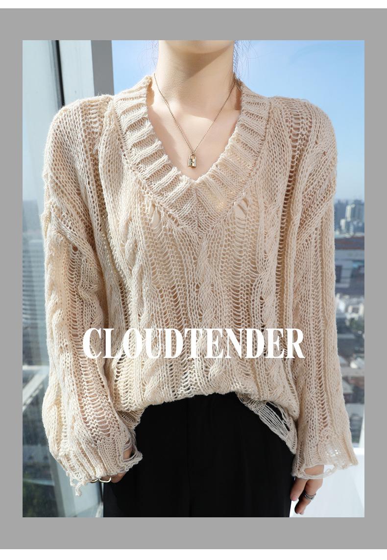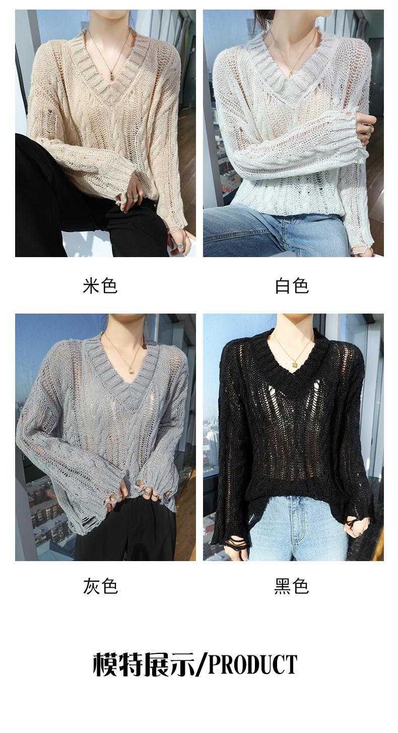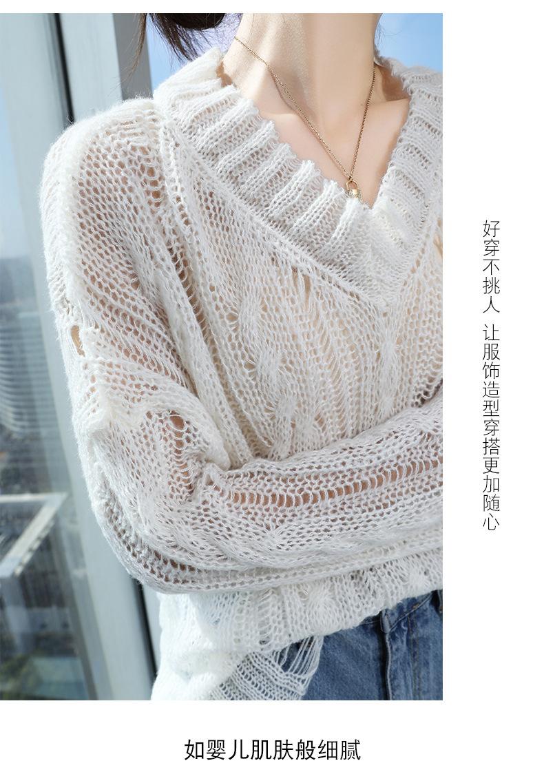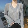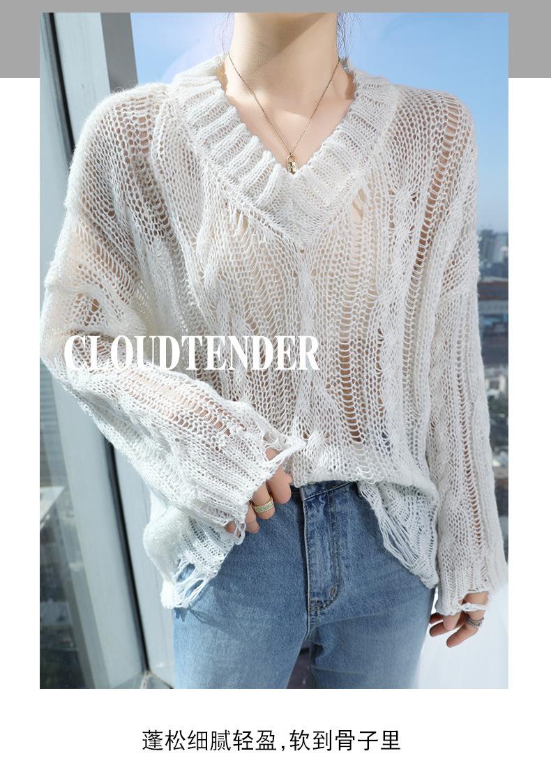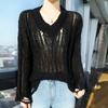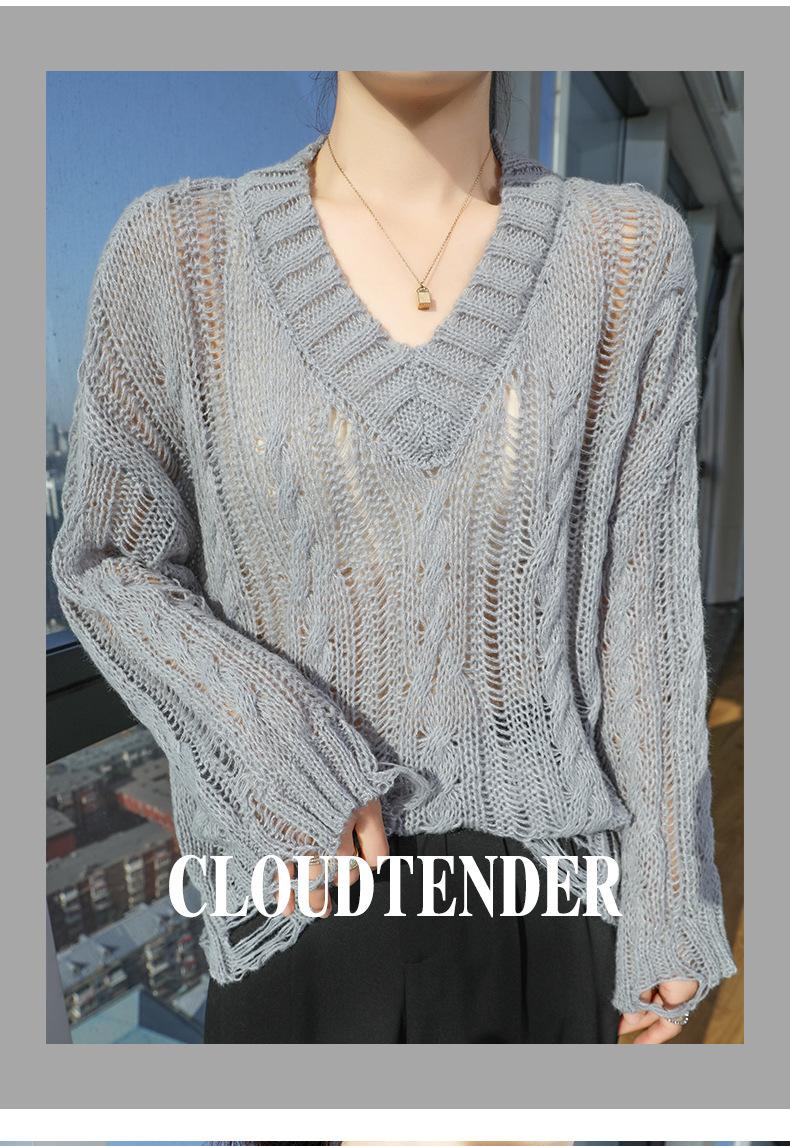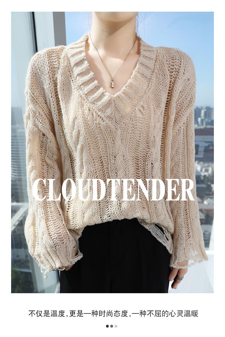Otoño 2024 Nuevo Suéter de Color Sólido con Cuello en V de Alta Gama de Manga Larga Calado Jersey Holgado Adelgazante para Mujer