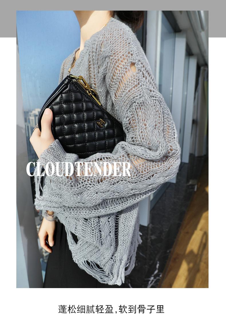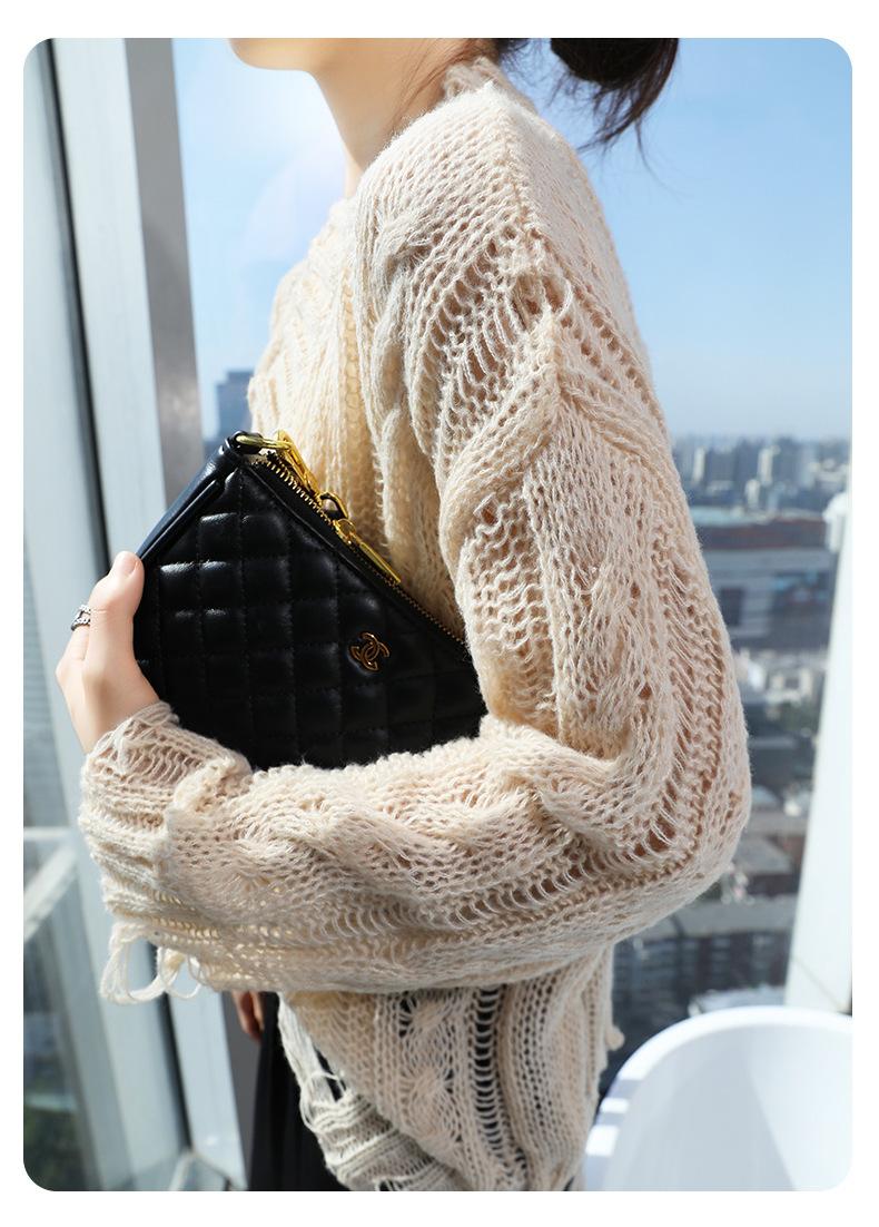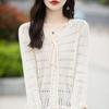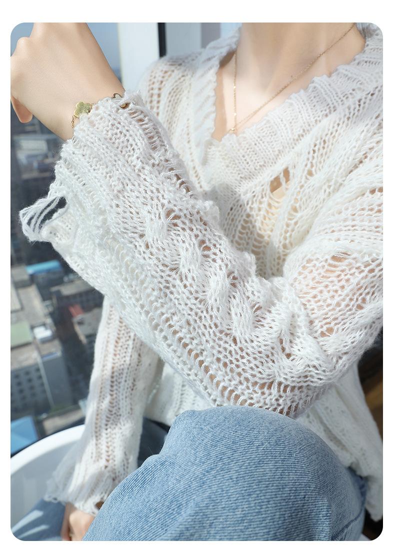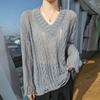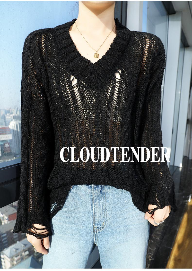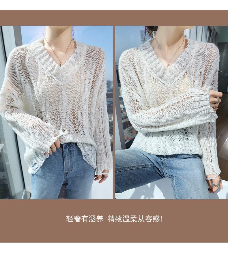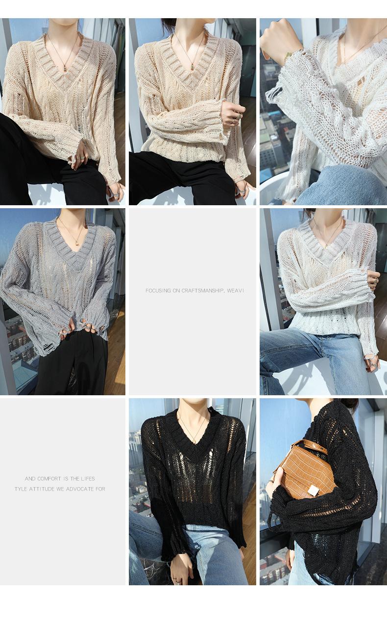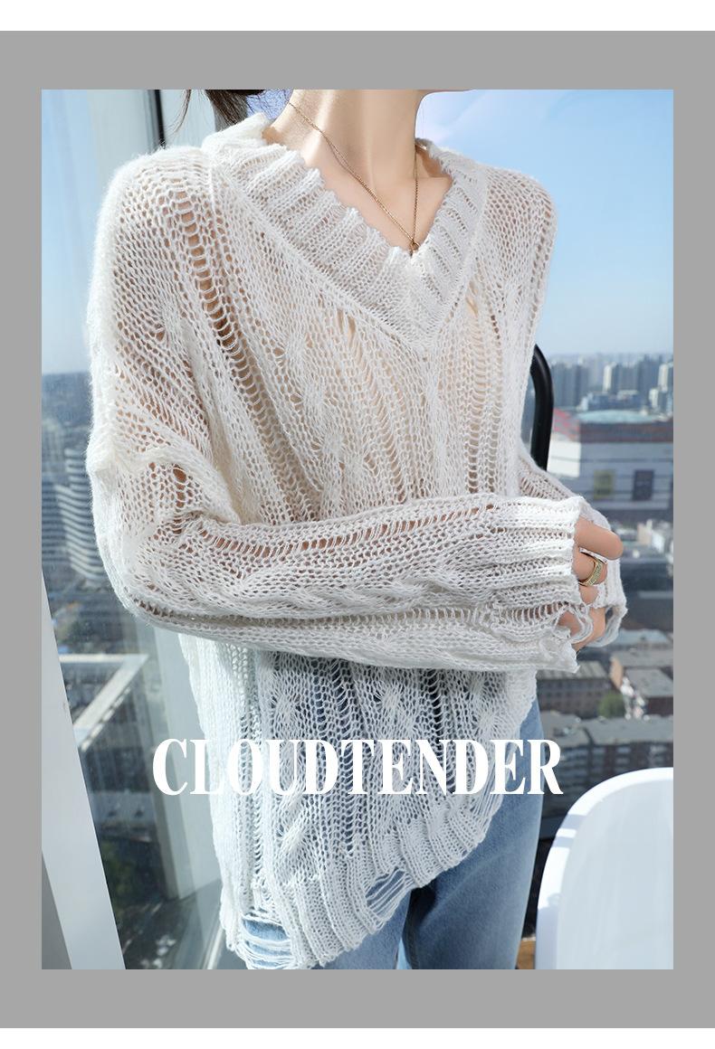 Otoño 2024 Nuevo Suéter de Color Sólido con Cuello en V de Alta Gama de Manga Larga Calado Jersey Holgado Adelgazante para Mujer