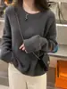 Suéter de Cachemira de Cuello Redondo Grueso de Hombro Estilo Perezoso para Mujer Otoño e Invierno Suelto Combinable Suéter Corto Base Suéter de Lana