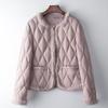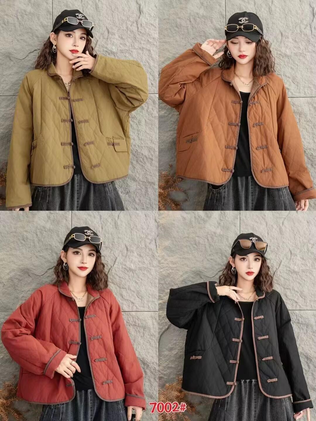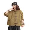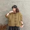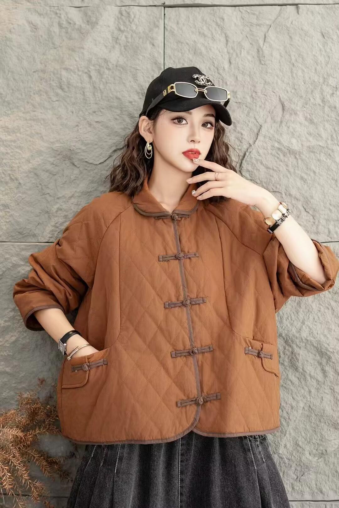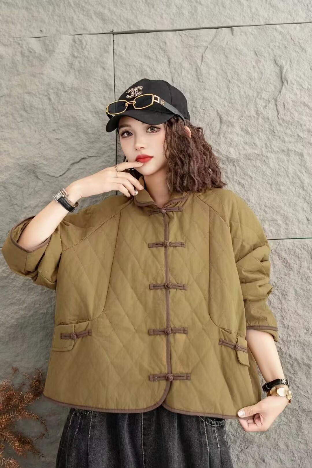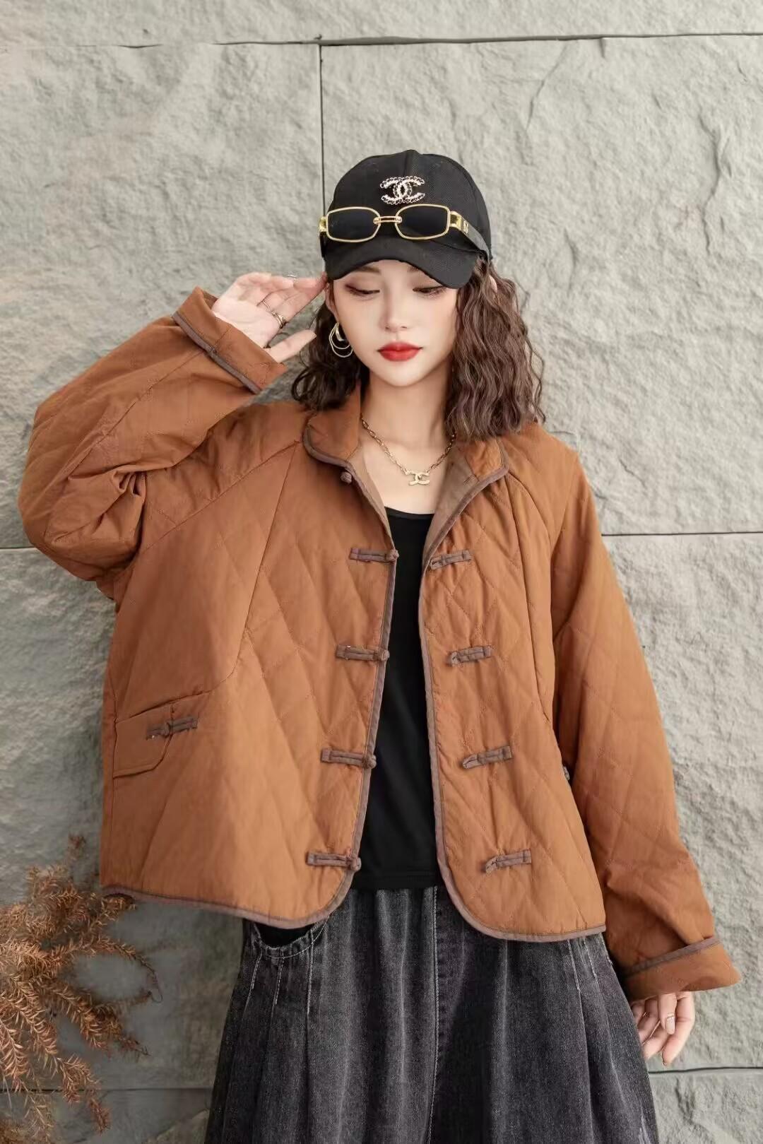 Abrigo acolchado de algodón con hebilla de placa rómbica en color de contraste para mujer, otoño e invierno 2024, nuevo abrigo retro holgado adelgazante de estilo chino combinable 7002