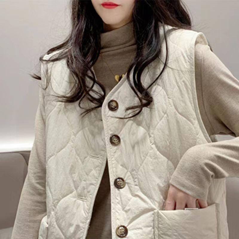 Nuevo Chaleco Acolchado de Algodón con Plumón de Lana de Cordero para Otoño e Invierno 2025 para Mujer, Cálido, Reversible, Casual