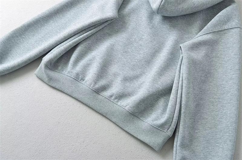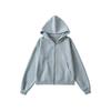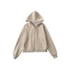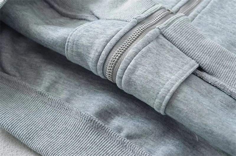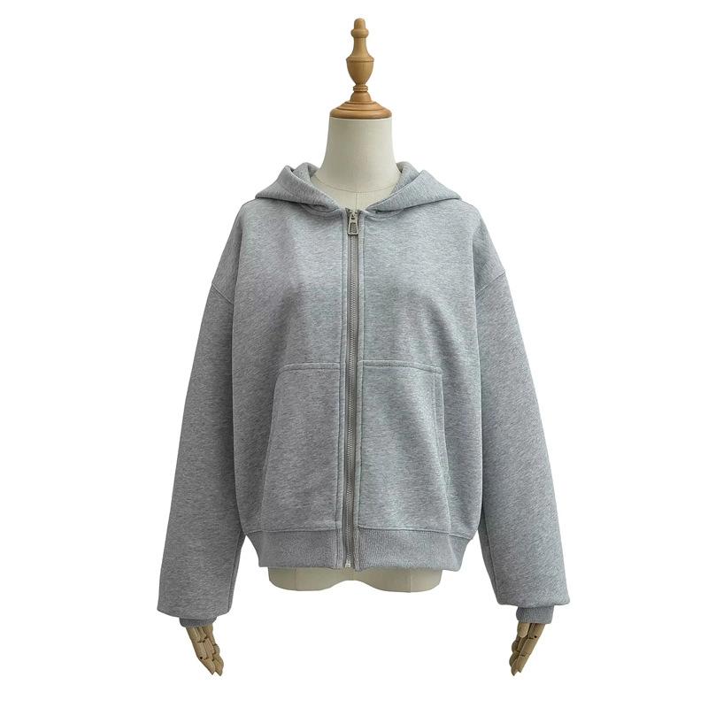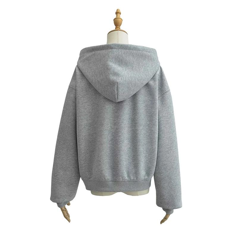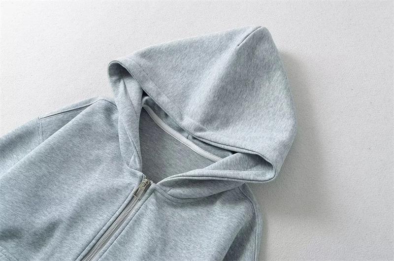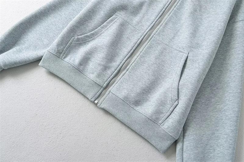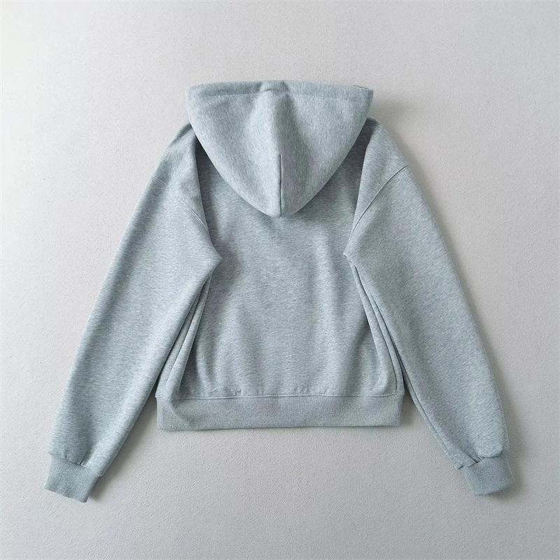 Suéter tipo cárdigan vintage con capucha y cremallera para mujer, estilo holgado e informal, con doble bolsillo y manga larga.