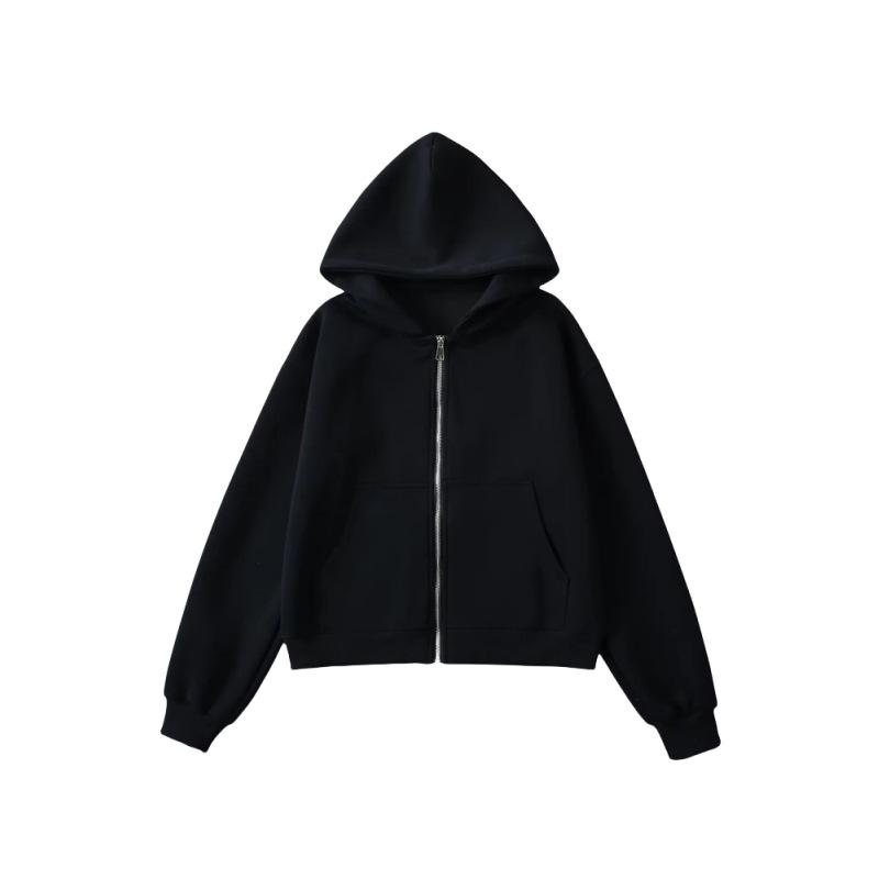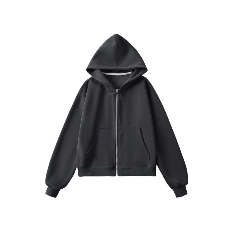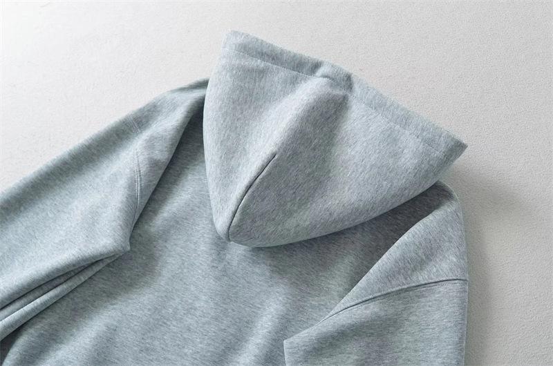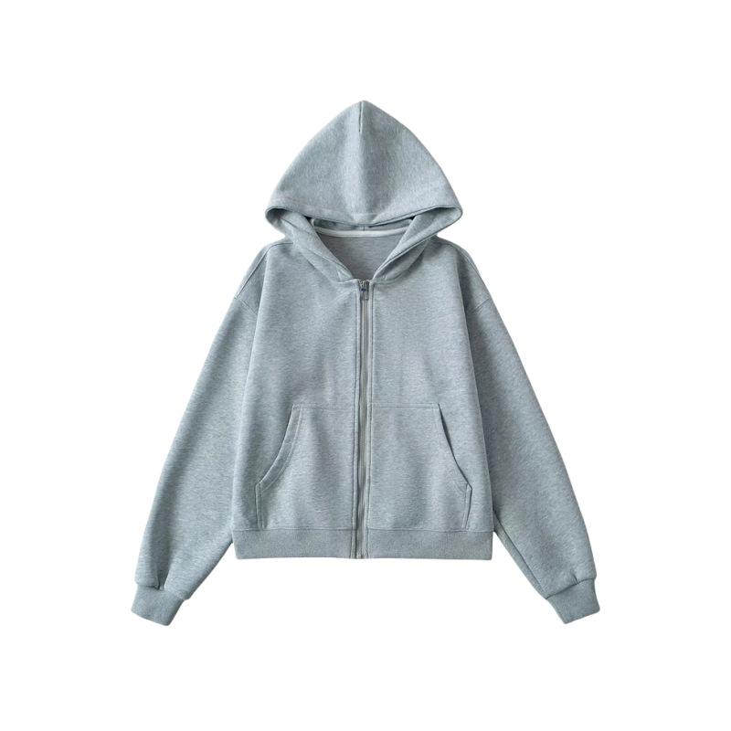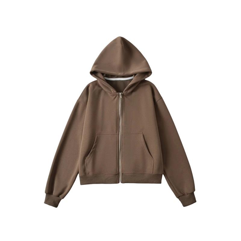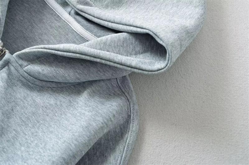 Suéter tipo cárdigan vintage con capucha y cremallera para mujer, estilo holgado e informal, con doble bolsillo y manga larga.