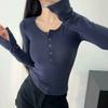 Camiseta básica de cuello alto para mujer, otoño e invierno, nueva, con hombreras, forro polar, manga larga, ajustada, cintura alta, corta.