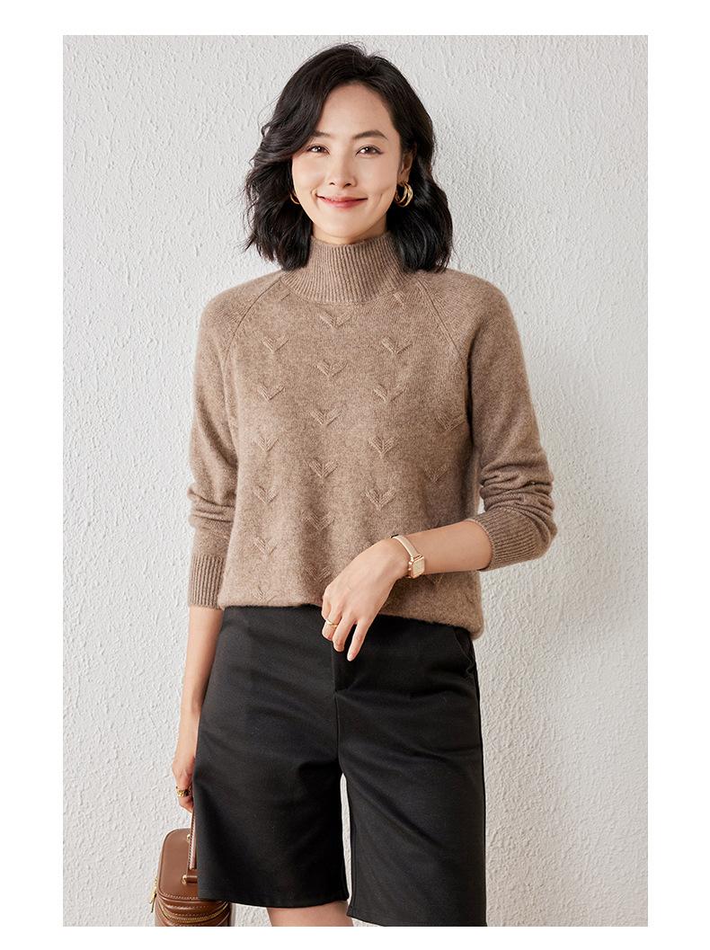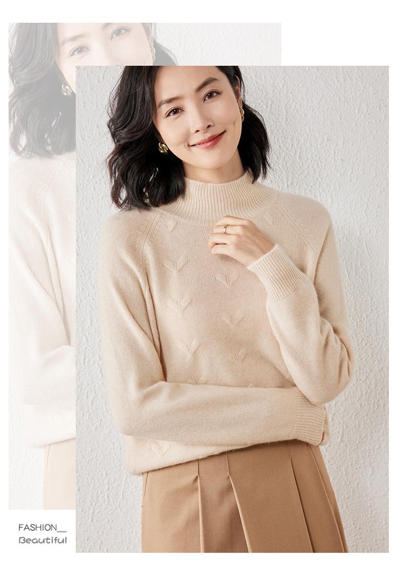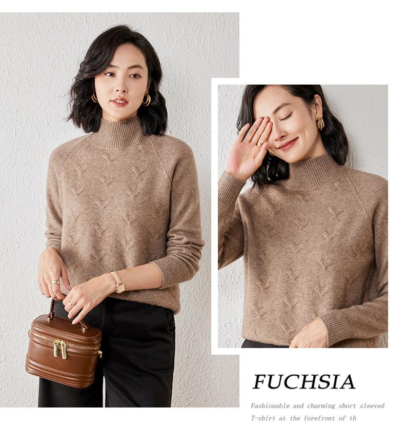 Suéter de cachemira para mujer, jersey de cuello medio alto, nueva moda, camisa de base de cachemira, suéter de punto corto grueso y cálido