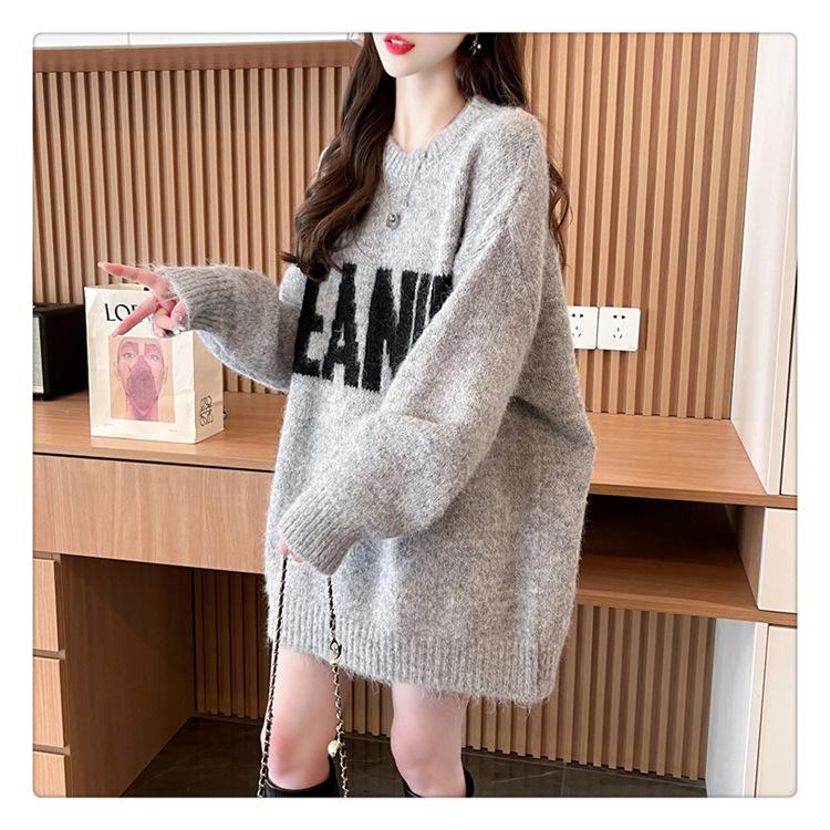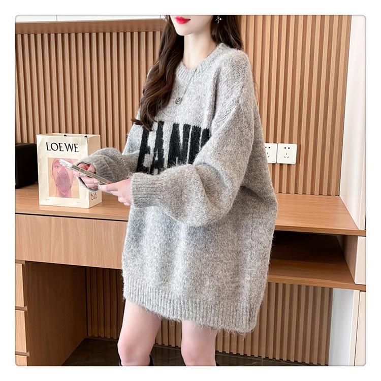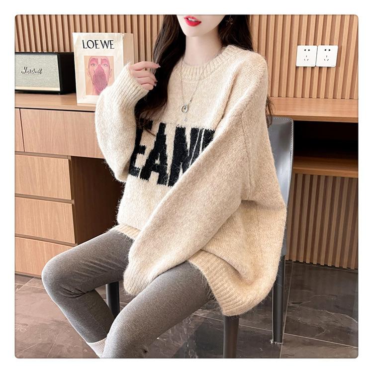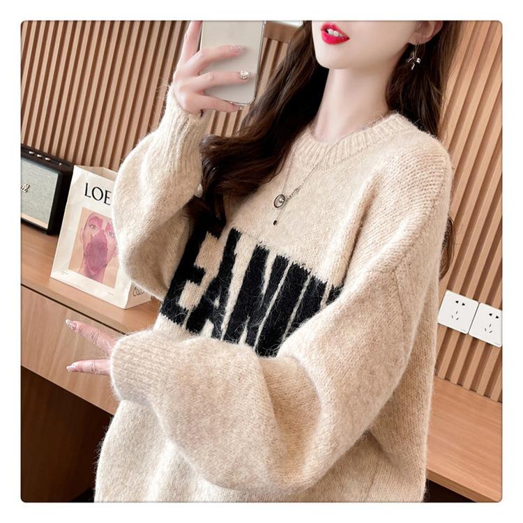 Suéter de punto holgado, ajustado, versátil y de estilo perezoso para mujer, otoño e invierno 2024, estilo occidental, súper bonito.