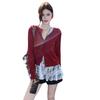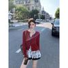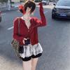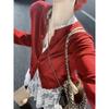 Cárdigan de Punto Rojo Suave y Encerado de Estilo Delicado para Mujer Primavera Nuevo Estilo Ropa Exterior Elegante Ajustado Suéter Chaqueta Top