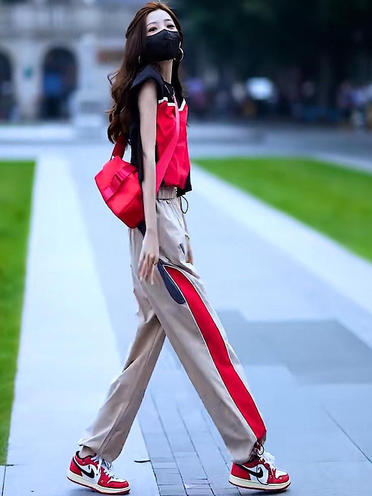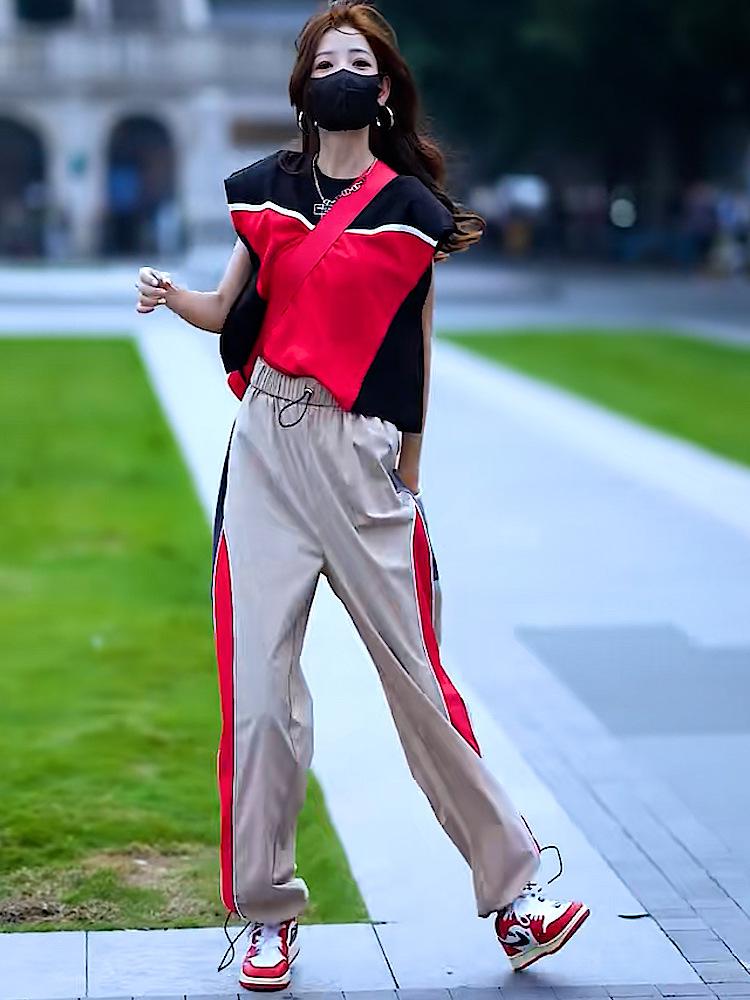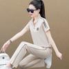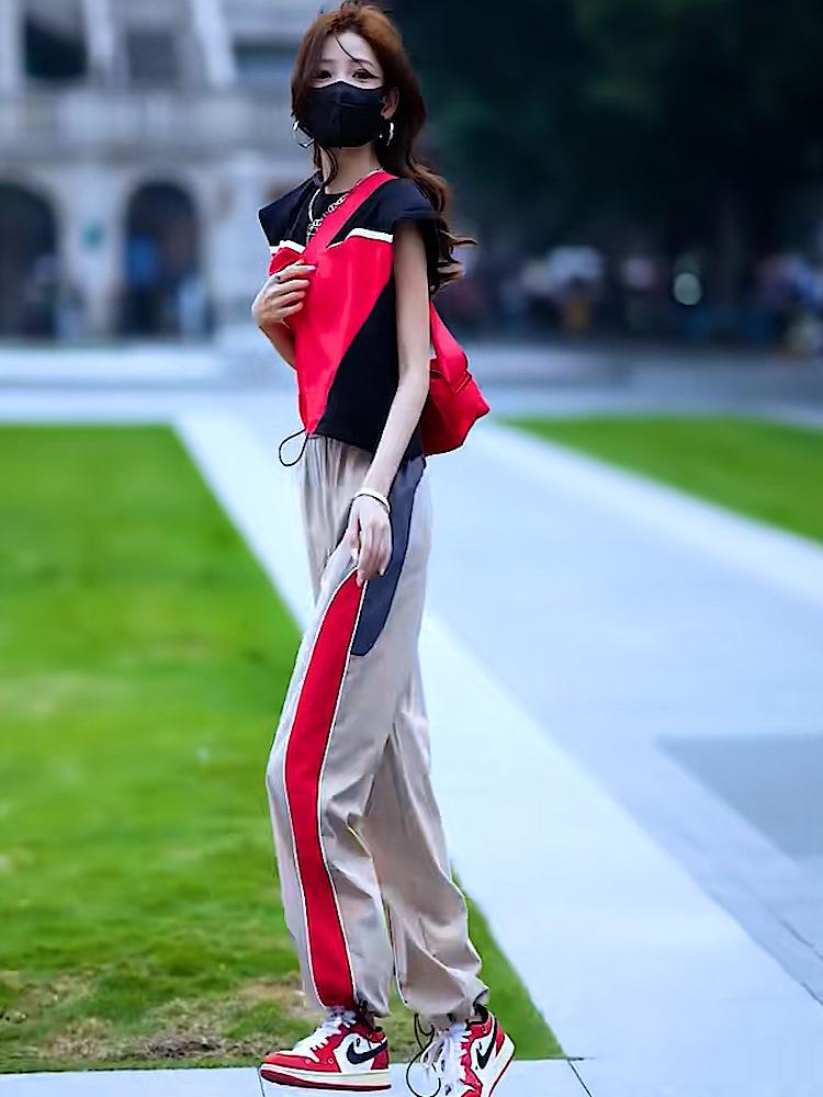 Verano nuevo traje deportivo casual para mujer color contraste suelto sin mangas que reduce la edad camiseta pantalones traje de dos piezas ropa de moda