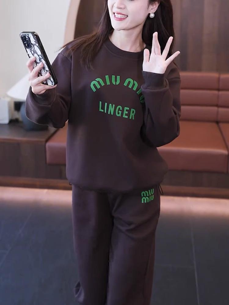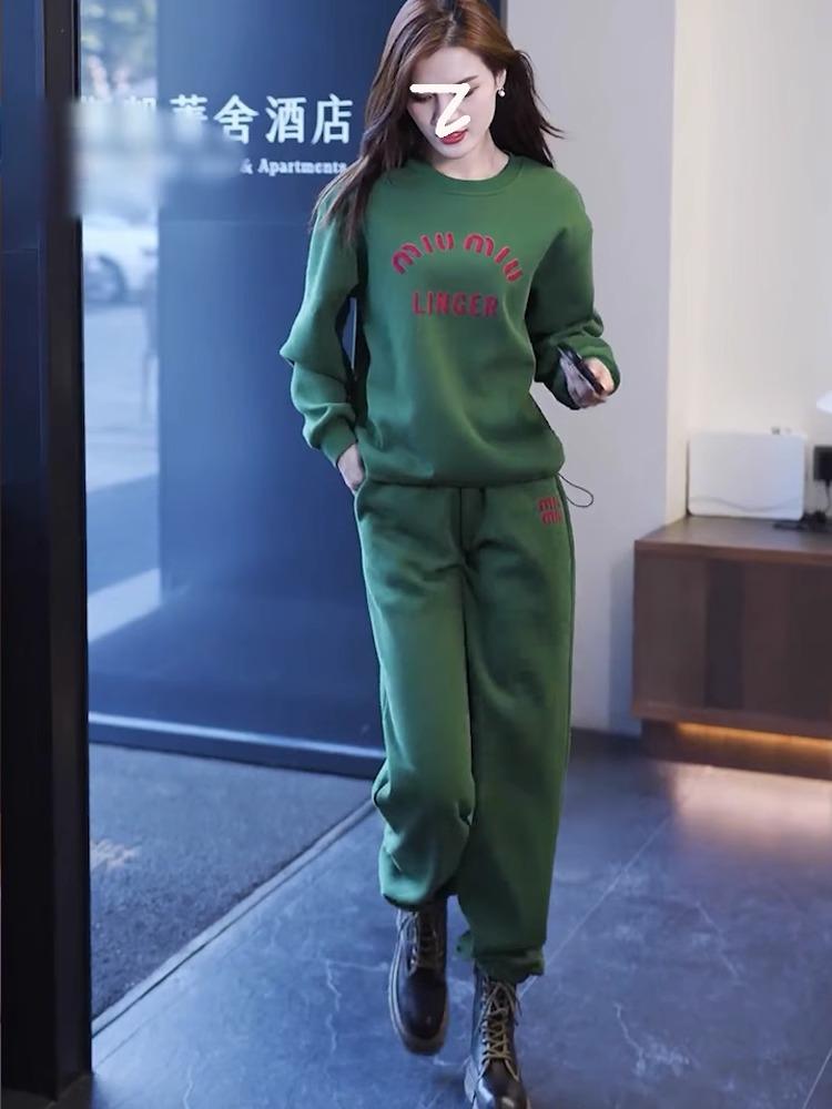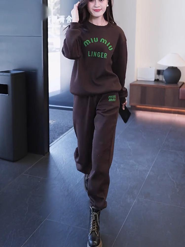 Traje deportivo casual de moda de primavera y otoño para mujer 2023 Nuevo temperamento que reduce la edad talla grande ropa de mujer traje de dos piezas grueso con forro polar