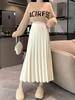 Falda Tejida Gruesa Cálida Estilo Coreano para Mujer Otoño e Invierno Nueva Cintura Alta Suelta Estilo Occidental Adelgazante Línea A Falda Midi