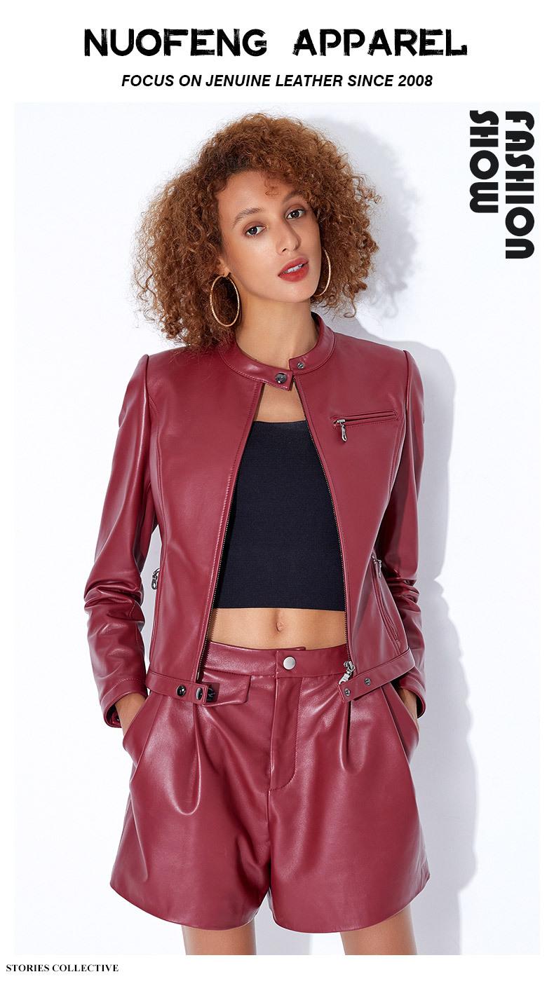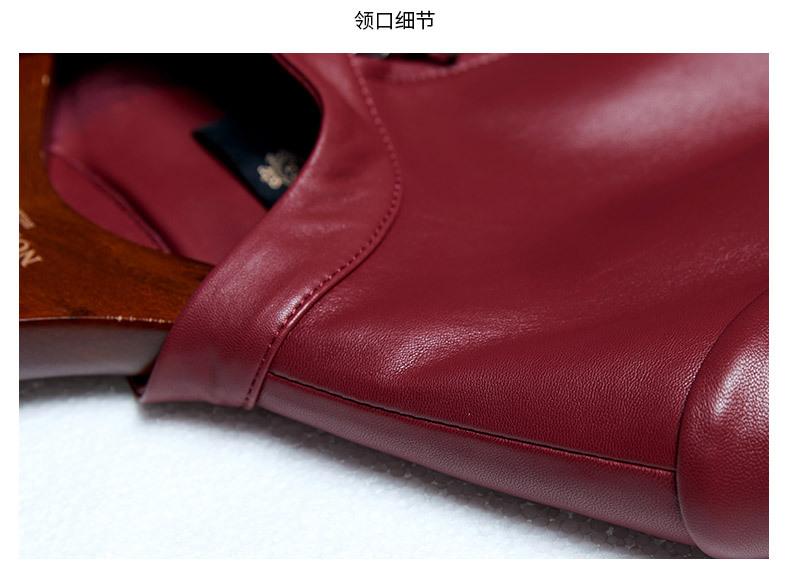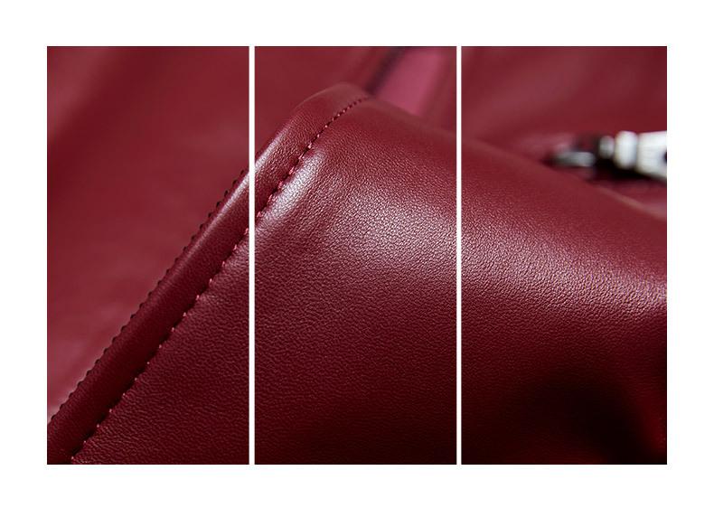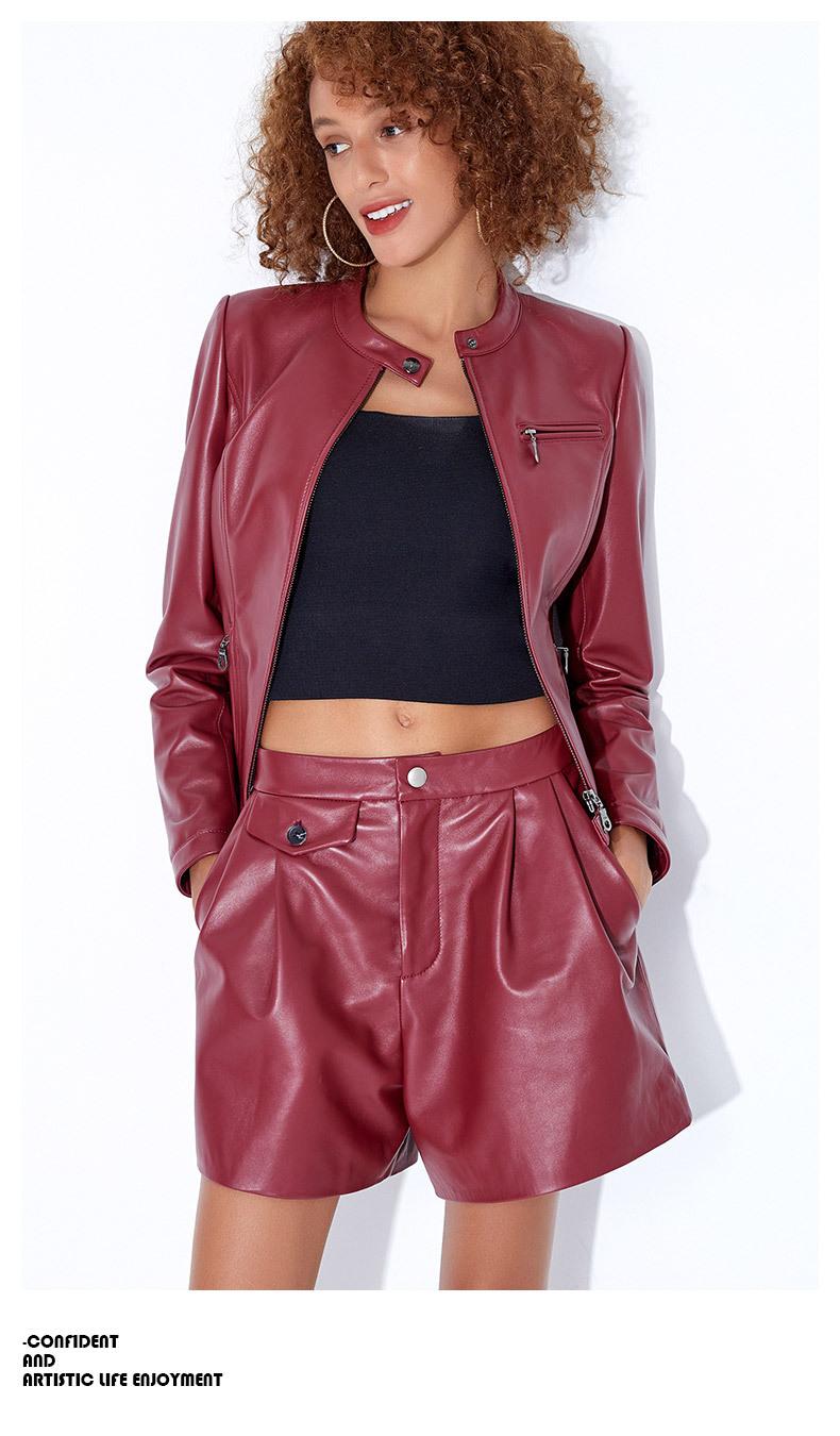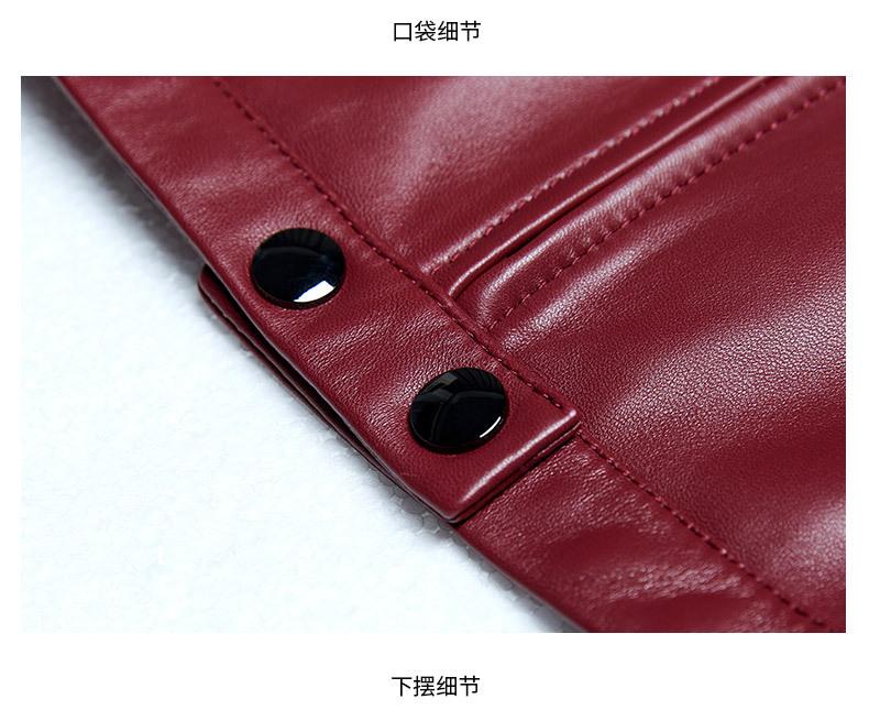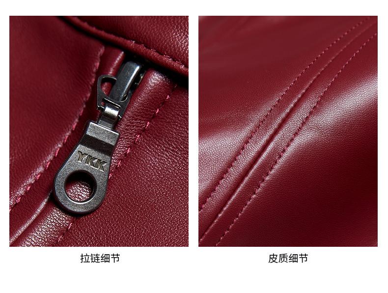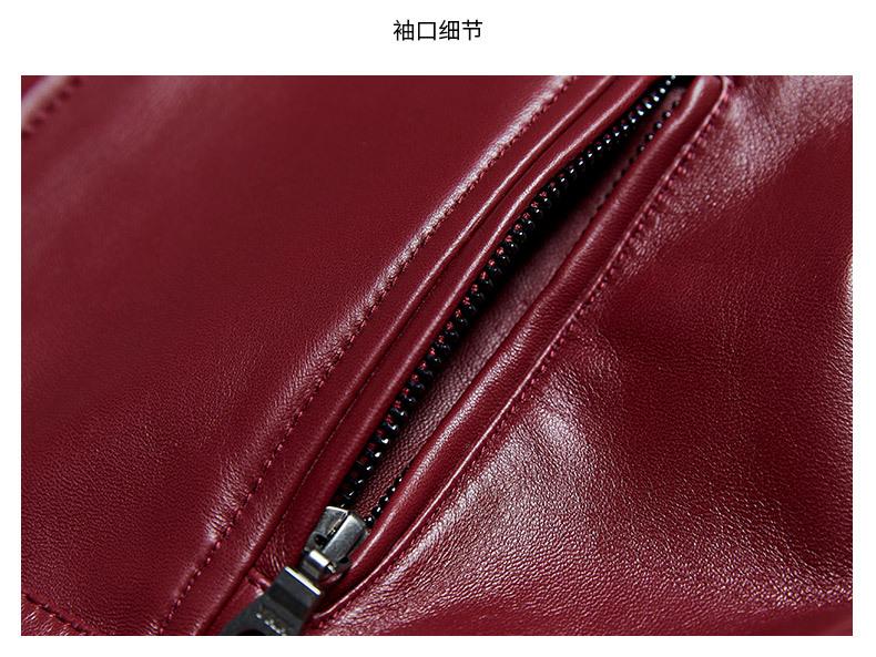 Chaqueta Corta de Piel de Oveja Nueva Haining Origin para Mujer, Piel Genuina Borgoña, Talla Pequeña