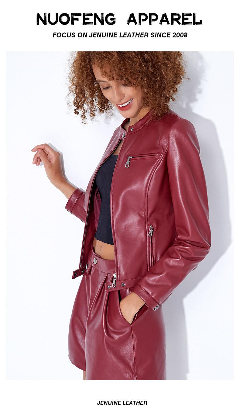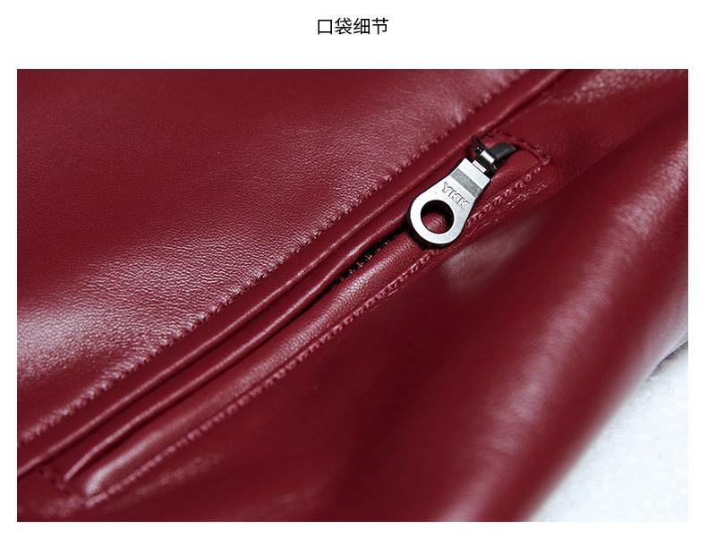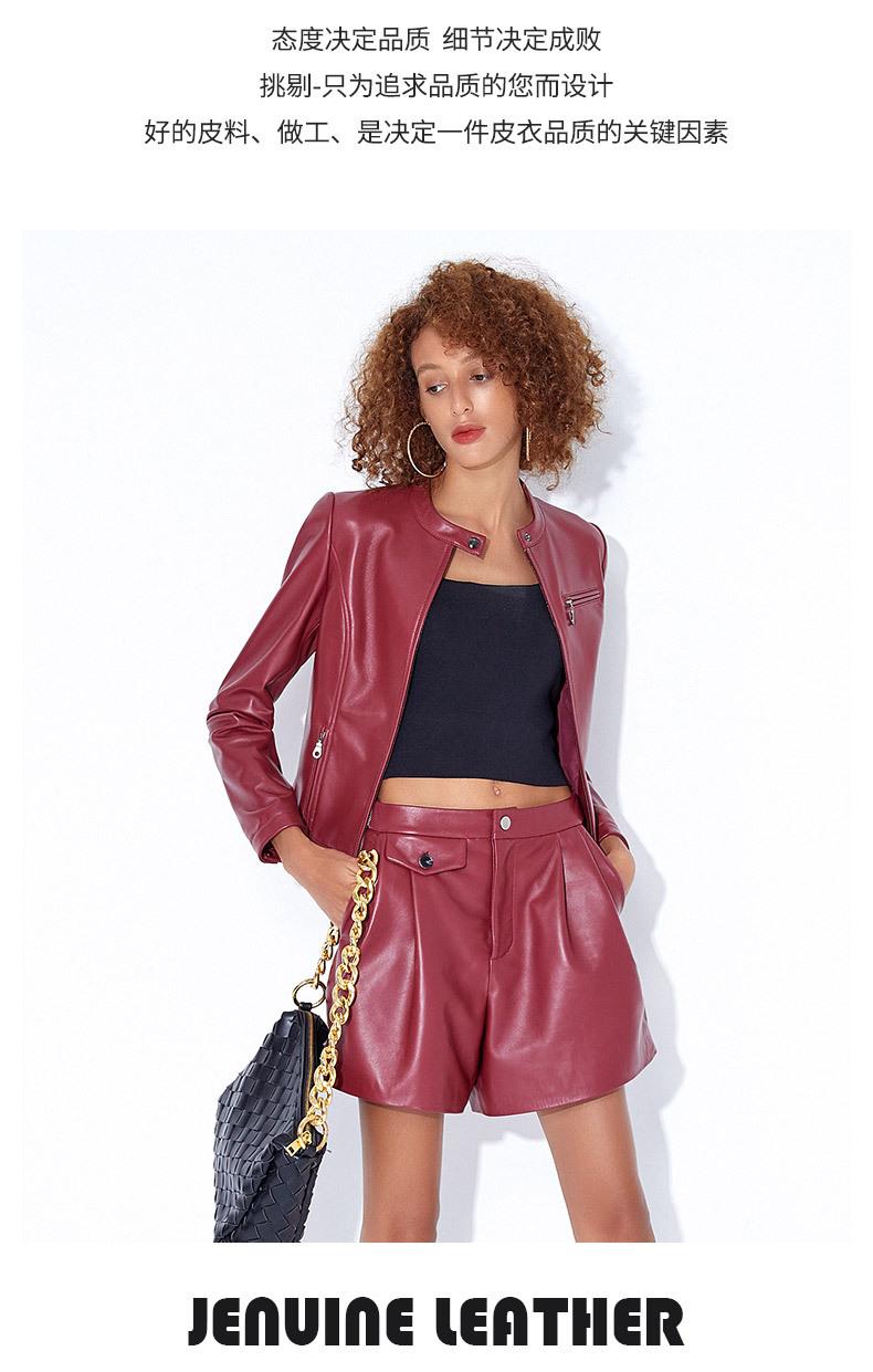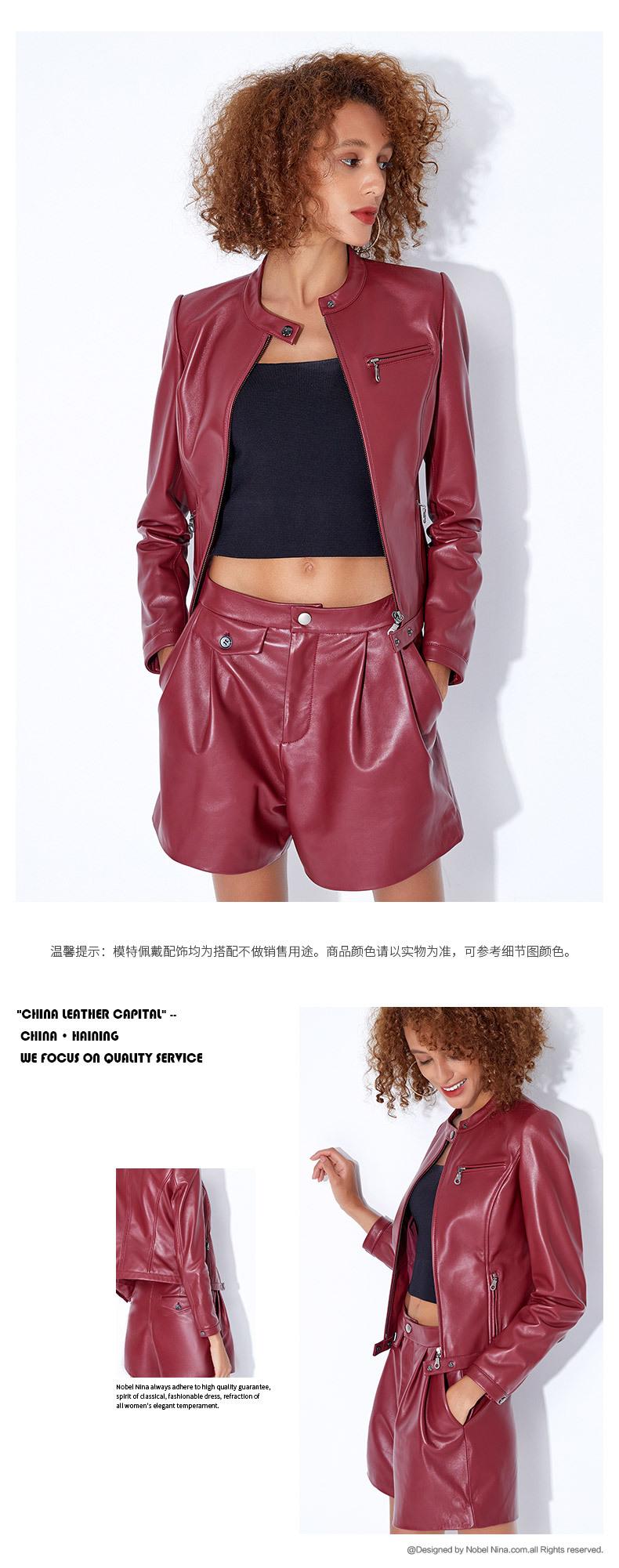Chaqueta Corta de Piel de Oveja Nueva Haining Origin para Mujer, Piel Genuina Borgoña, Talla Pequeña