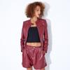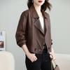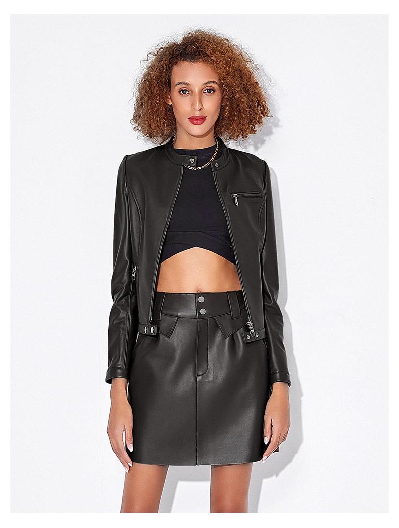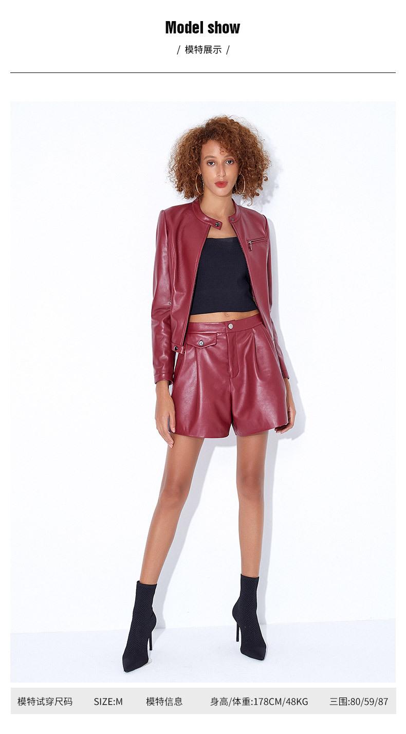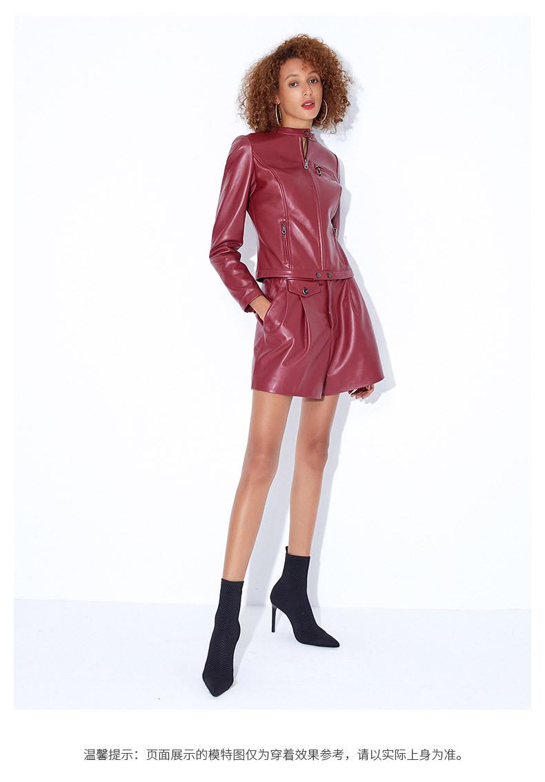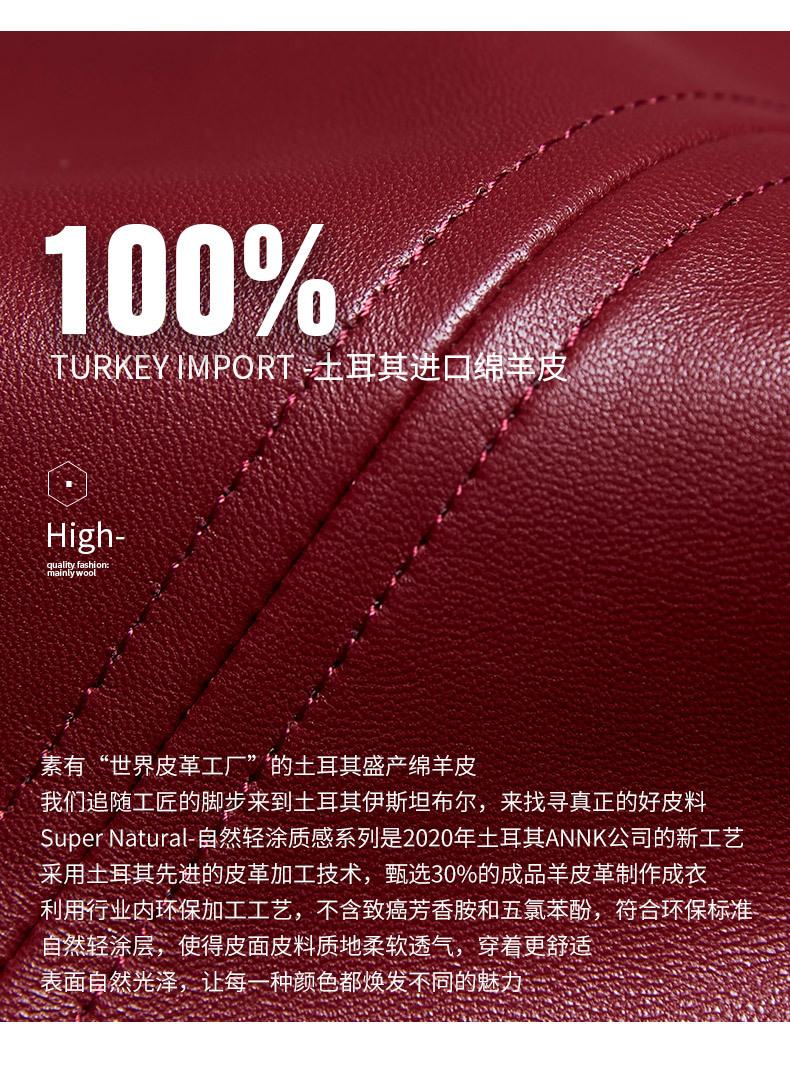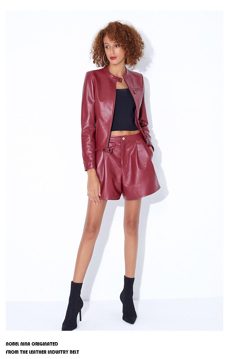 Chaqueta Corta de Piel de Oveja Nueva Haining Origin para Mujer, Piel Genuina Borgoña, Talla Pequeña