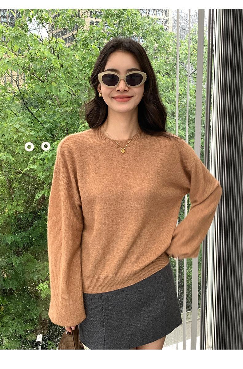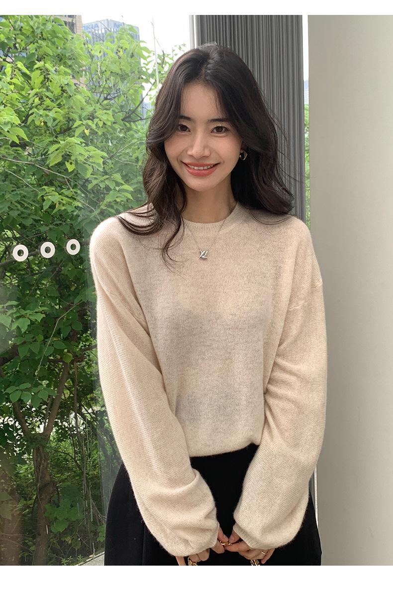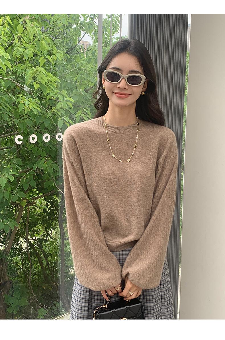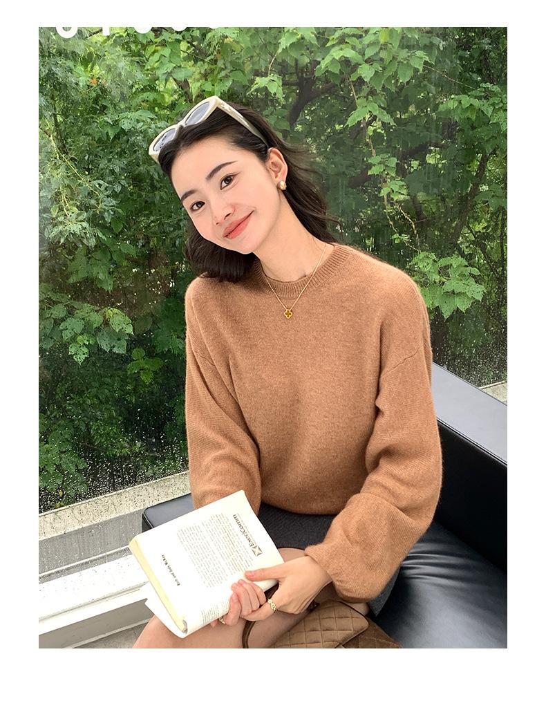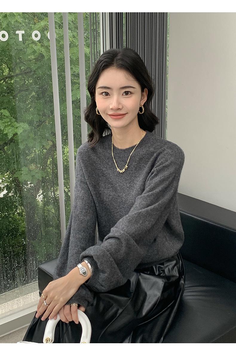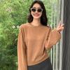 Suéter de punto de cachemira holgado con cuello redondo para mujer, suéter de otoño e invierno de color liso, jersey holgado con base de lana