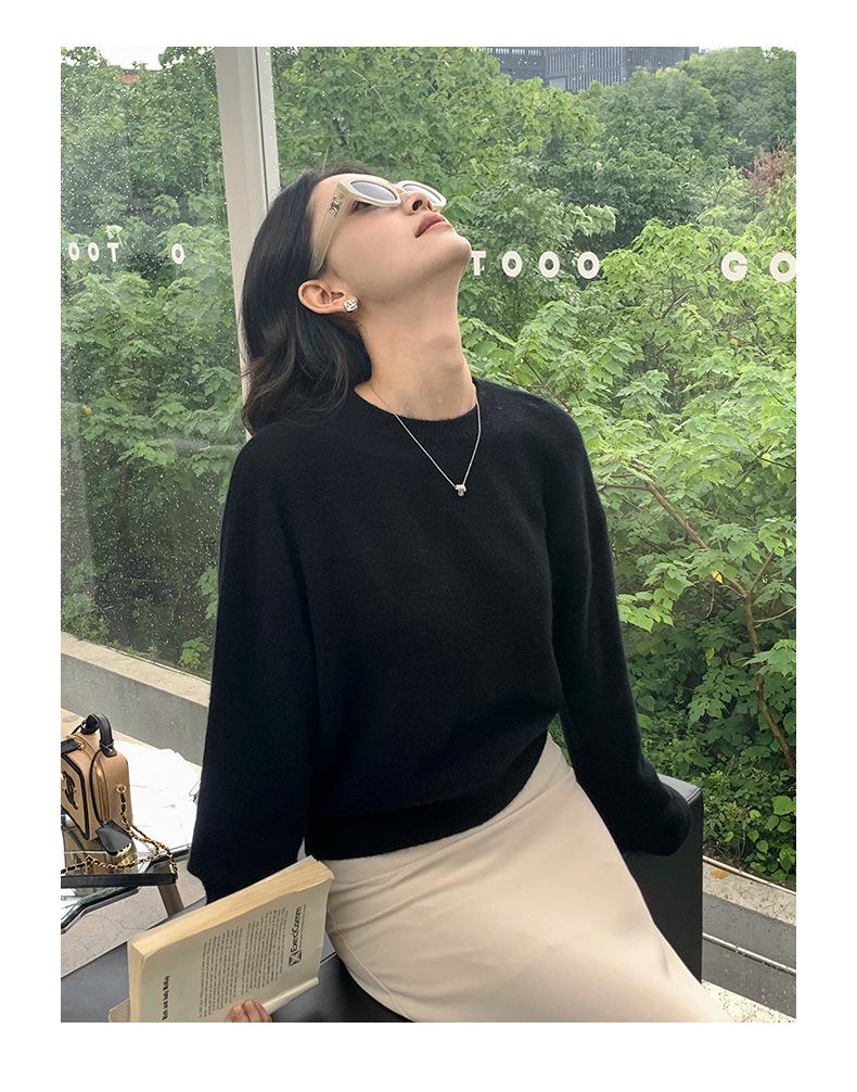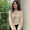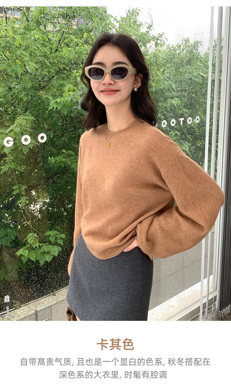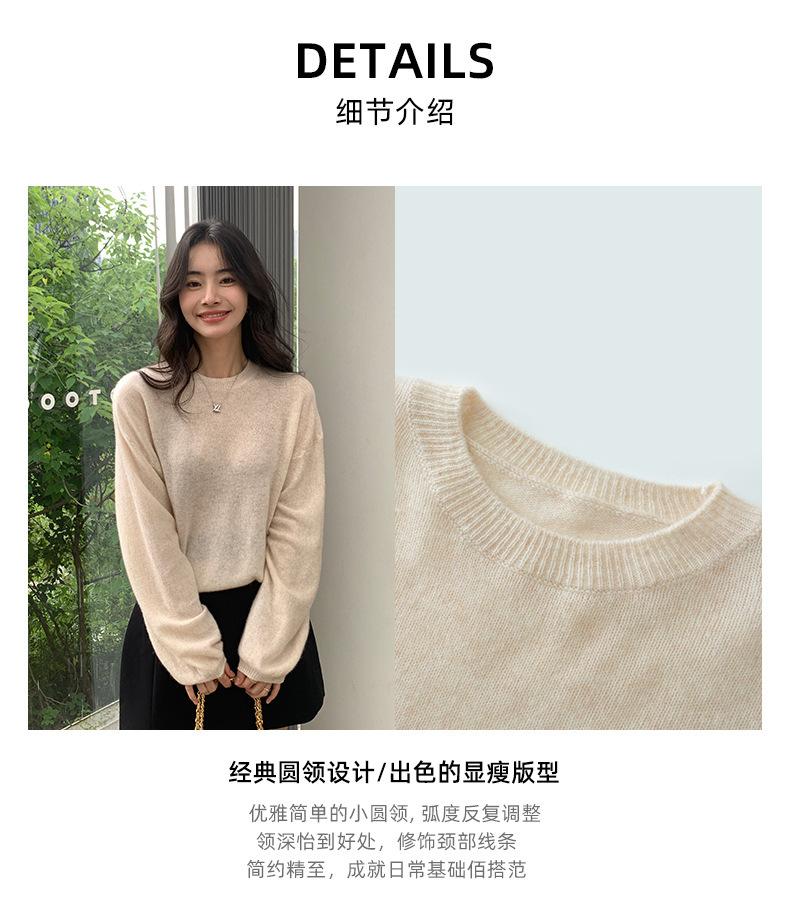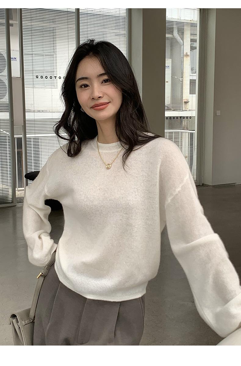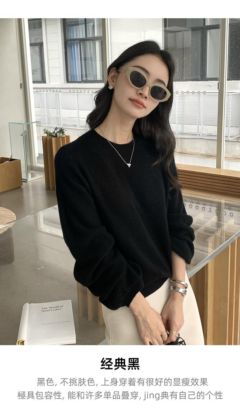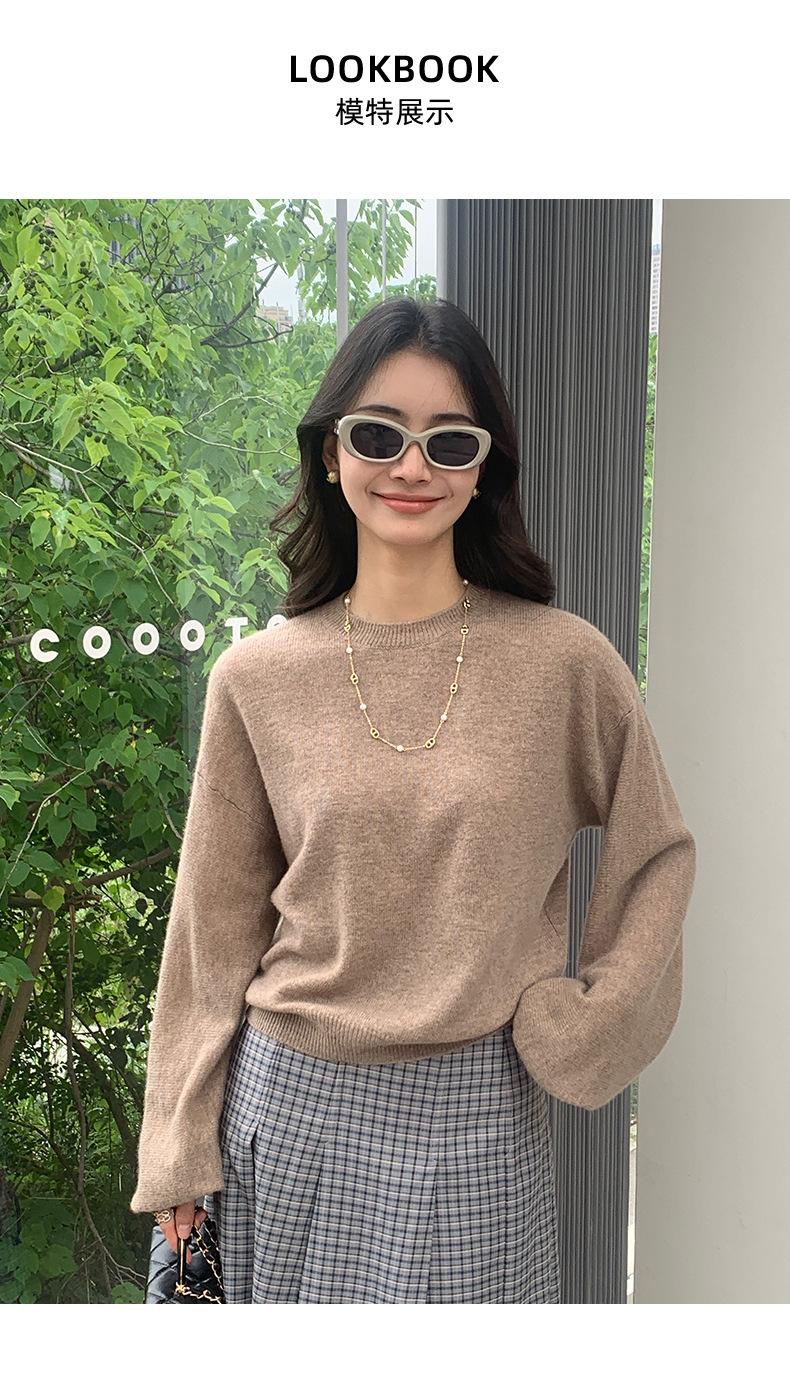 Suéter de punto de cachemira holgado con cuello redondo para mujer, suéter de otoño e invierno de color liso, jersey holgado con base de lana